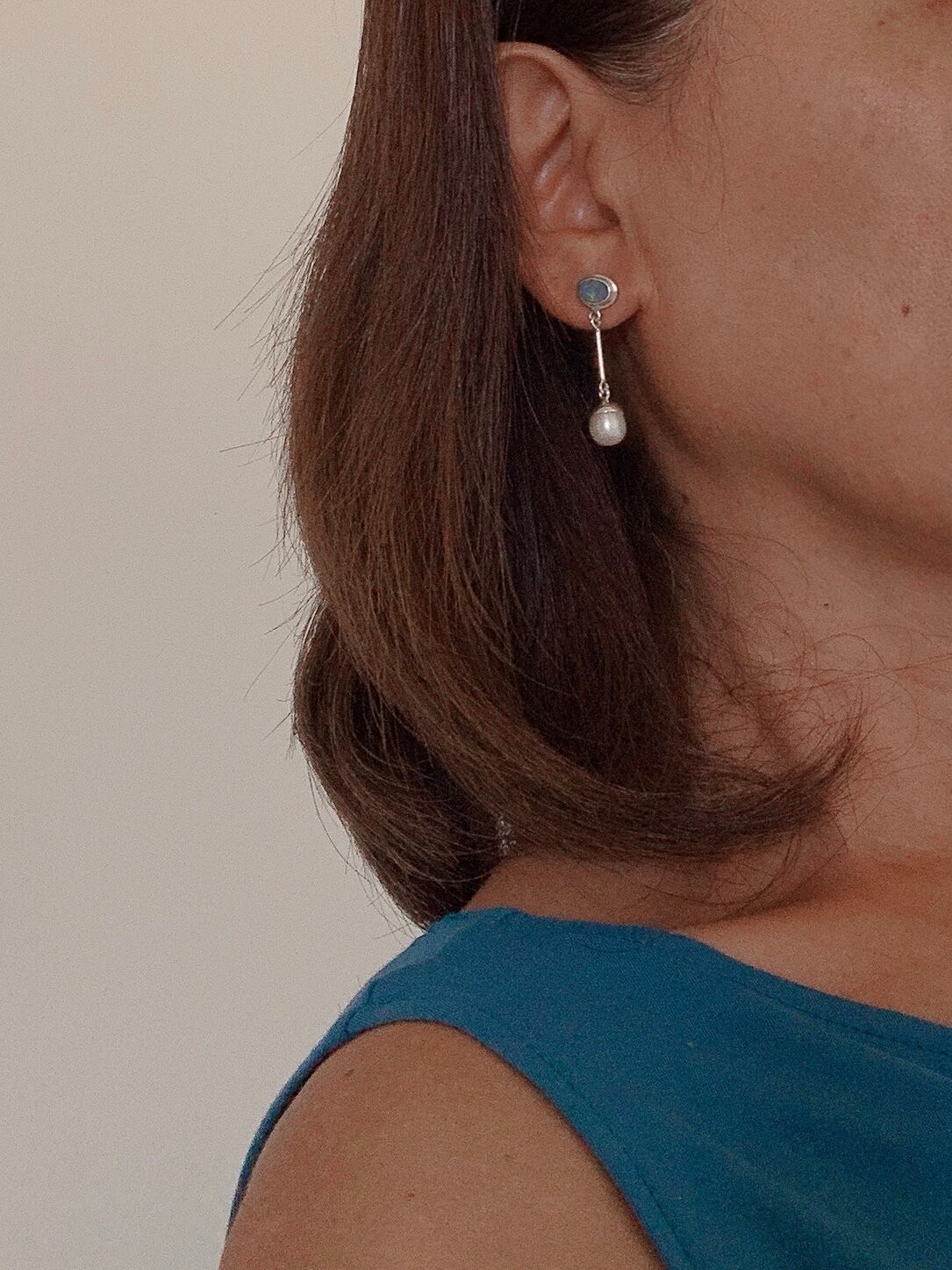 オパール+淡水真珠♡シルバー925ピアス【E-004】