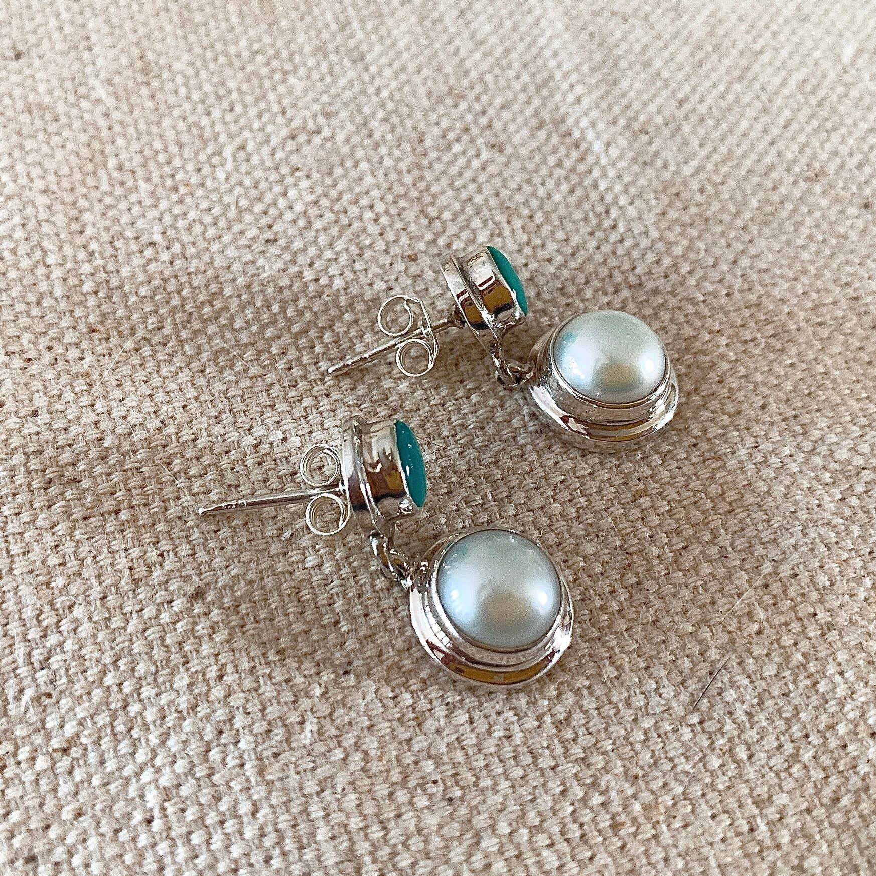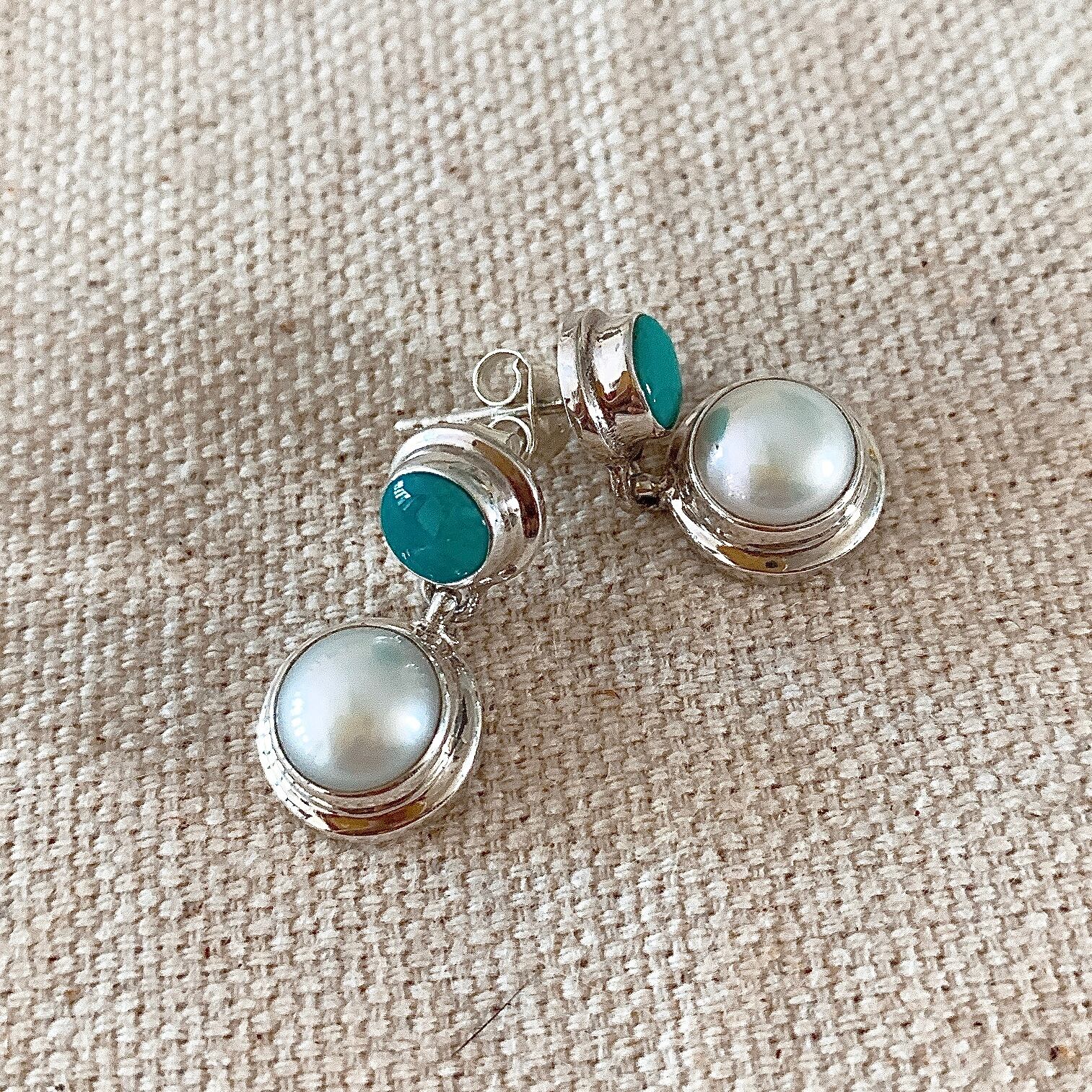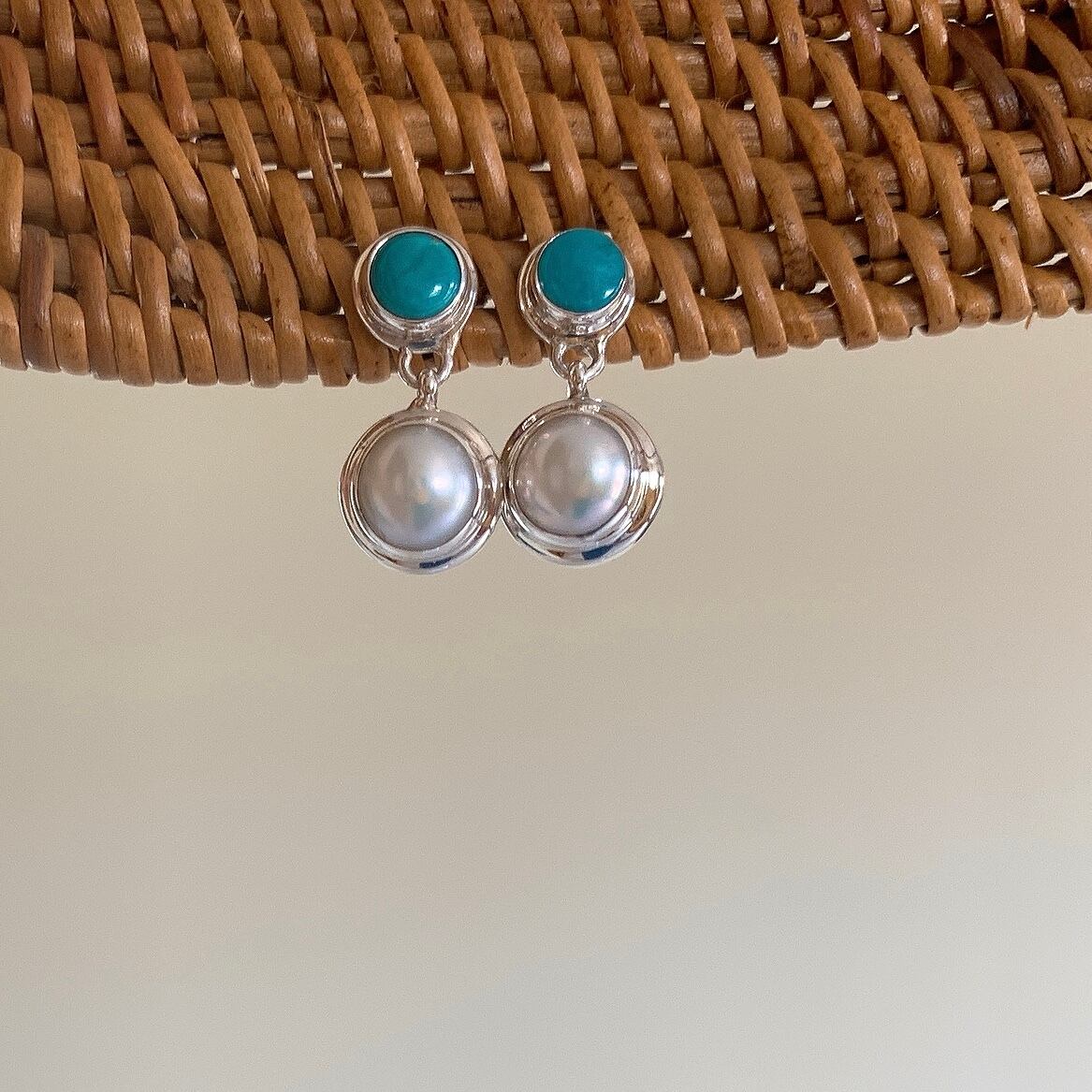 ターコイズ+淡水真珠♡シルバー925ピアス【E-005】