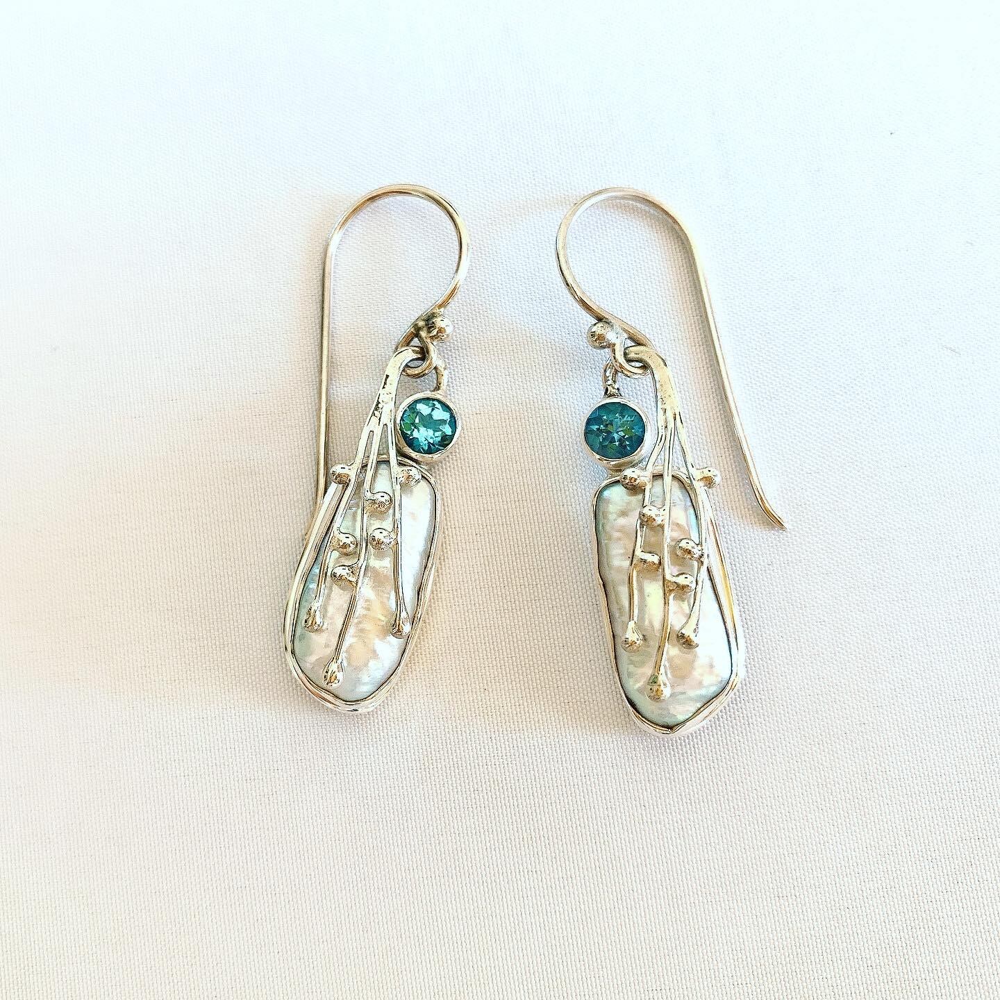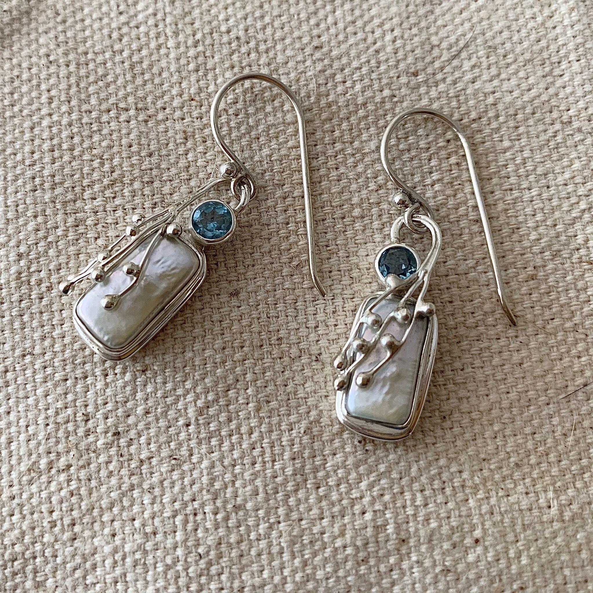 ブルートパーズ & Biwa シェルのピアスです。