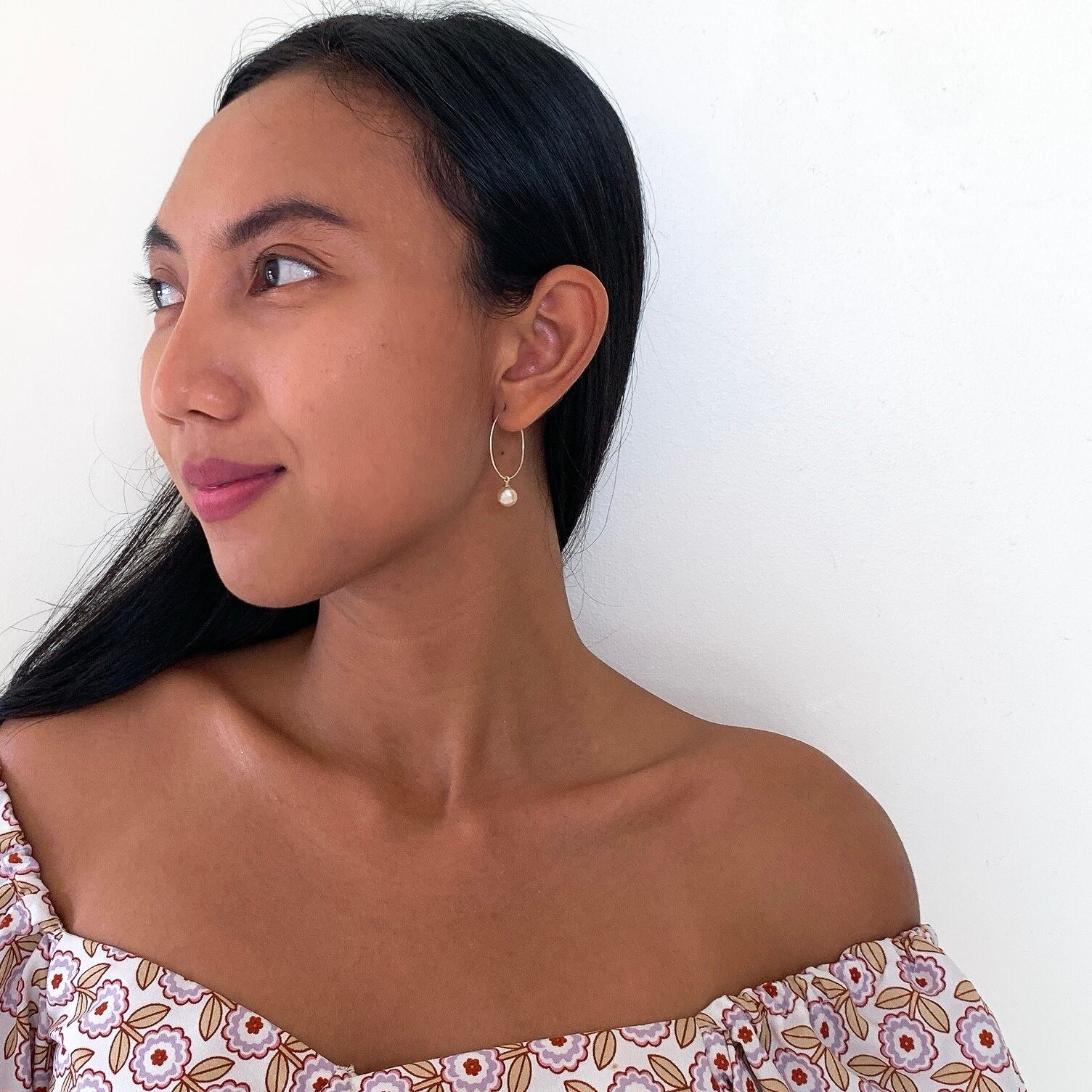 ケシ南洋白蝶真珠GOLD14K♡ラブリーフープピアス【EG-004】