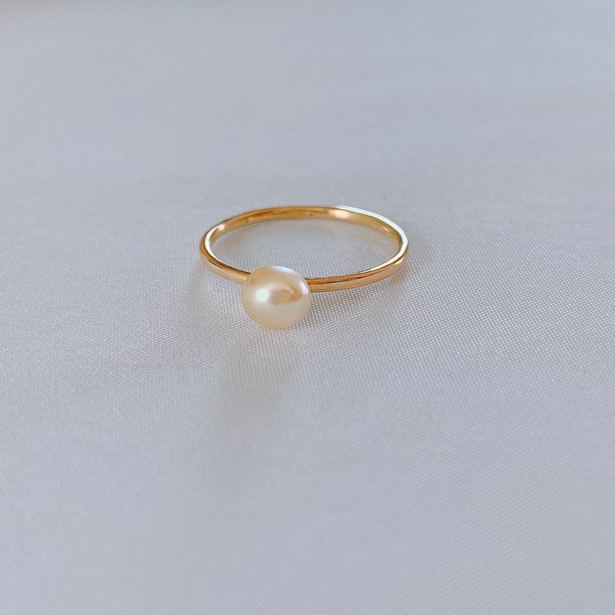 ケシ南洋白蝶真珠がポチっと可愛い♡Gold14Kリング【RG8-001】