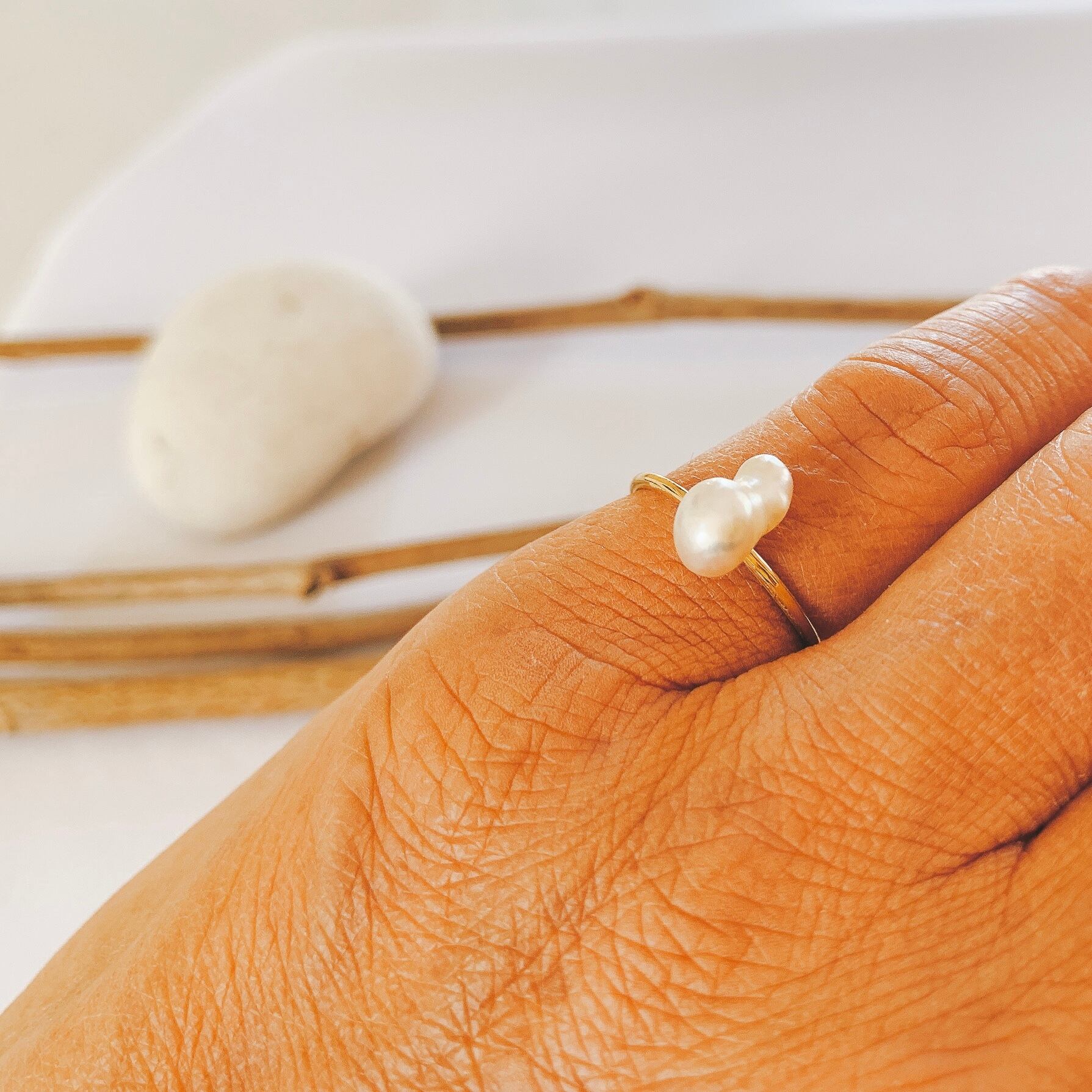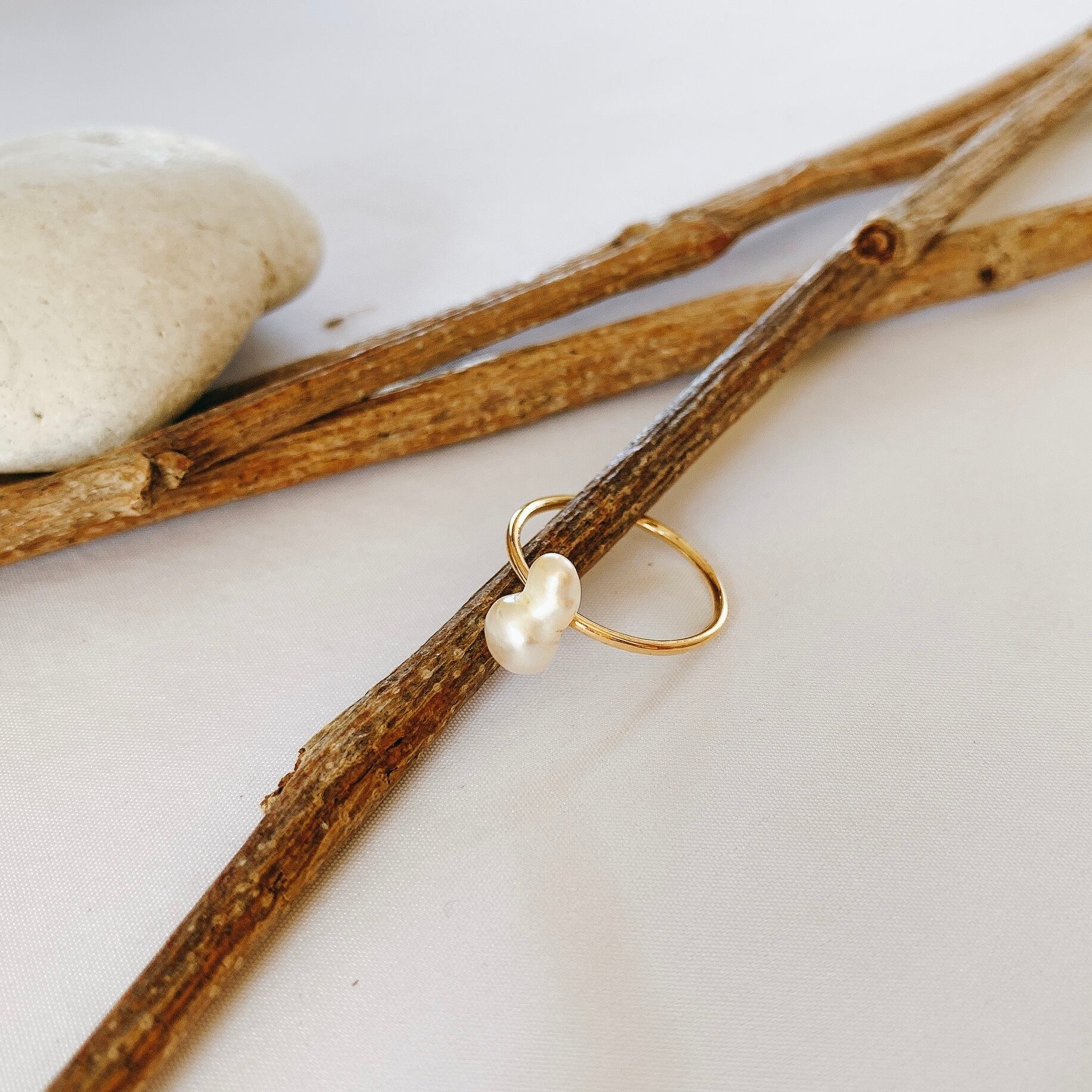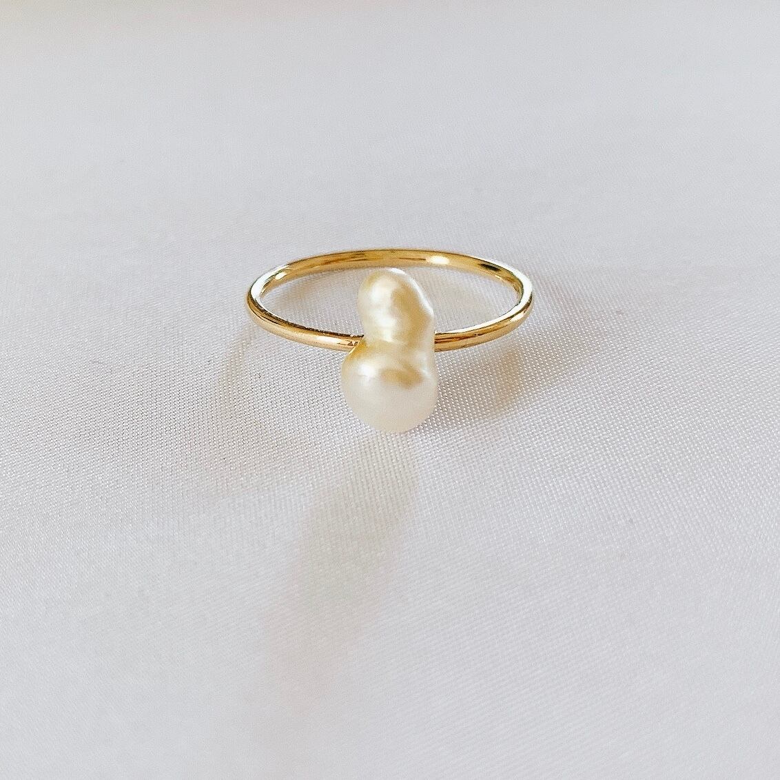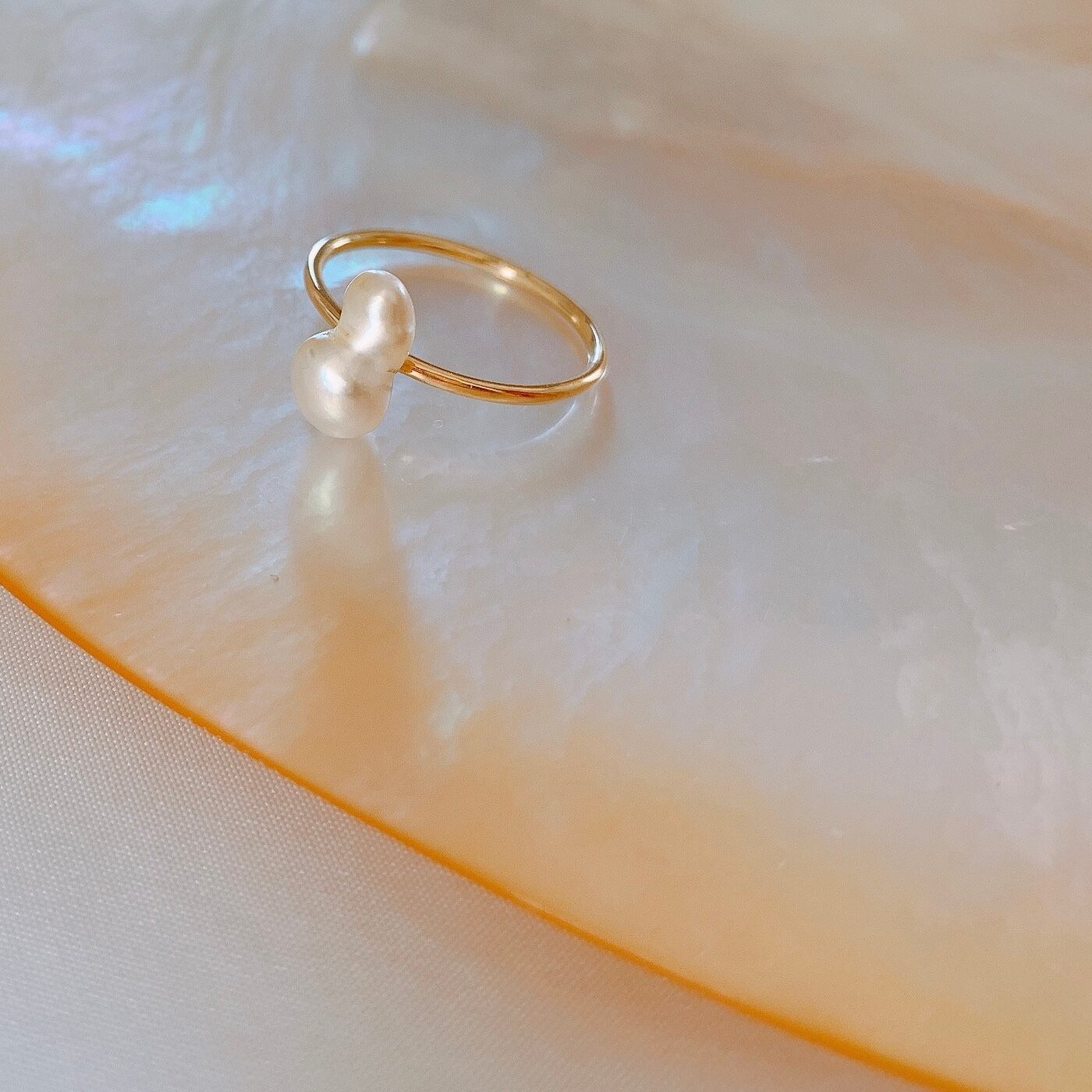 ユニークな形のケシ南洋白蝶真珠が可愛い♡Gold14Kリング【RG9-001】