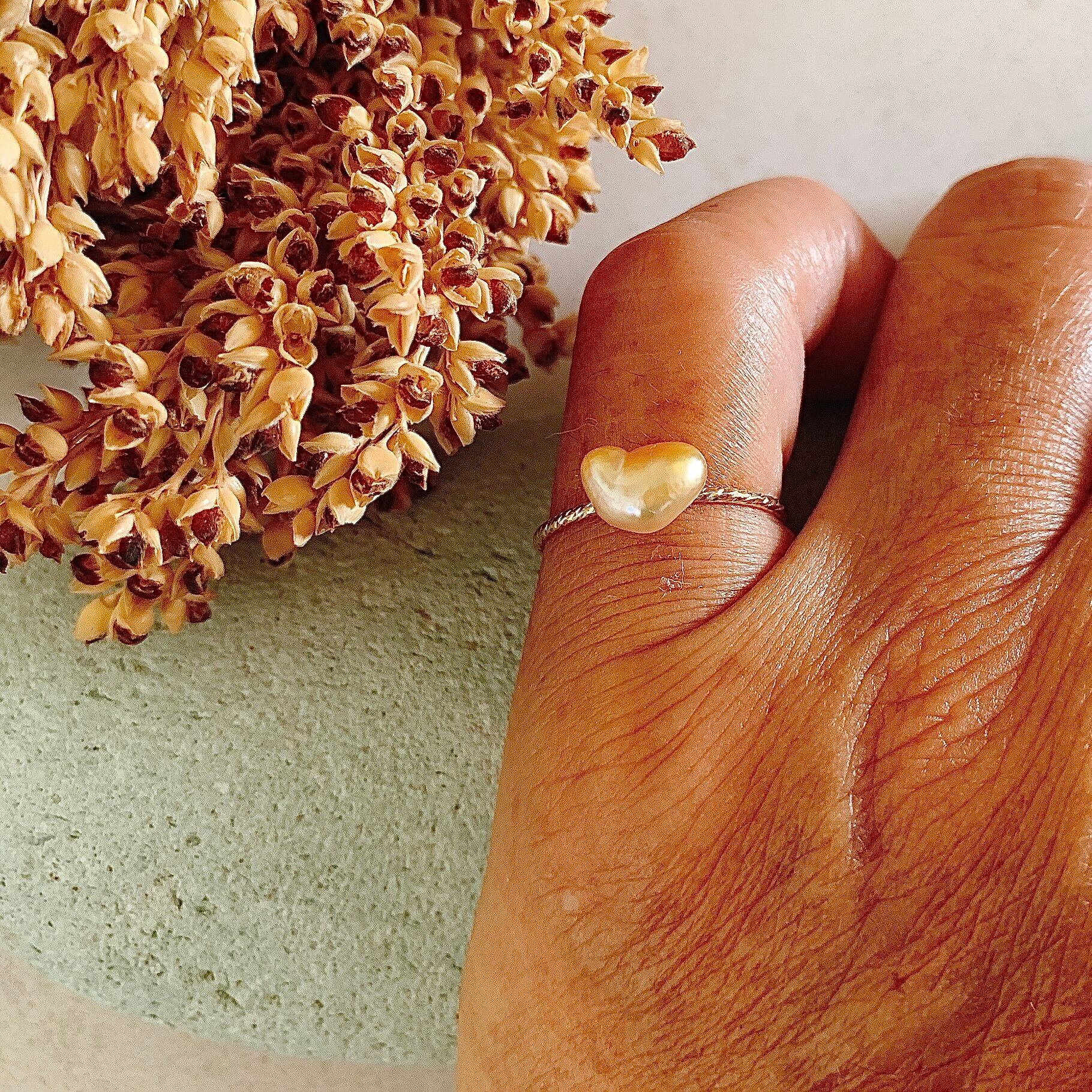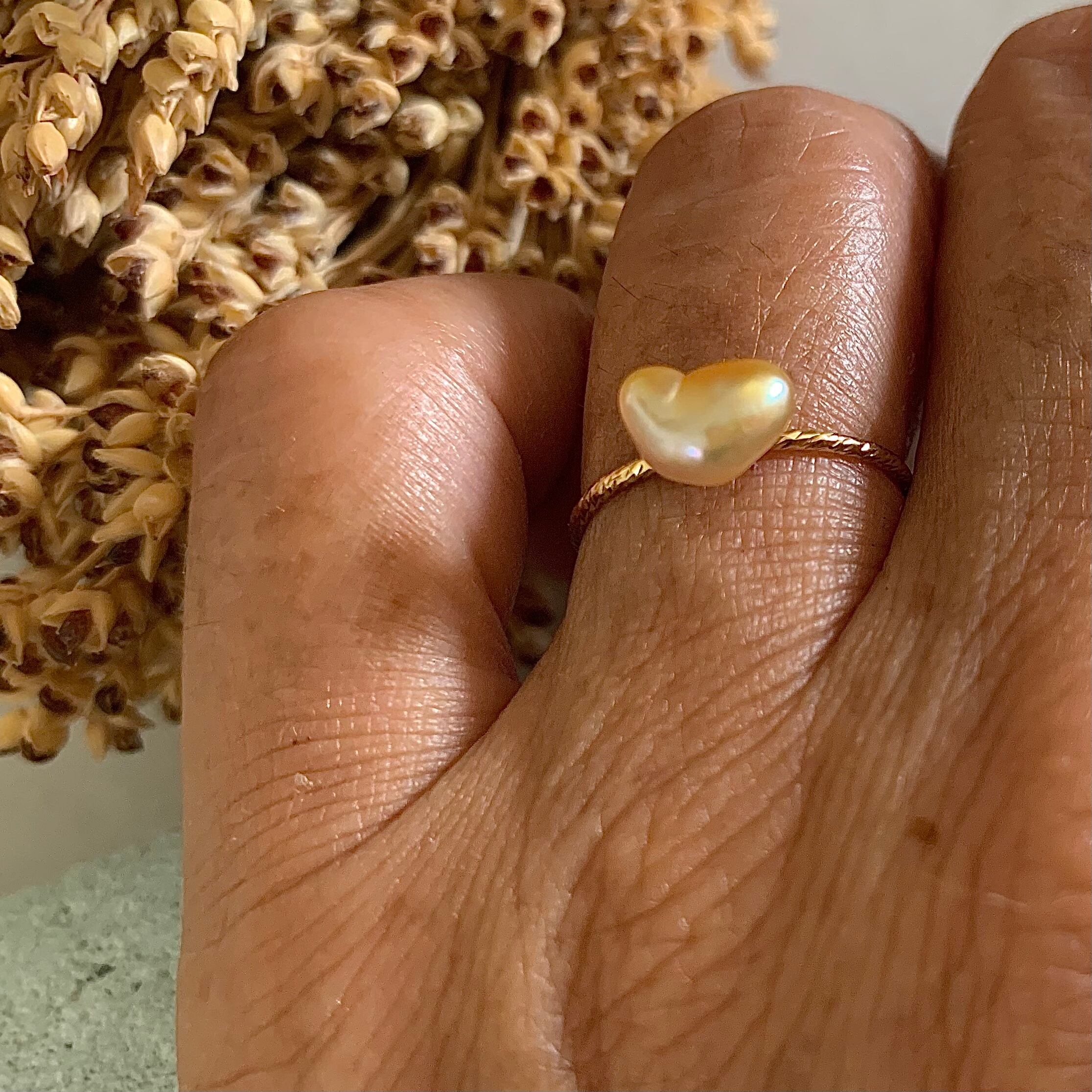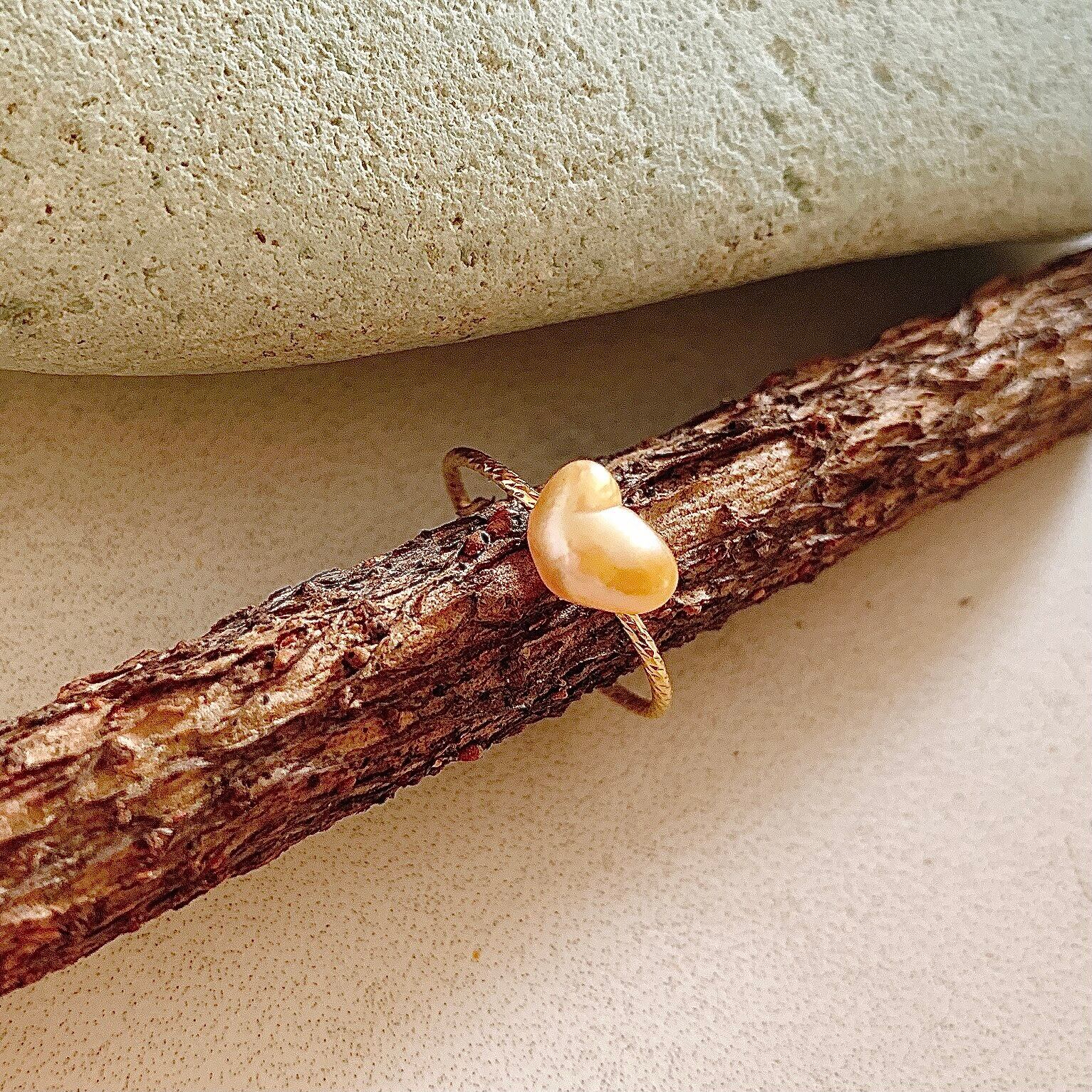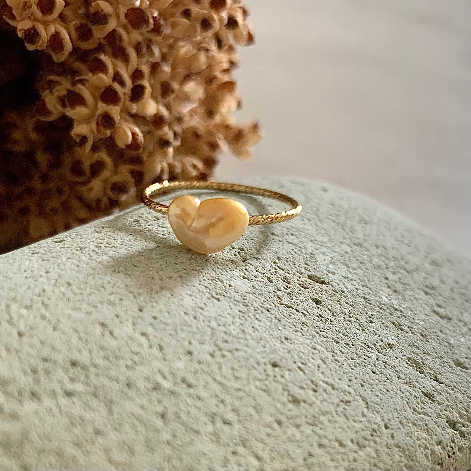 ふわふわハートみたいな形のケシ南洋白蝶真珠♡14kgfリング 【GFR-003】