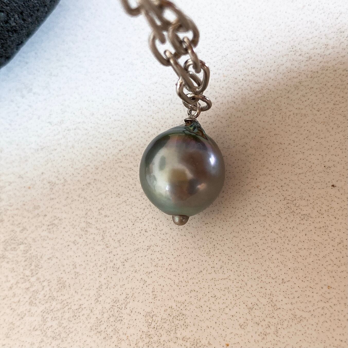 タヒチ黒蝶真珠:バロック、14.4mm x 11.9mm