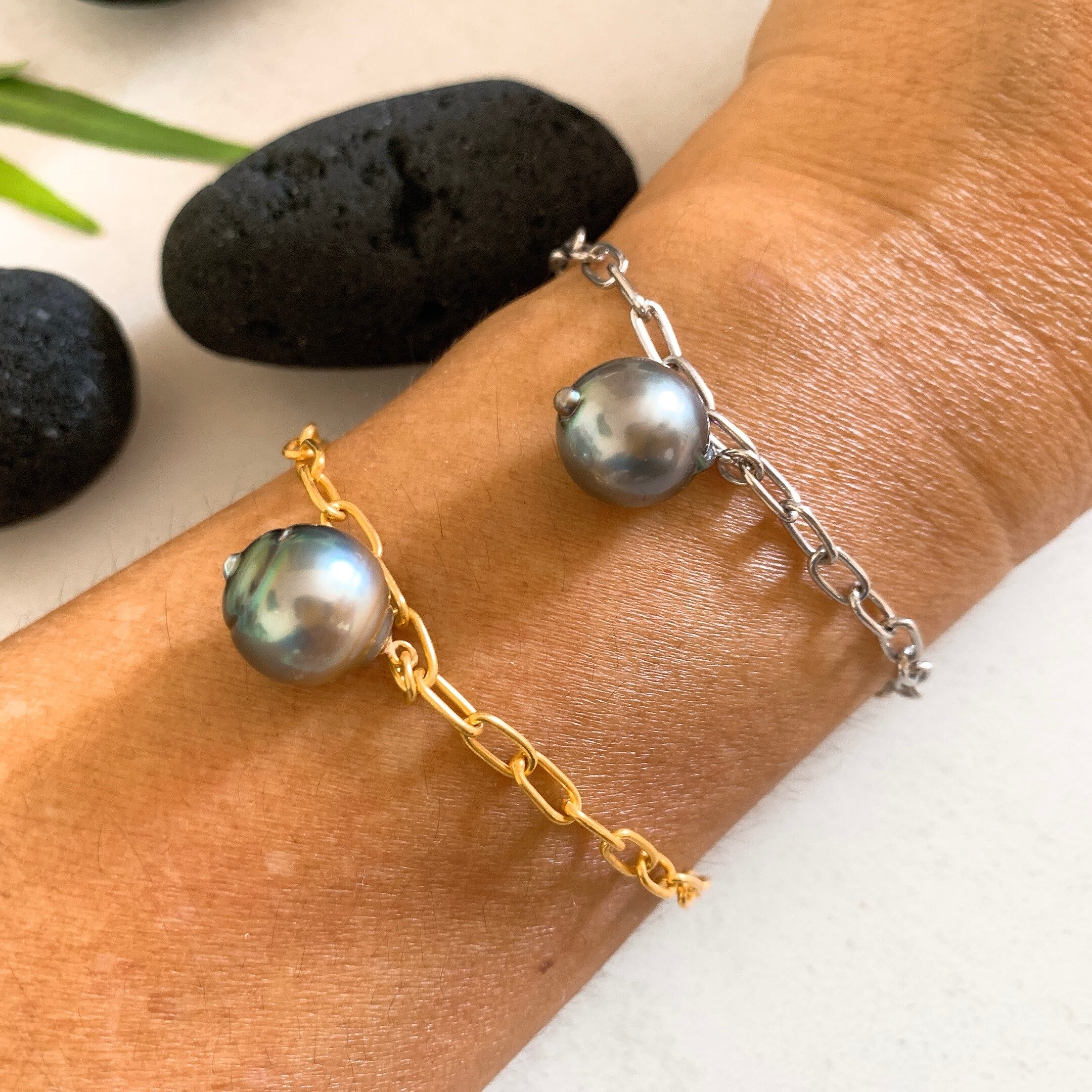 タヒチ黒蝶バロック真珠のシルバーブレスレットを