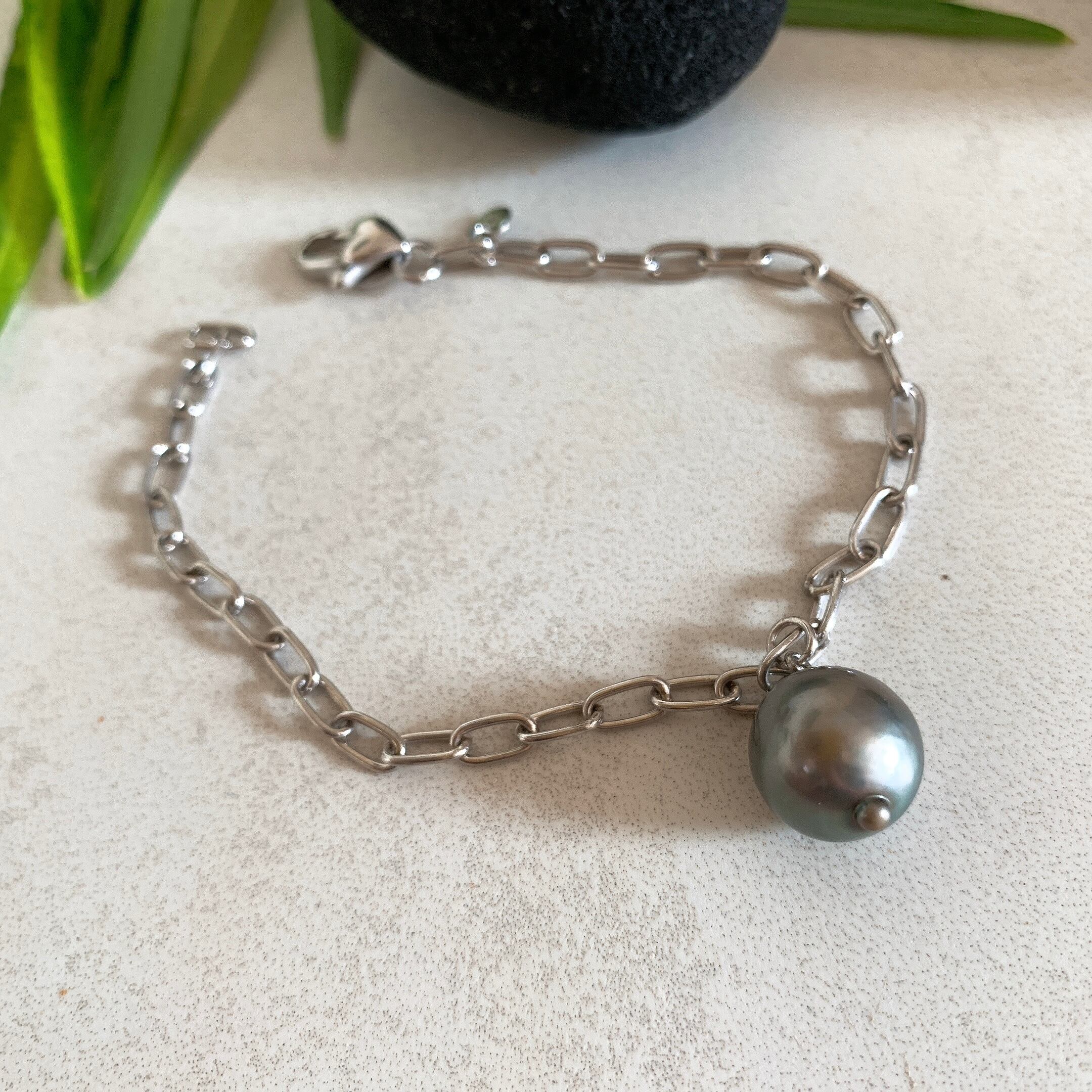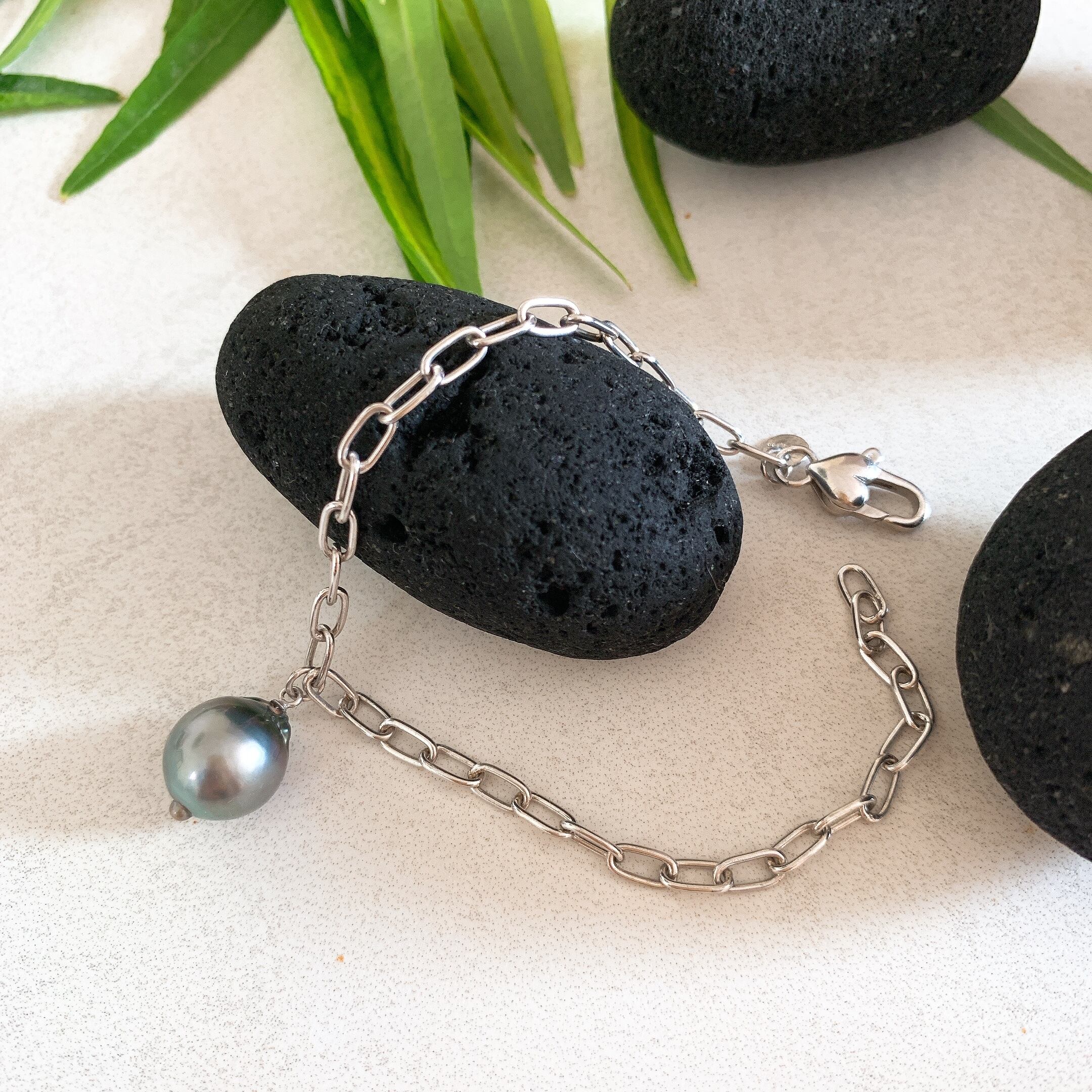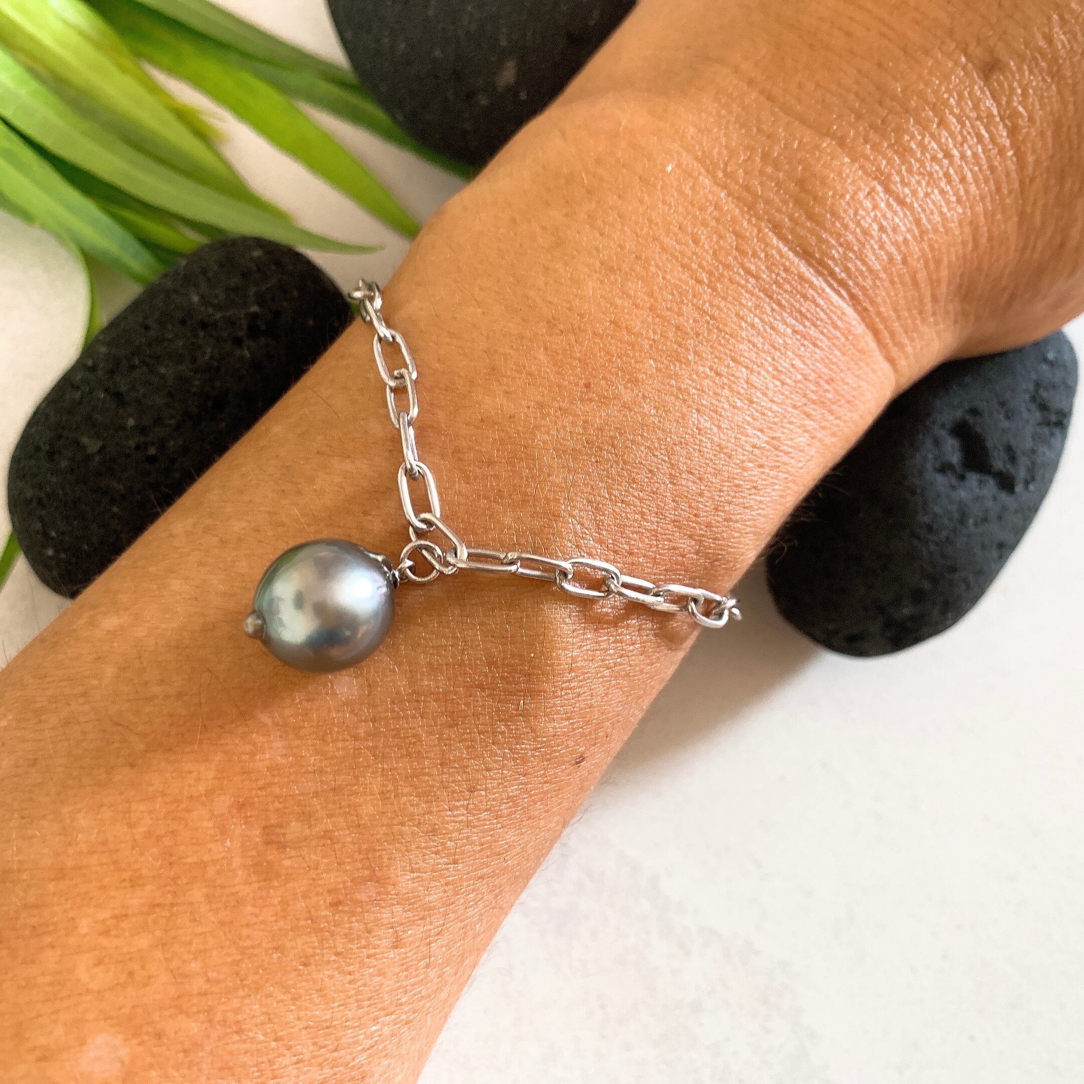 タヒチ黒蝶バロック真珠のユニセックス♡クールなシルバーブレスレット【TBS-001】