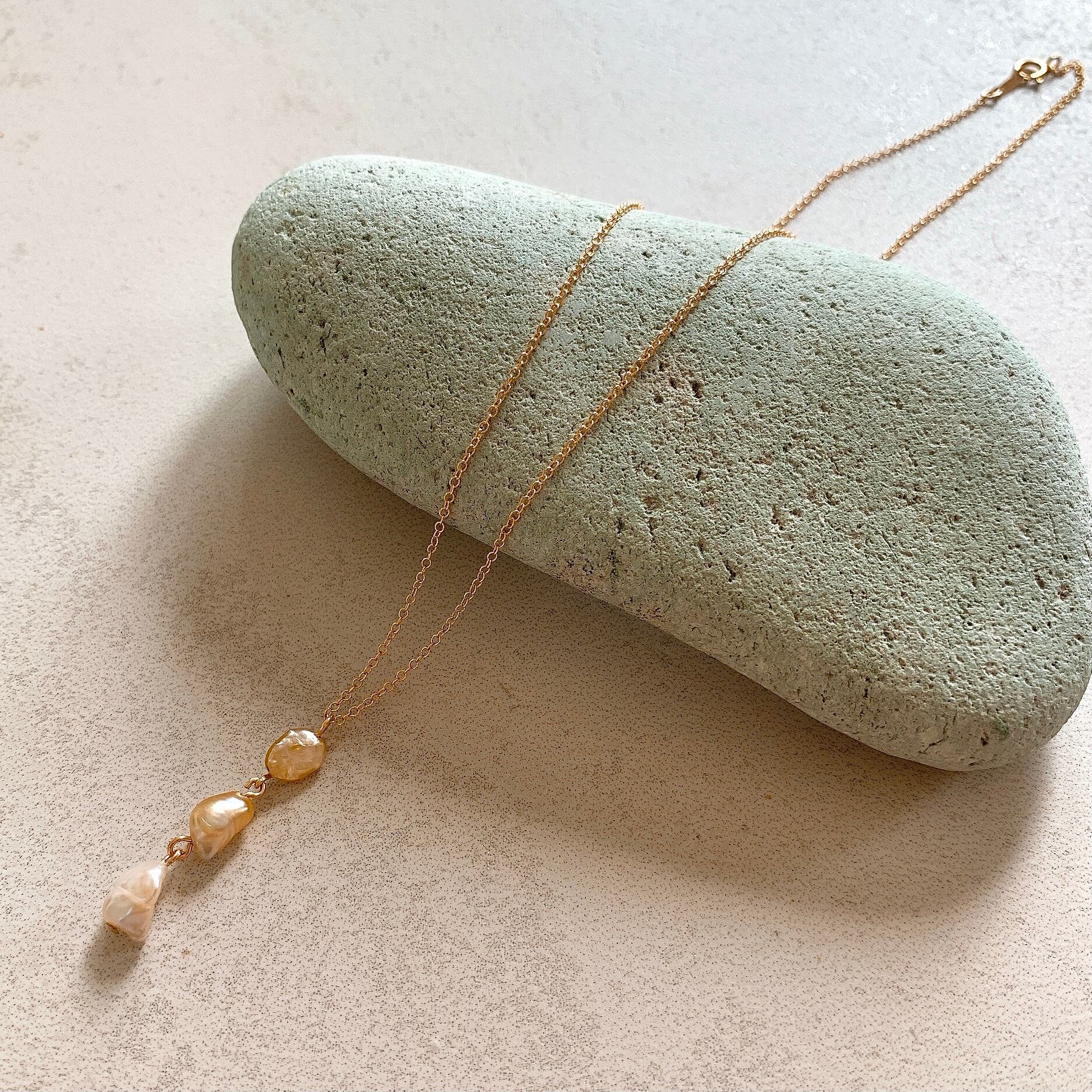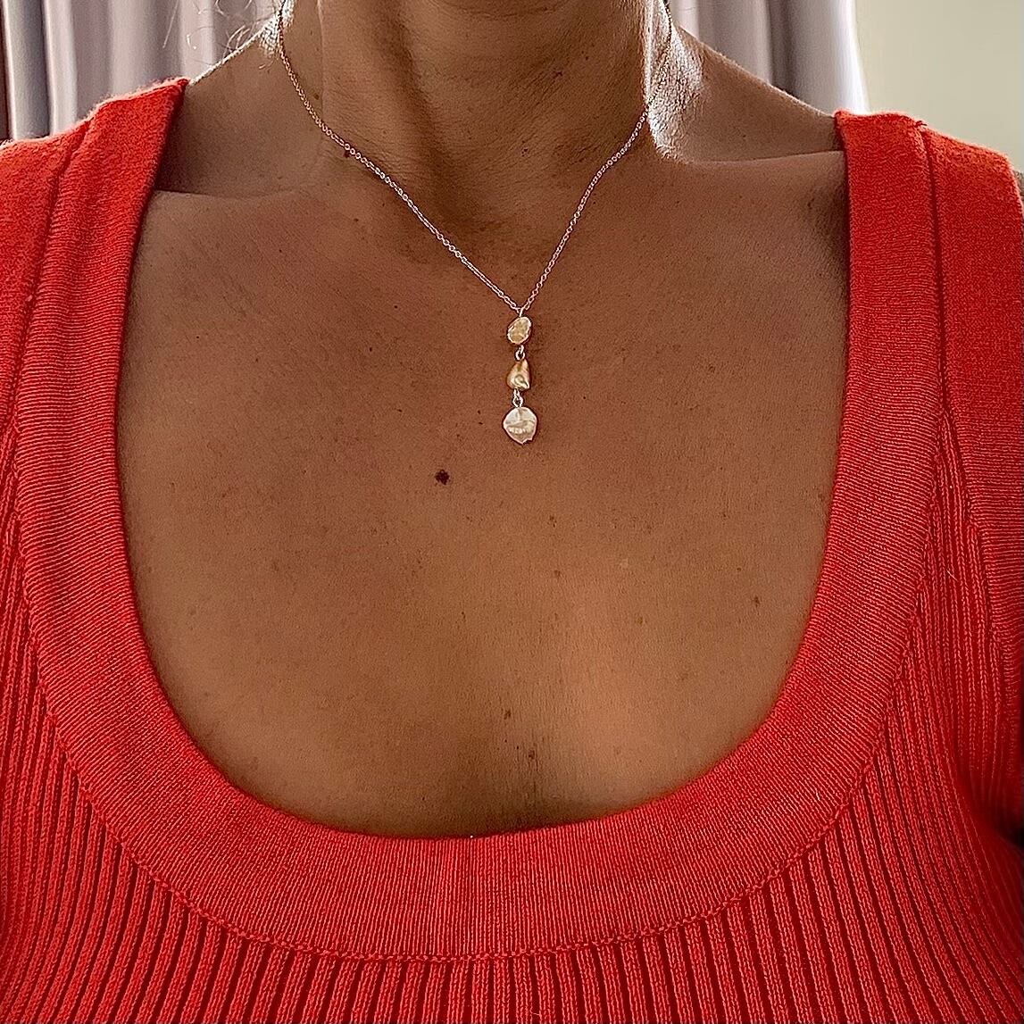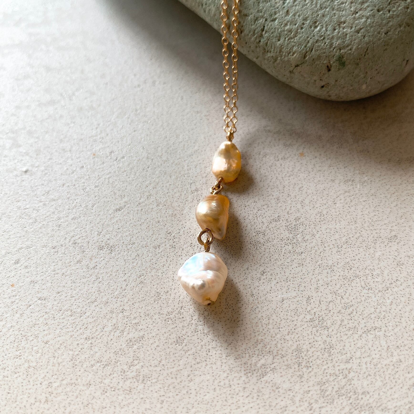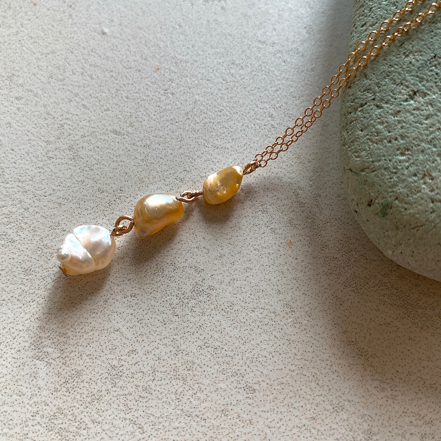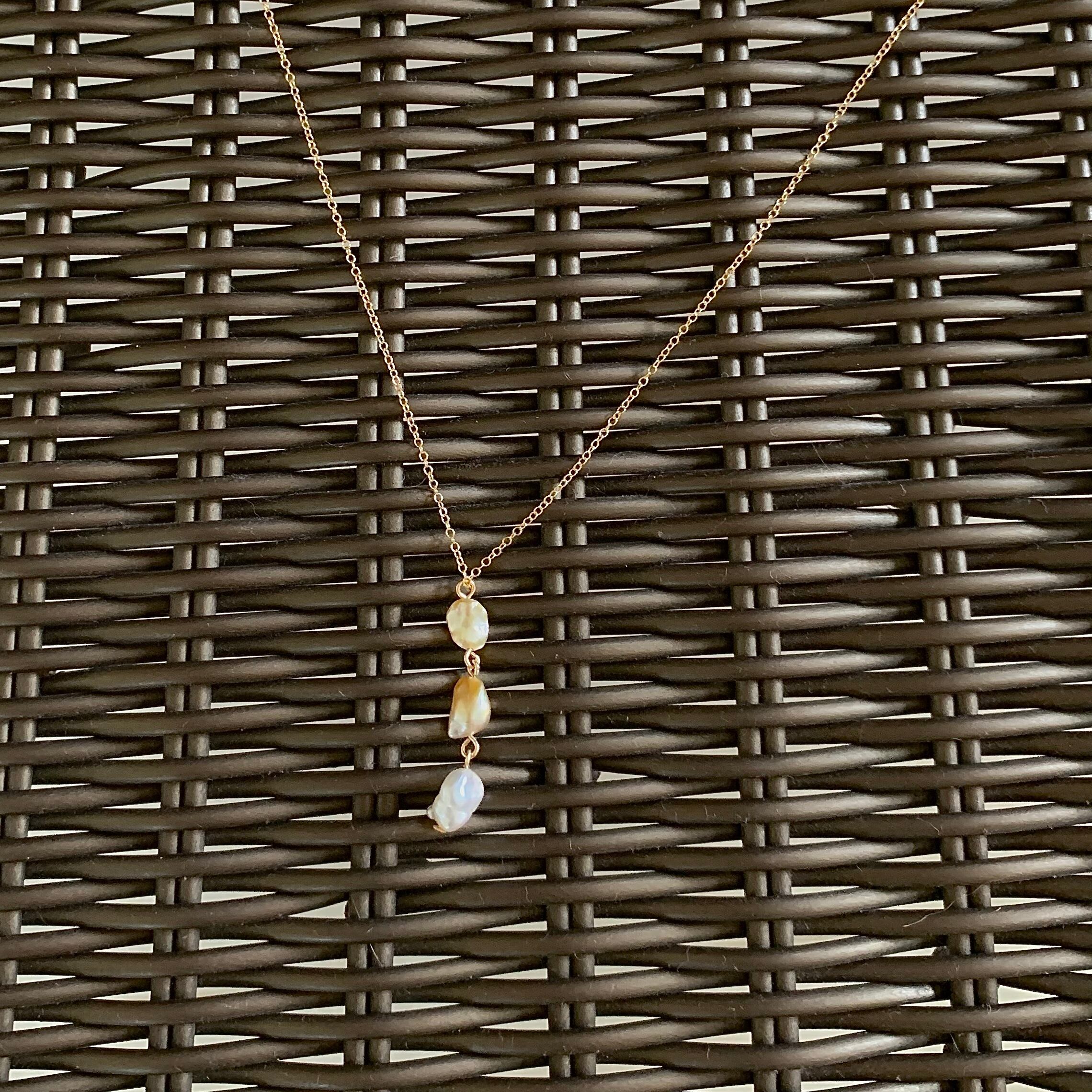 ケシ南洋白蝶真珠が3つ並んだ♡14kgfペンダントネックレス【GFN-001】