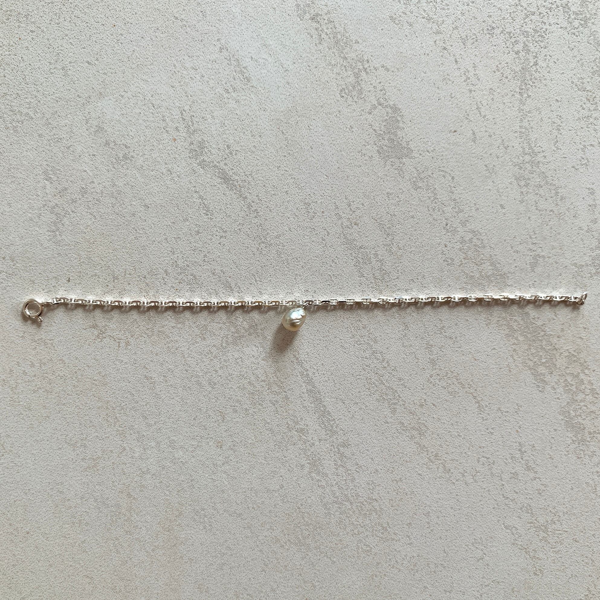 ツヤコロ♪シルバーホワイトカラーのケシが一粒ついたチェーンブレスレット【BSV-001】
