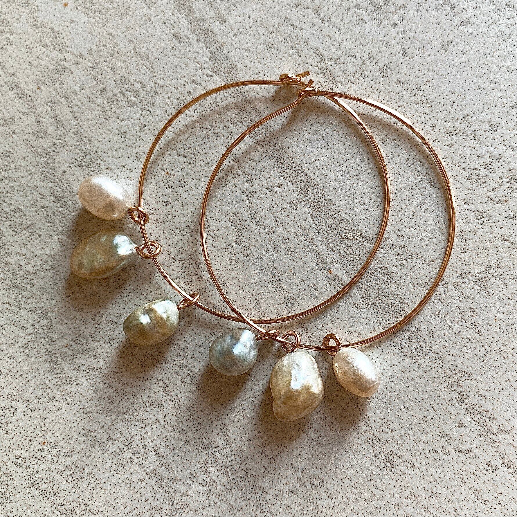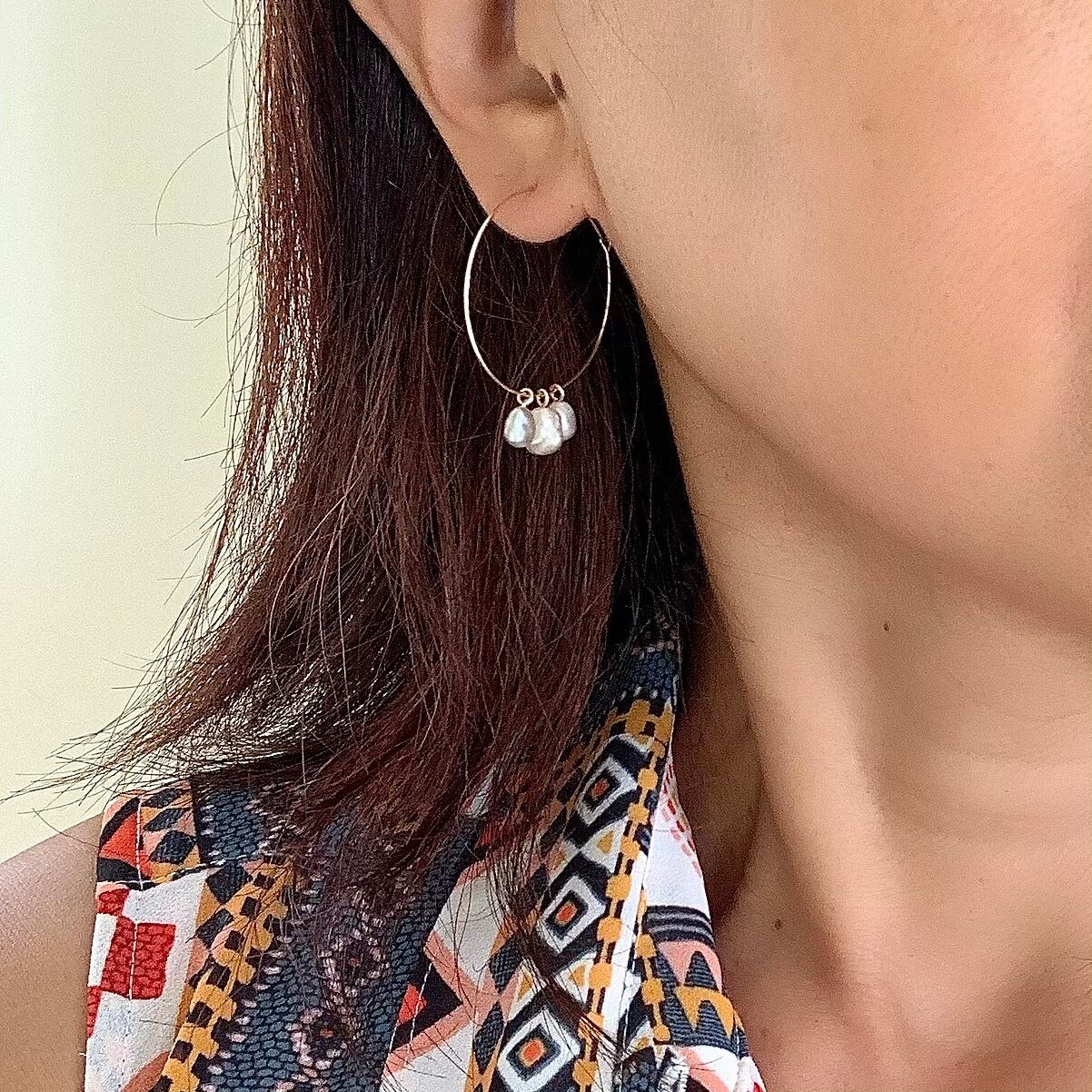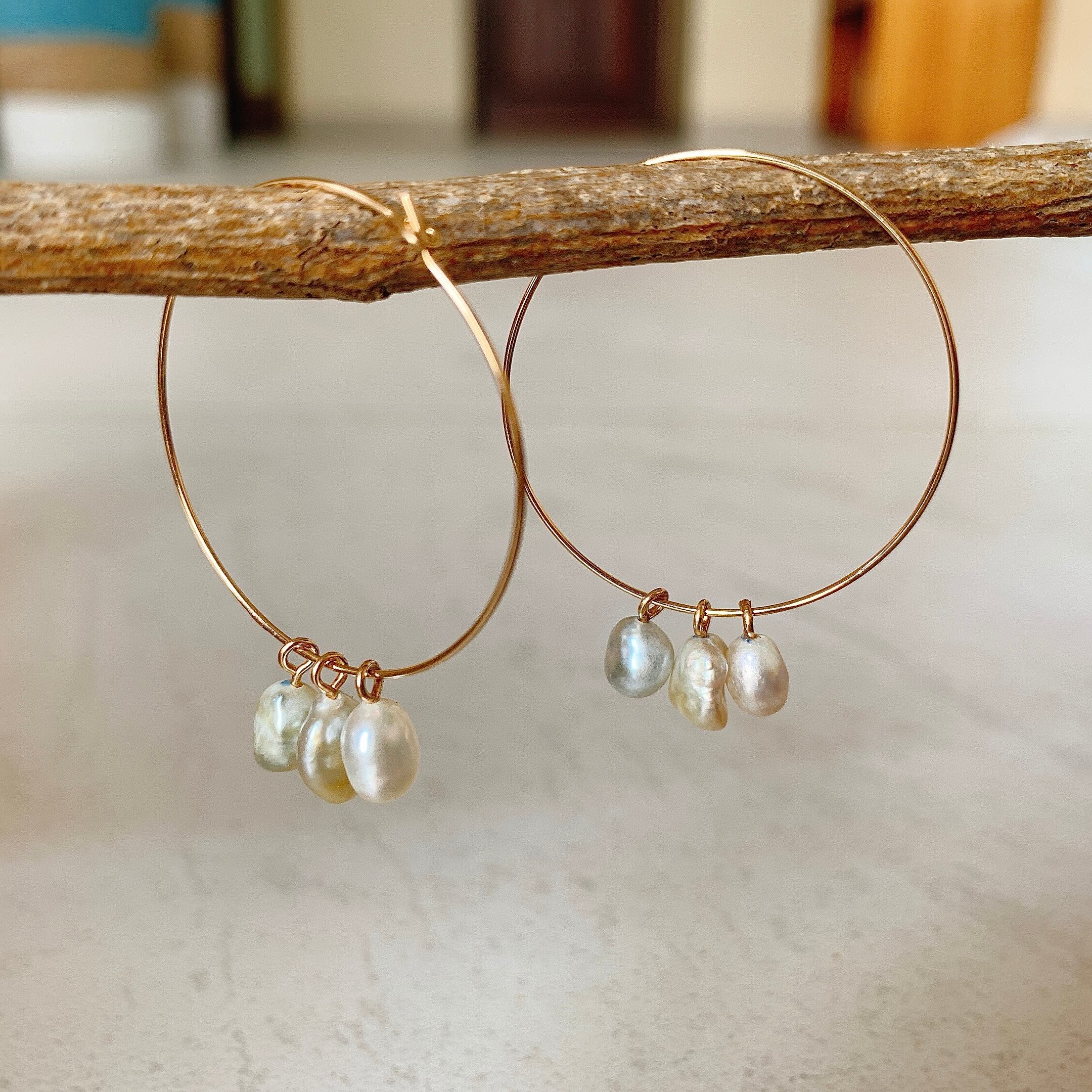 3つのケシがゆらゆら♡3cmフープ14kgfピアス【GFE-005】
