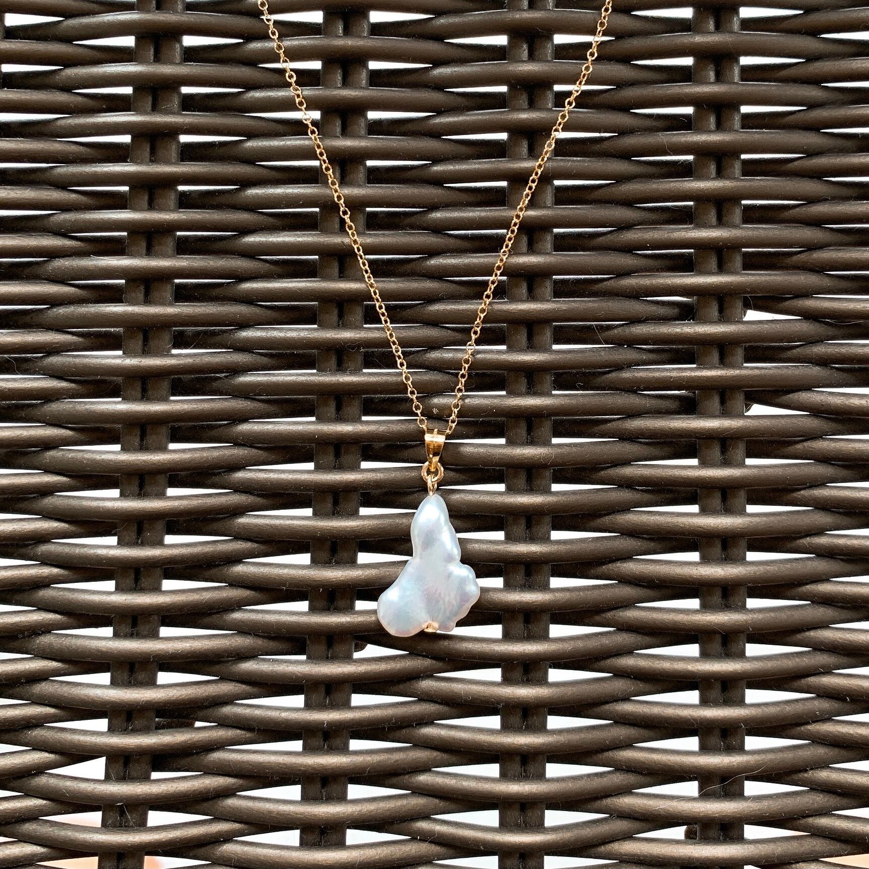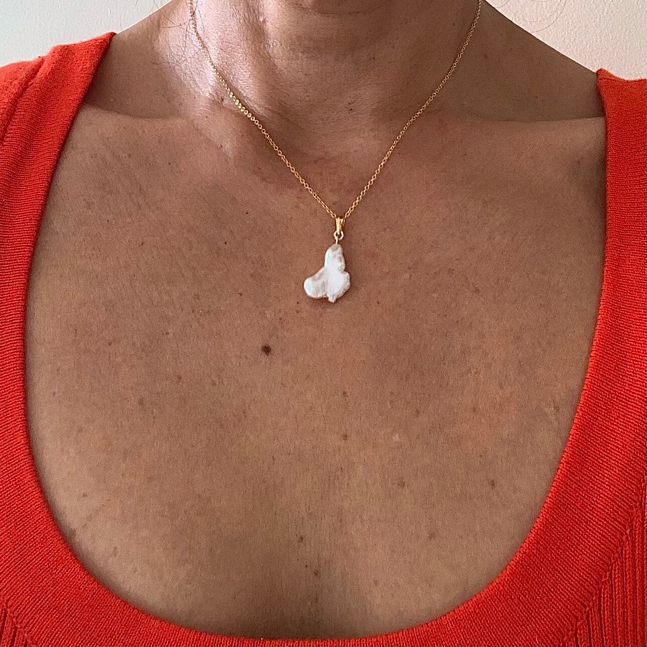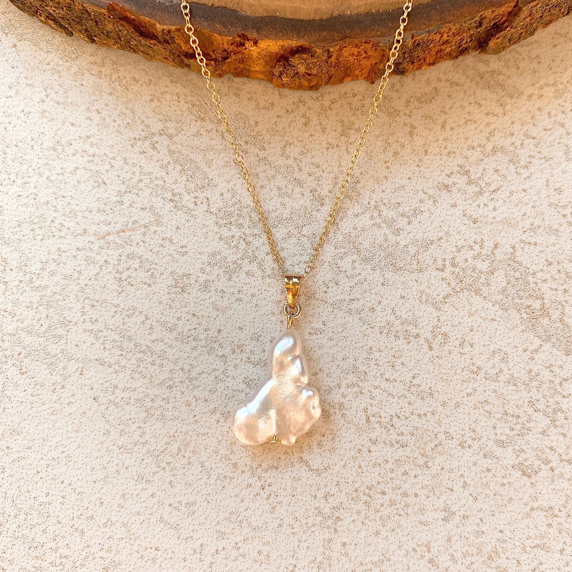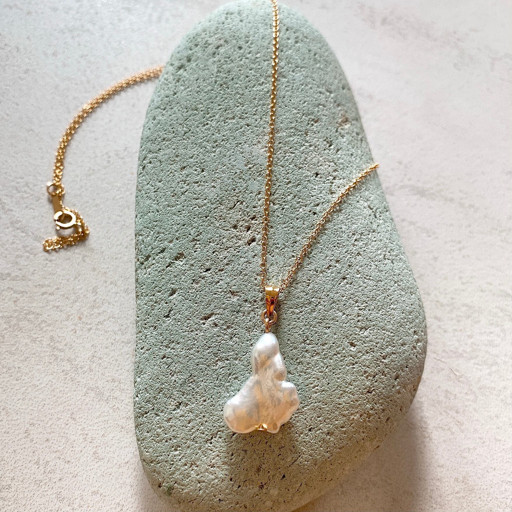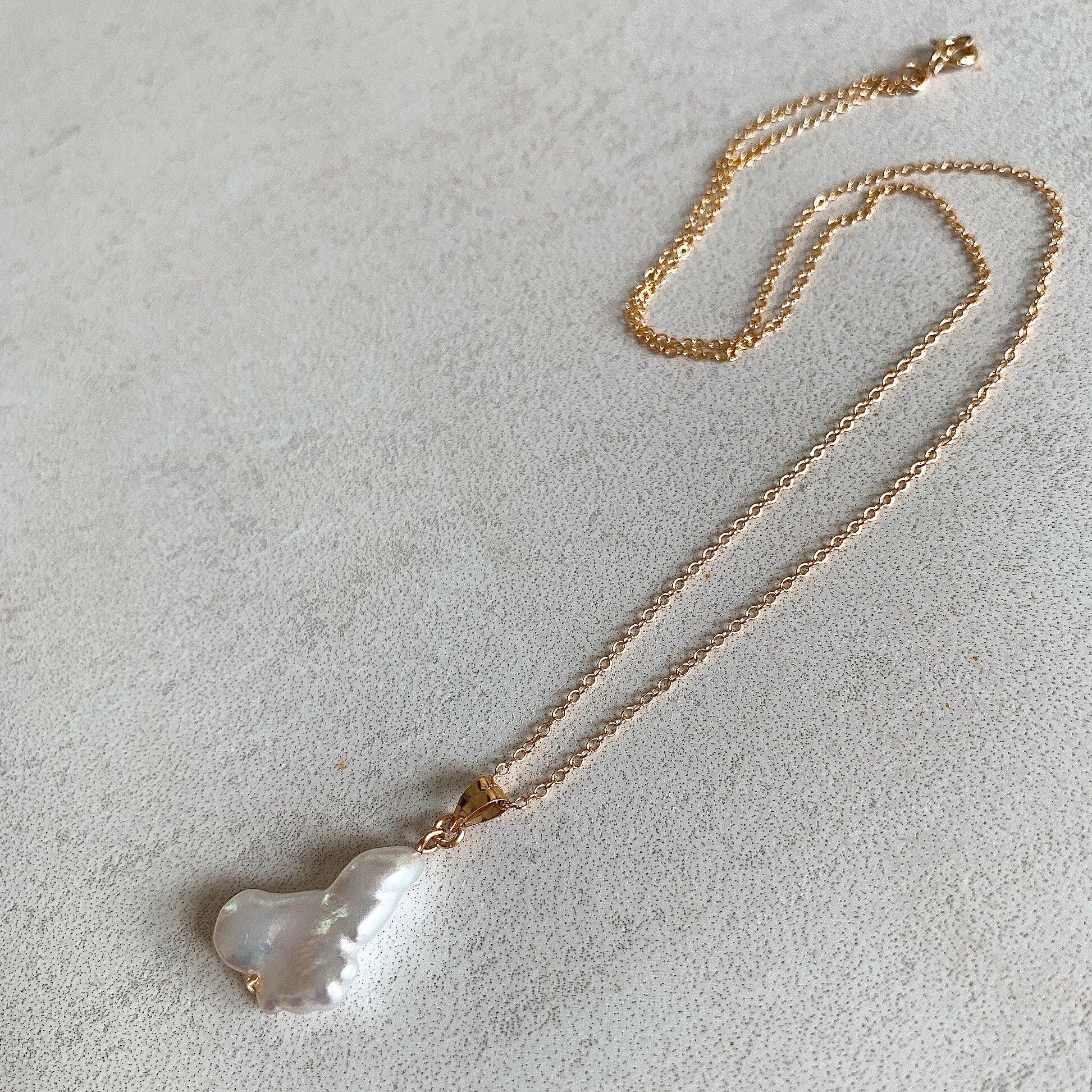 ユニークな形のケシ南洋白蝶真珠♡14kgfペンダント(40cmチェーン付)【GFP-002】