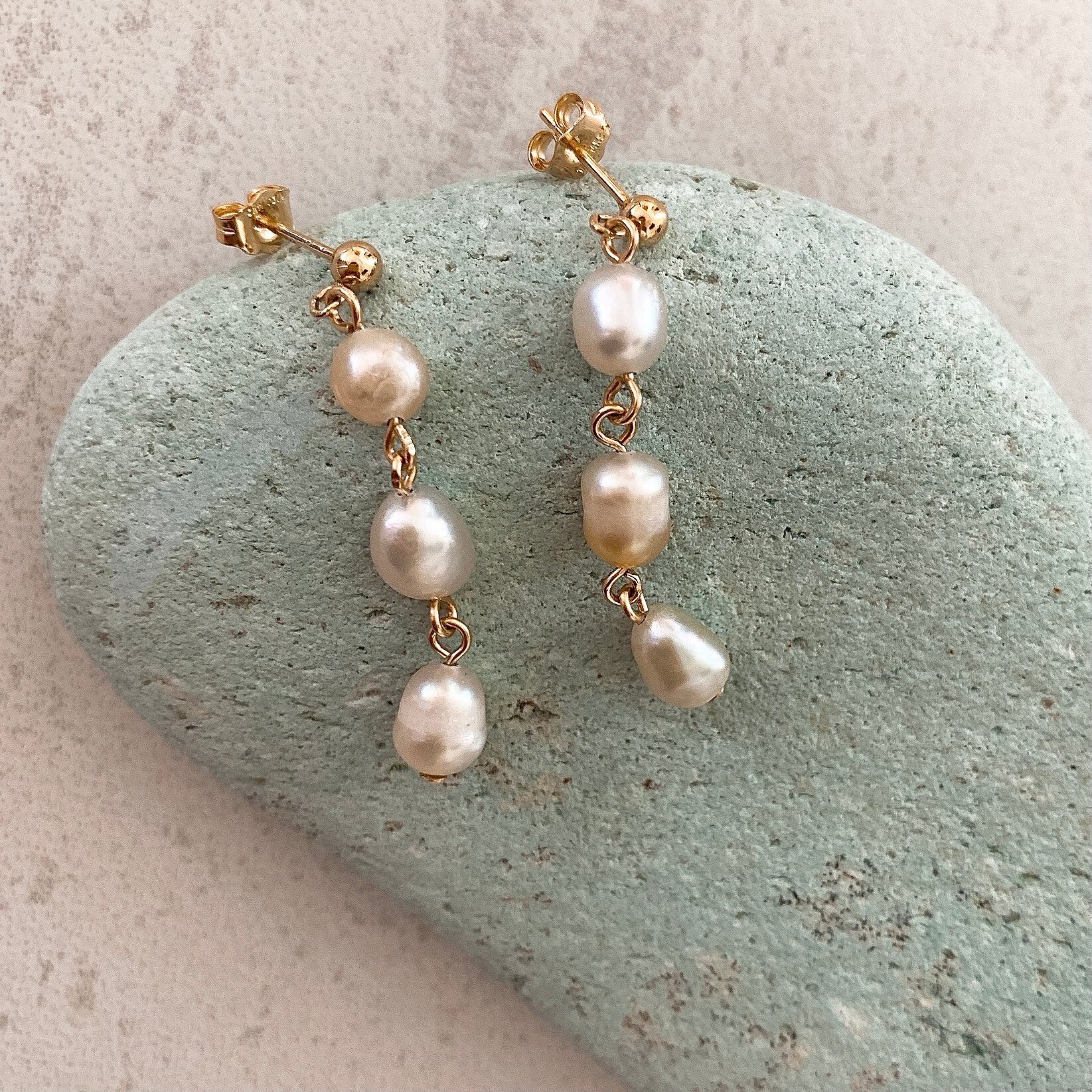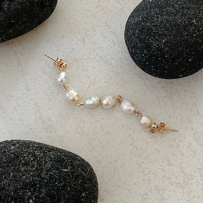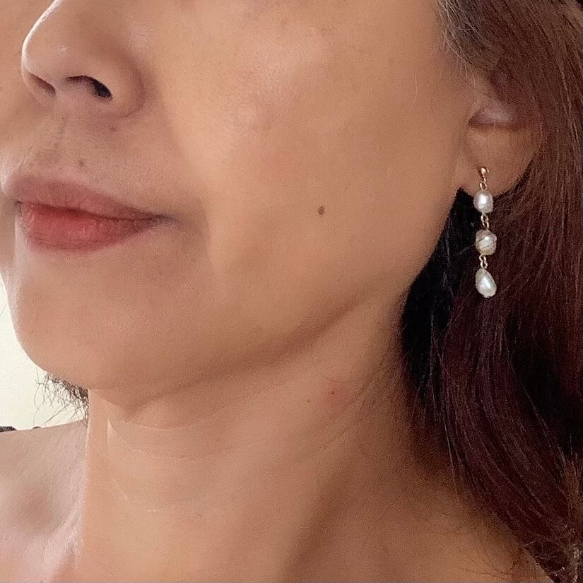 3つのキュートなケシパールがゆらゆら♡14kgfスタッドピアス【GFE-011】