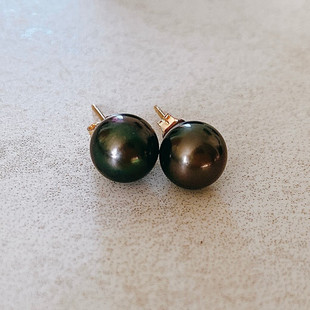 7.8mmブラックタヒチパール♡14kgfスタッドピアス 【TGE-001】