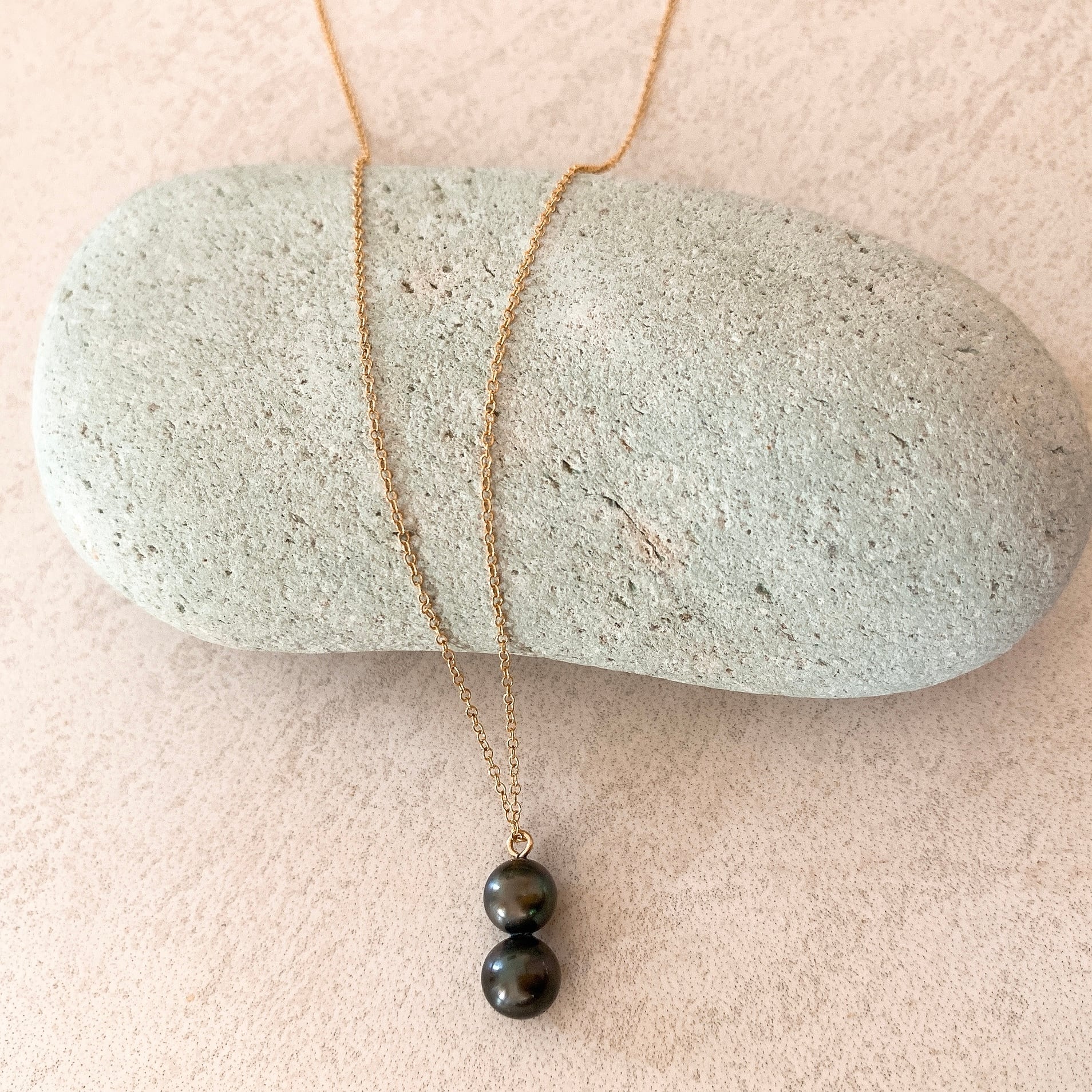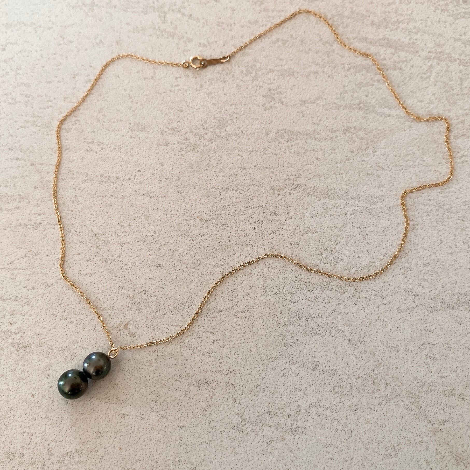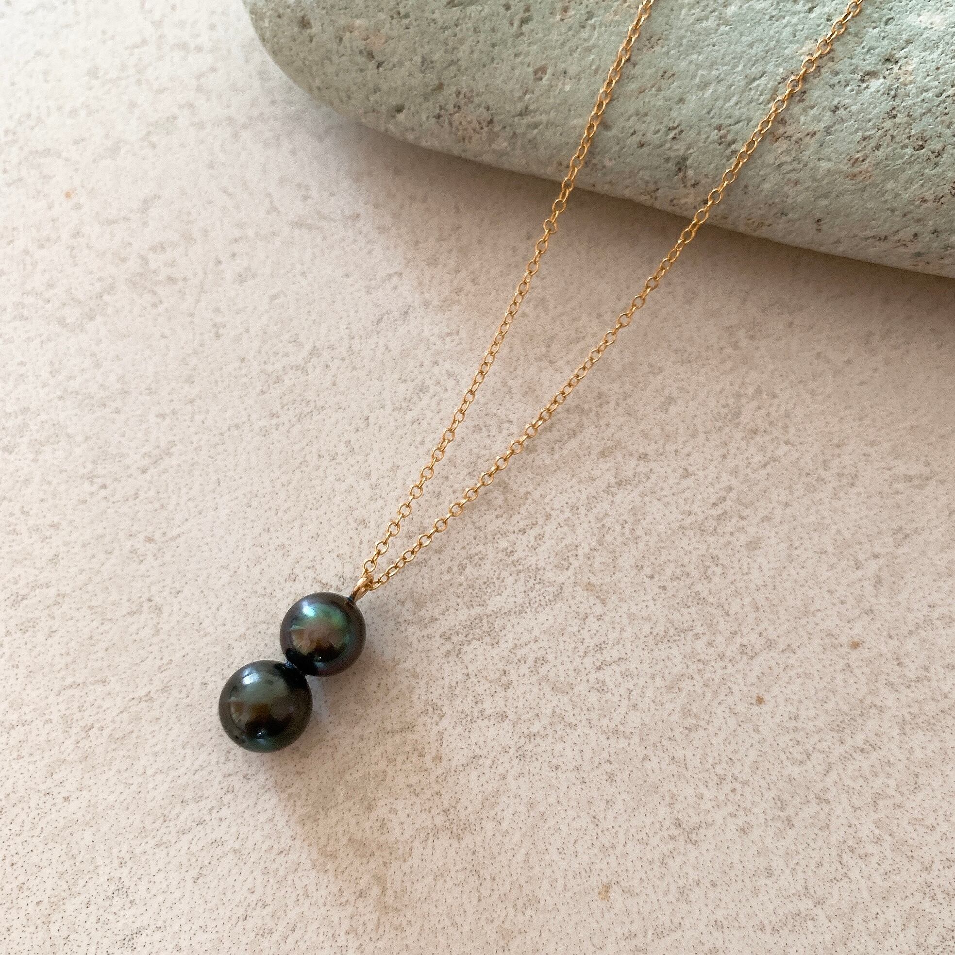ブラックタヒチパールが2つ♡14kgfペンダントネックレス 【TGN-002】