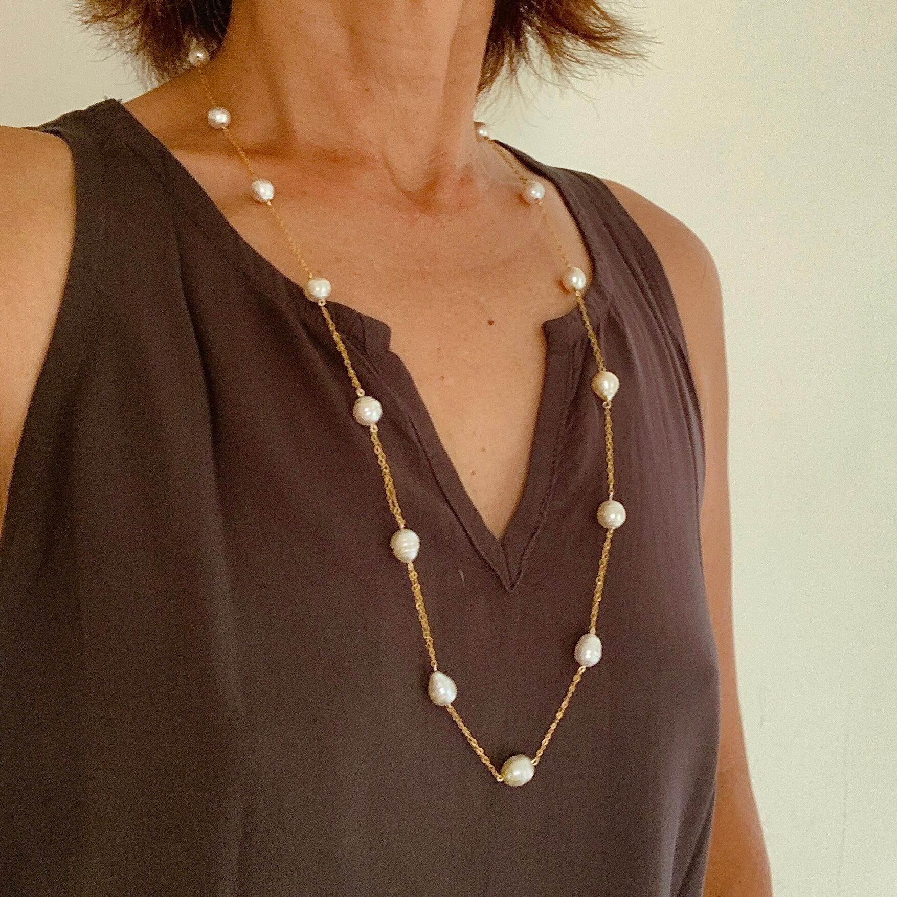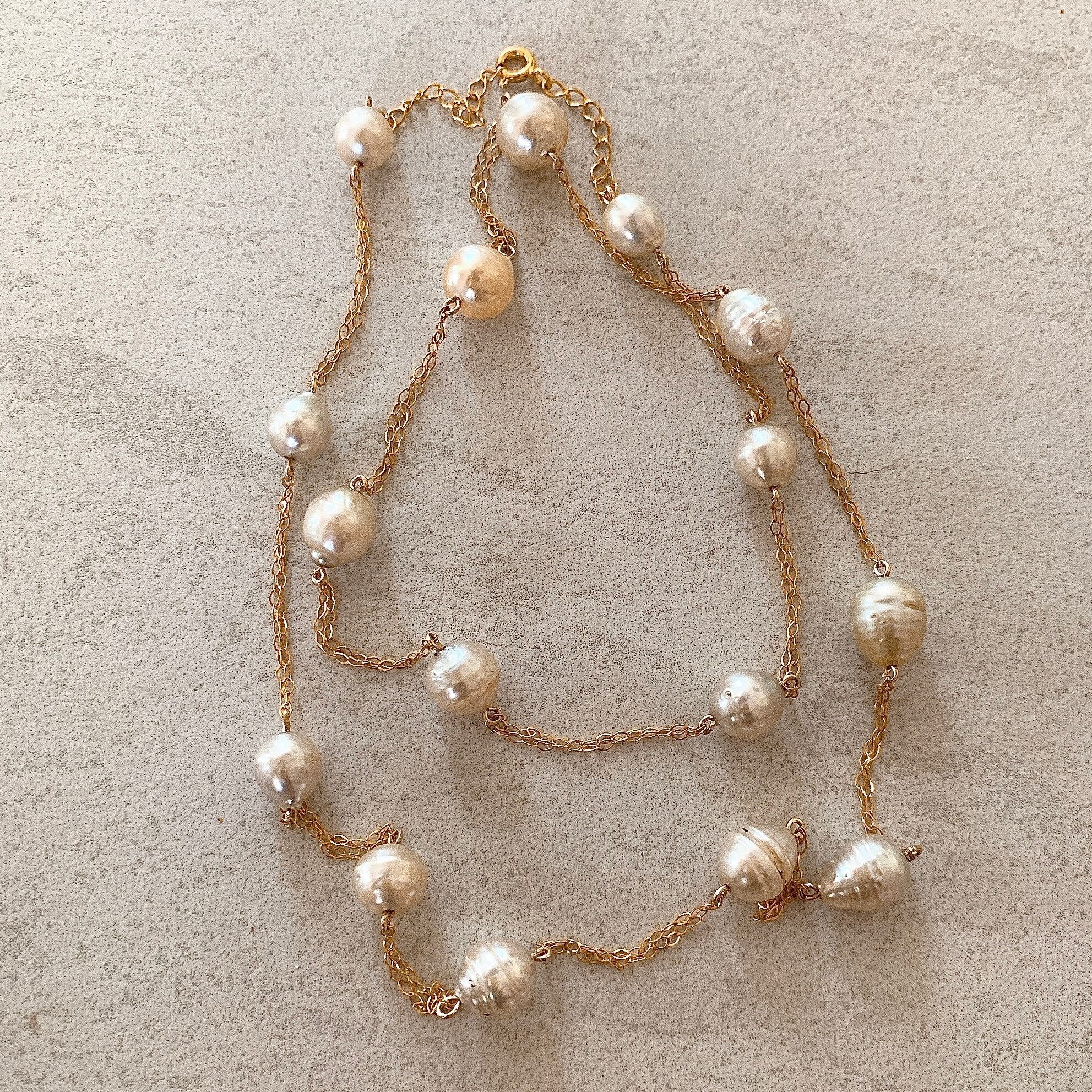 バロック南洋白蝶真珠のステーションネックレスです。