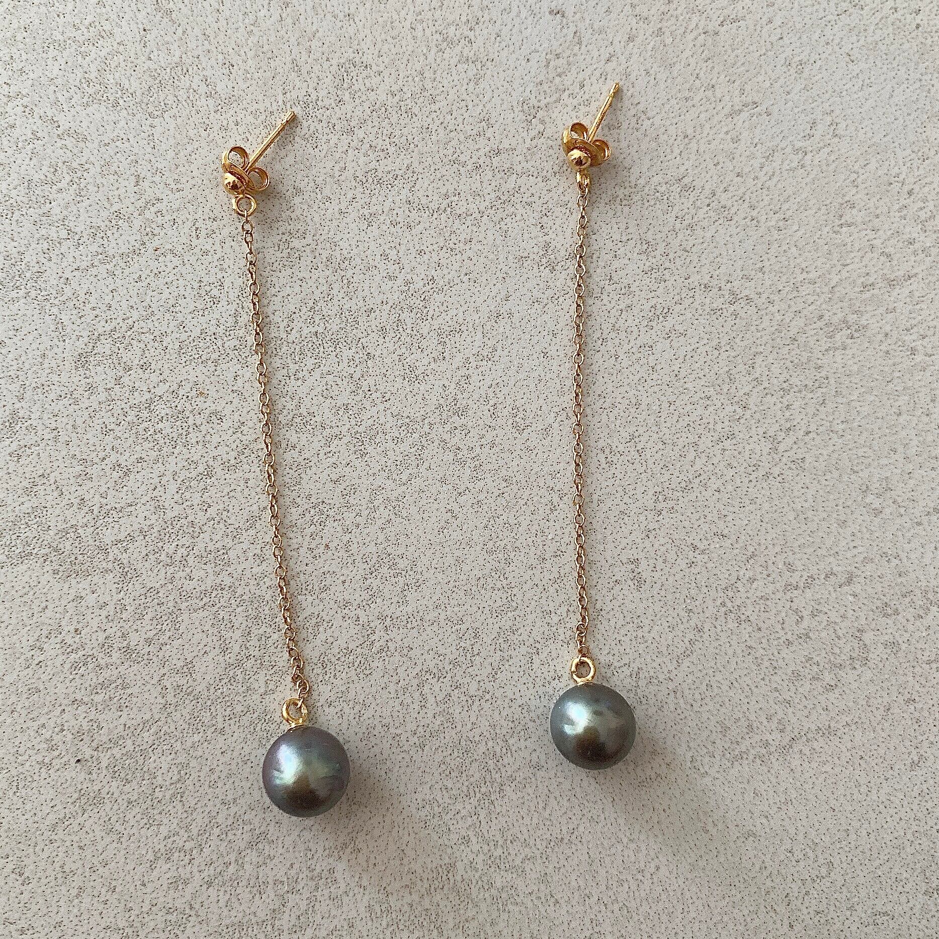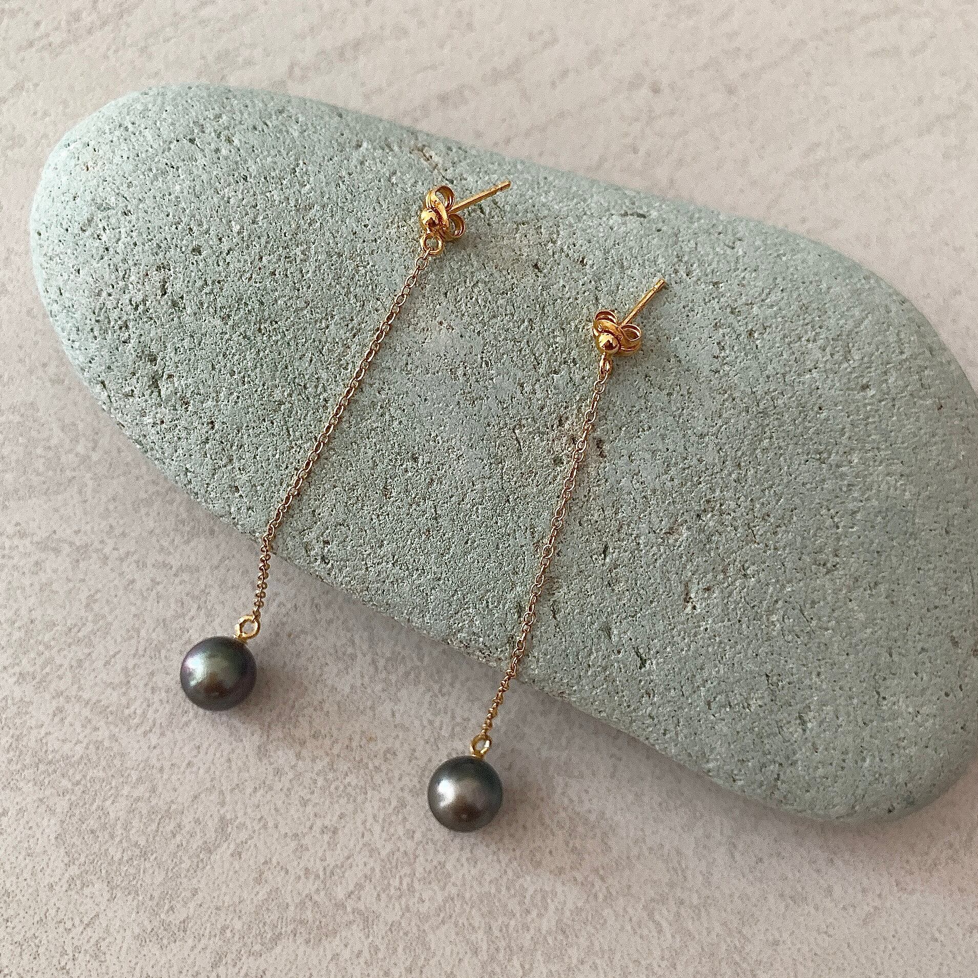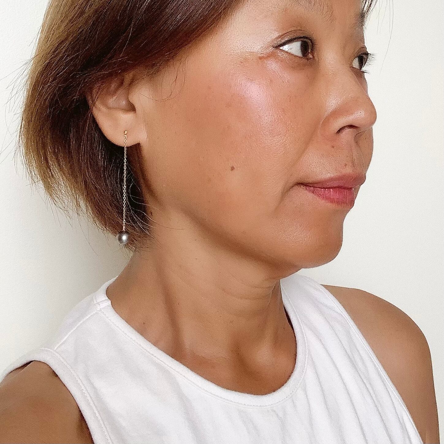 8.15mmブラックタヒチパール♡シルバー925チェーンロングピアス 【ESV-005】
