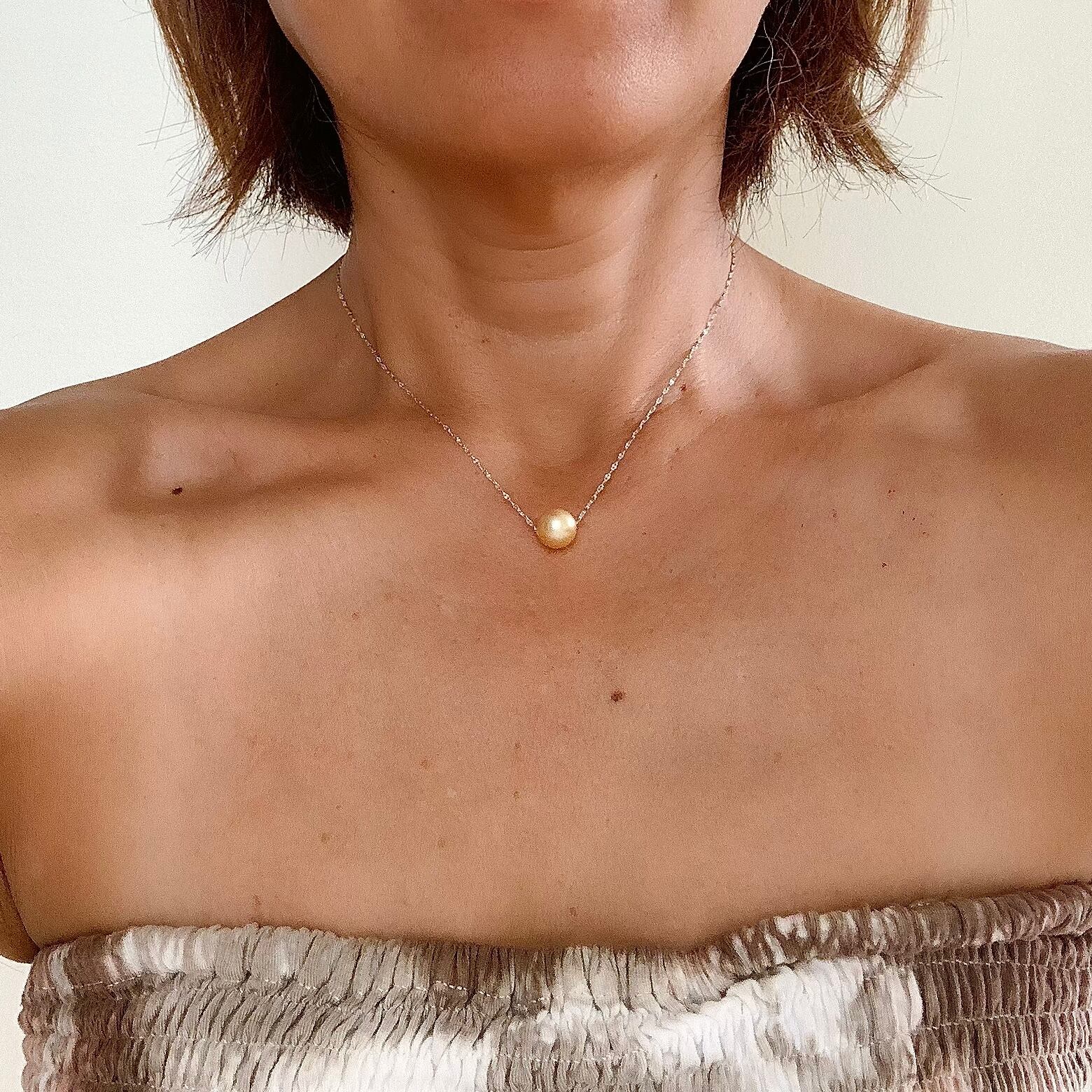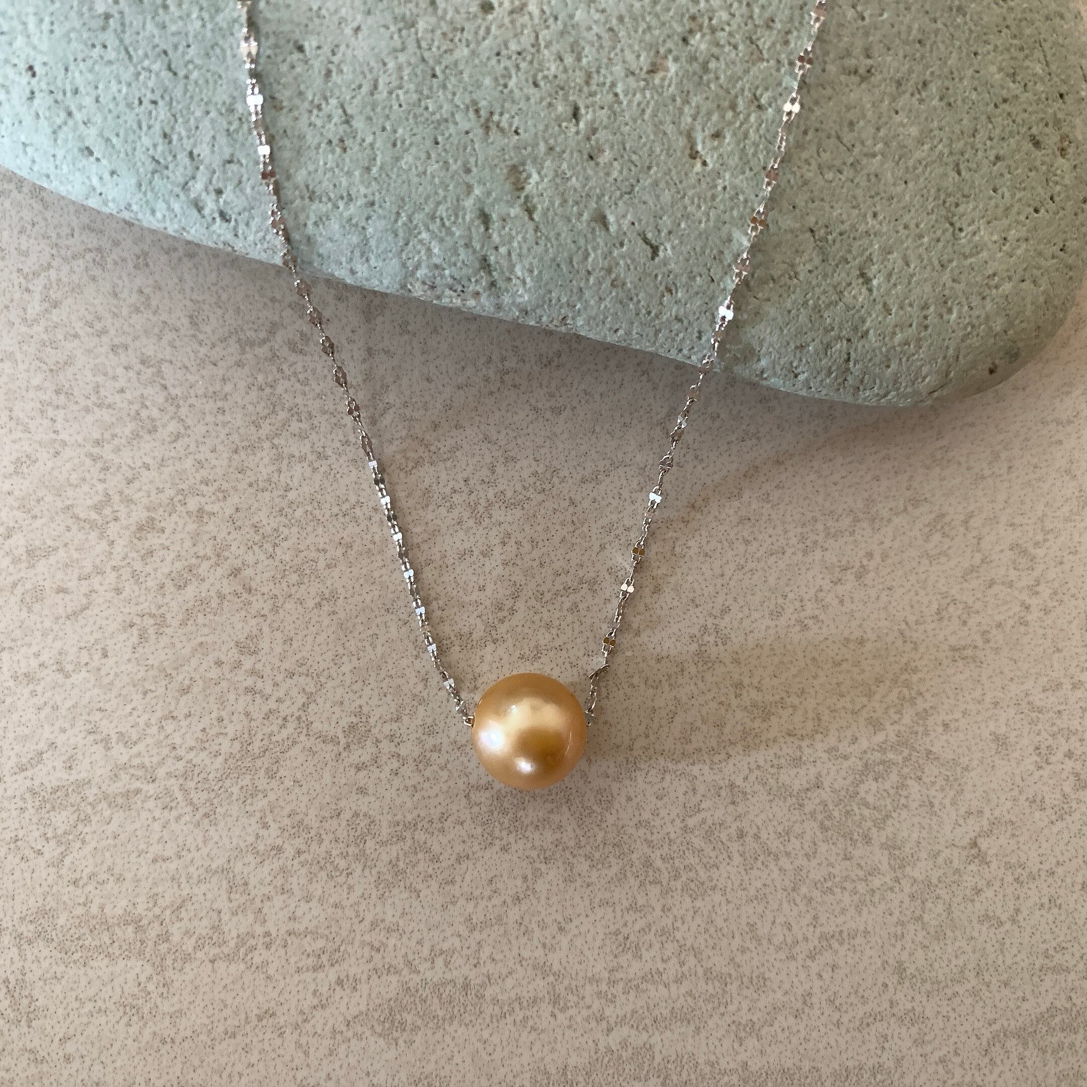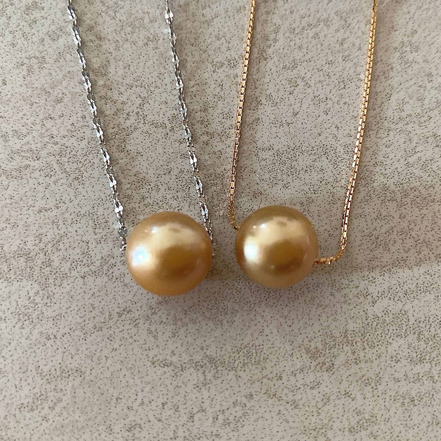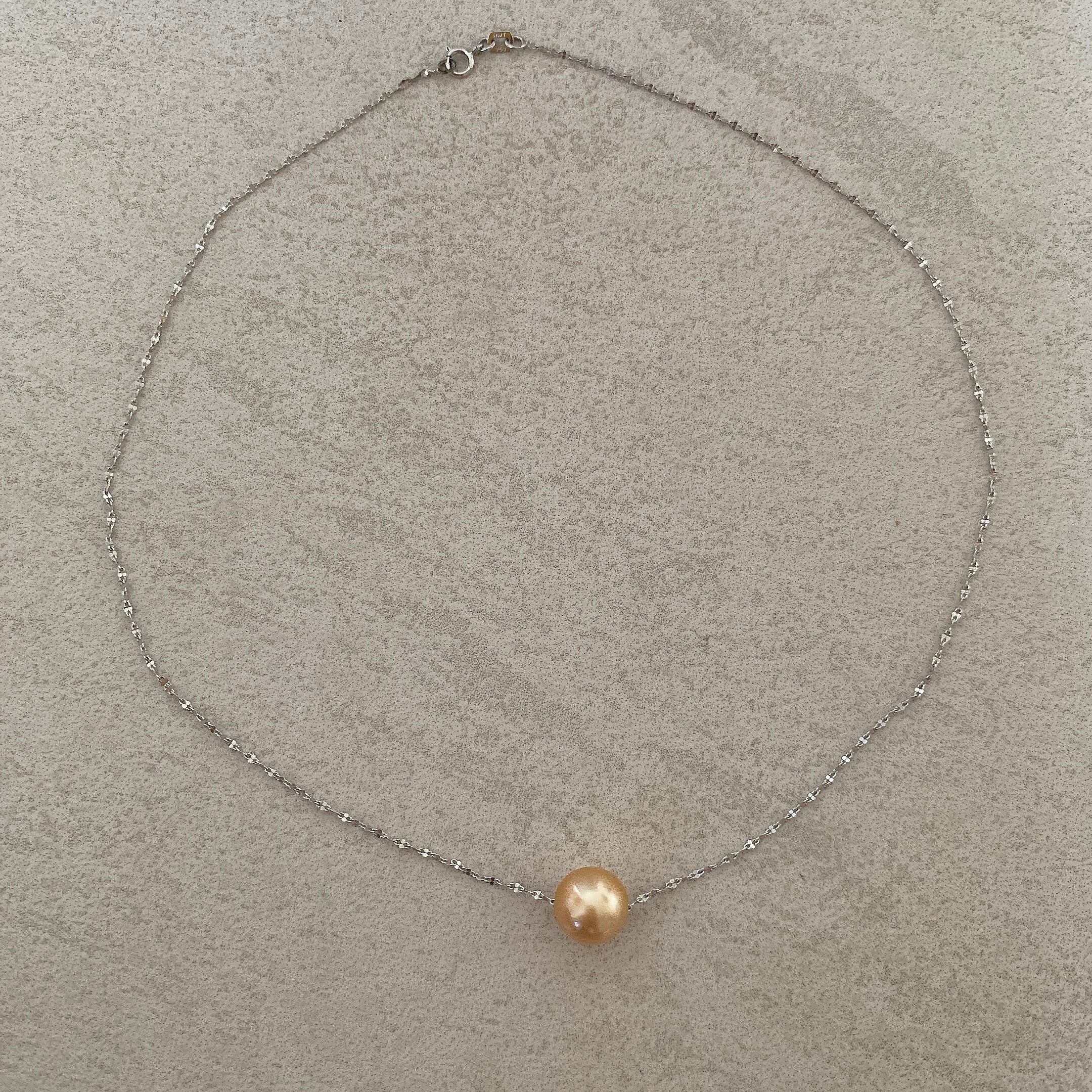 9.95mmゴールドカラー南洋白蝶真珠♡ホワイトゴールド17Kスルーネックレス【PWC-001】