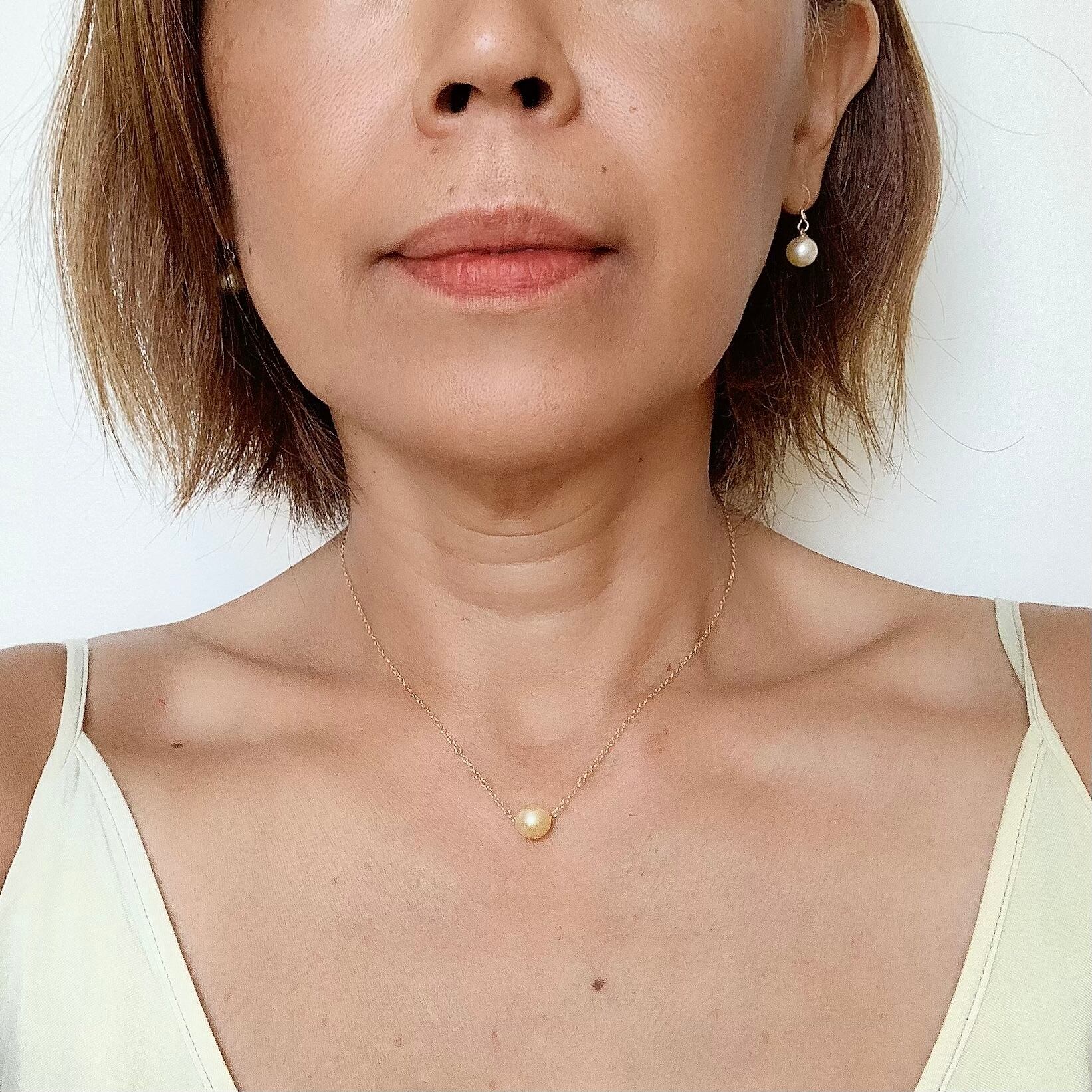 2. 真珠サイズ : 8.65mm、ゴールドコーティングシルバーチェーン : 約41cm