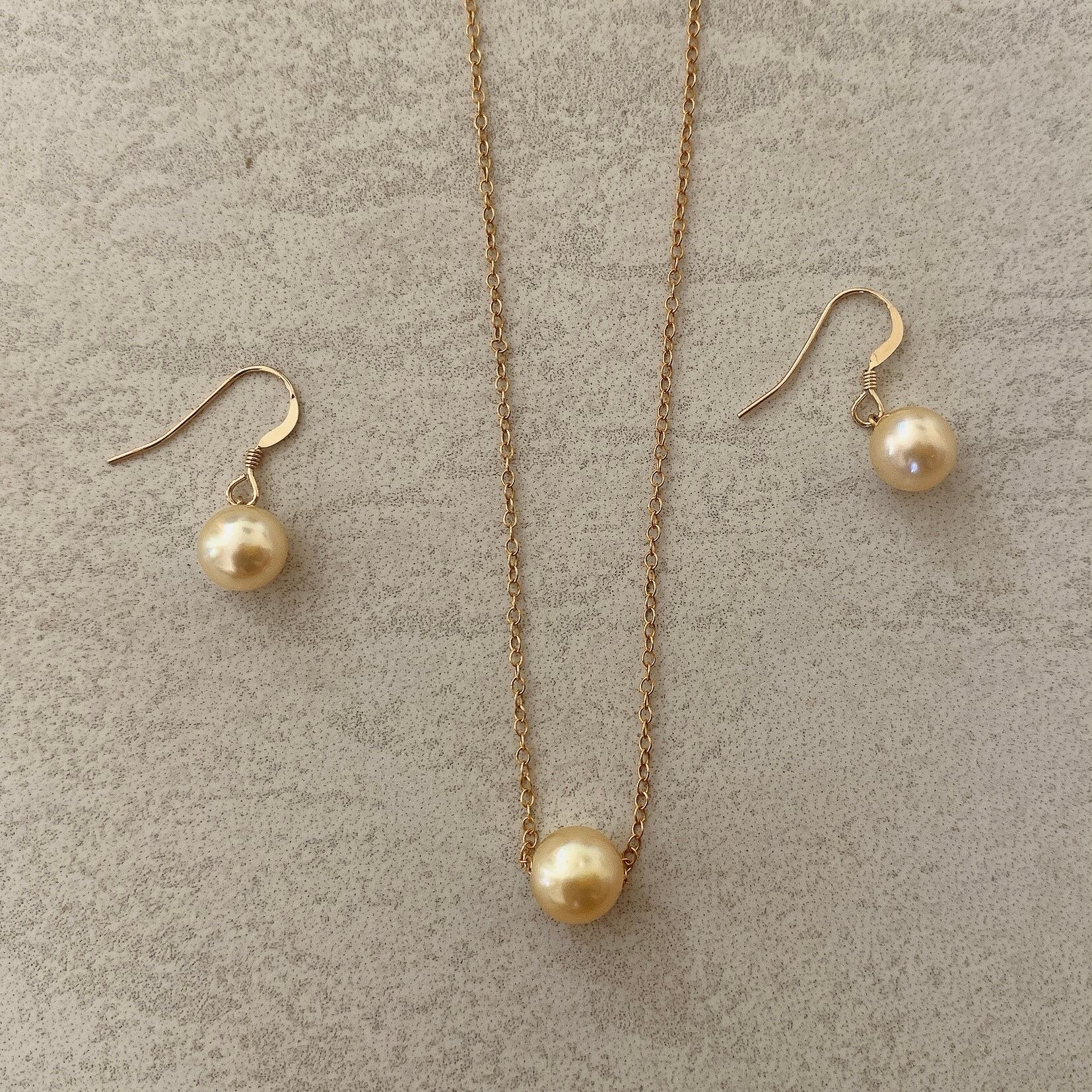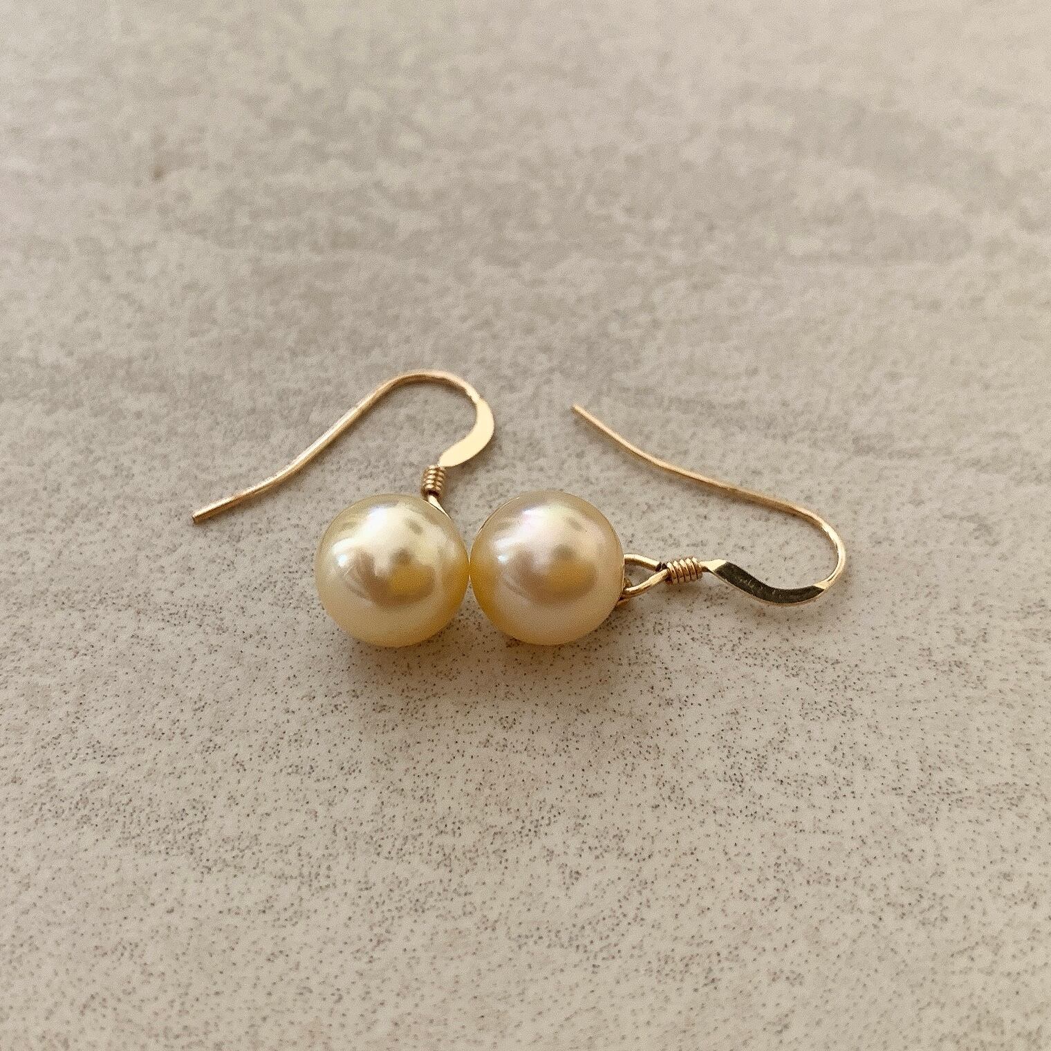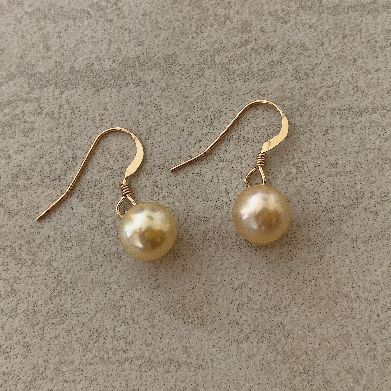 8.15mmシャンパンゴールド南洋白蝶真珠♡14kgfフックピアス【GFE-035】