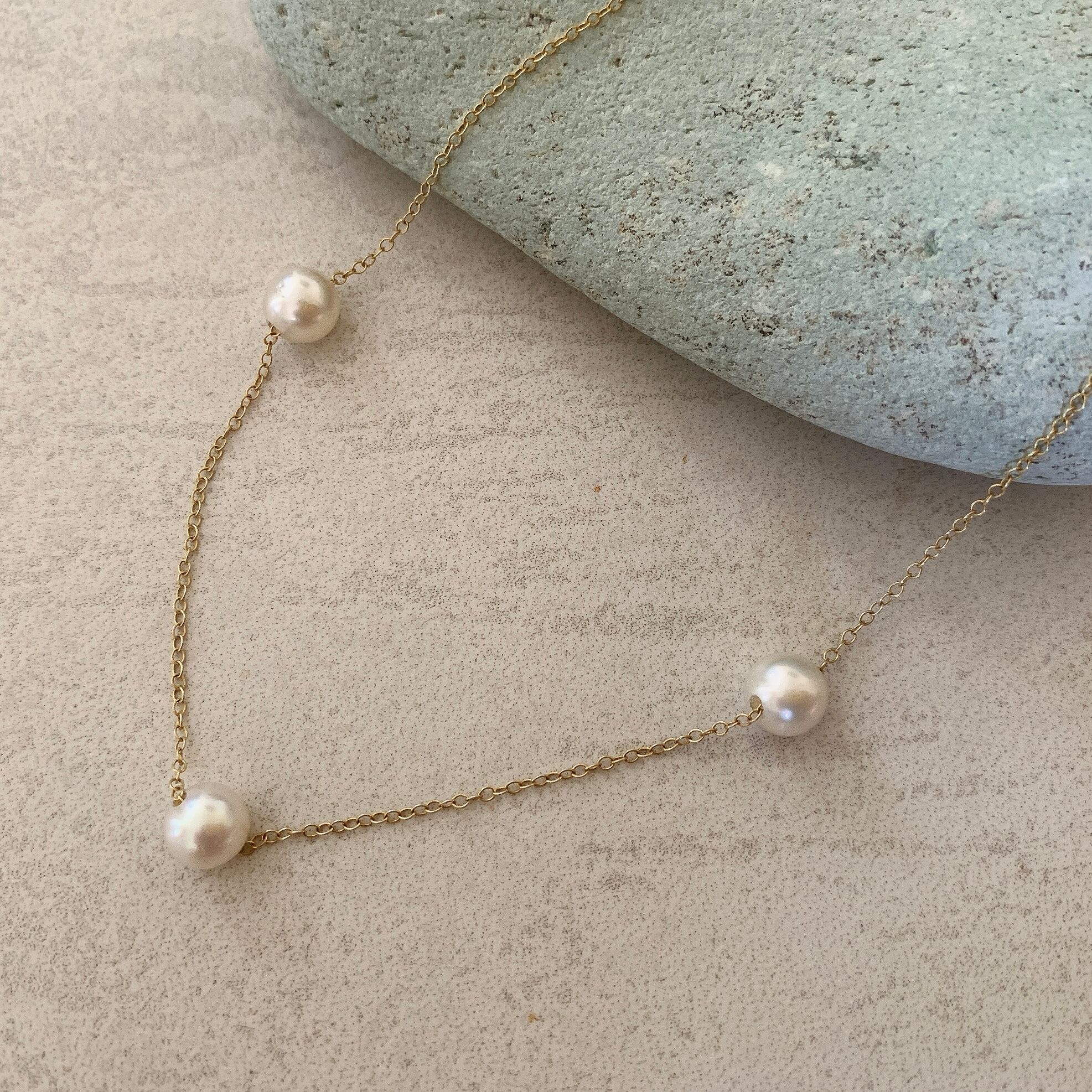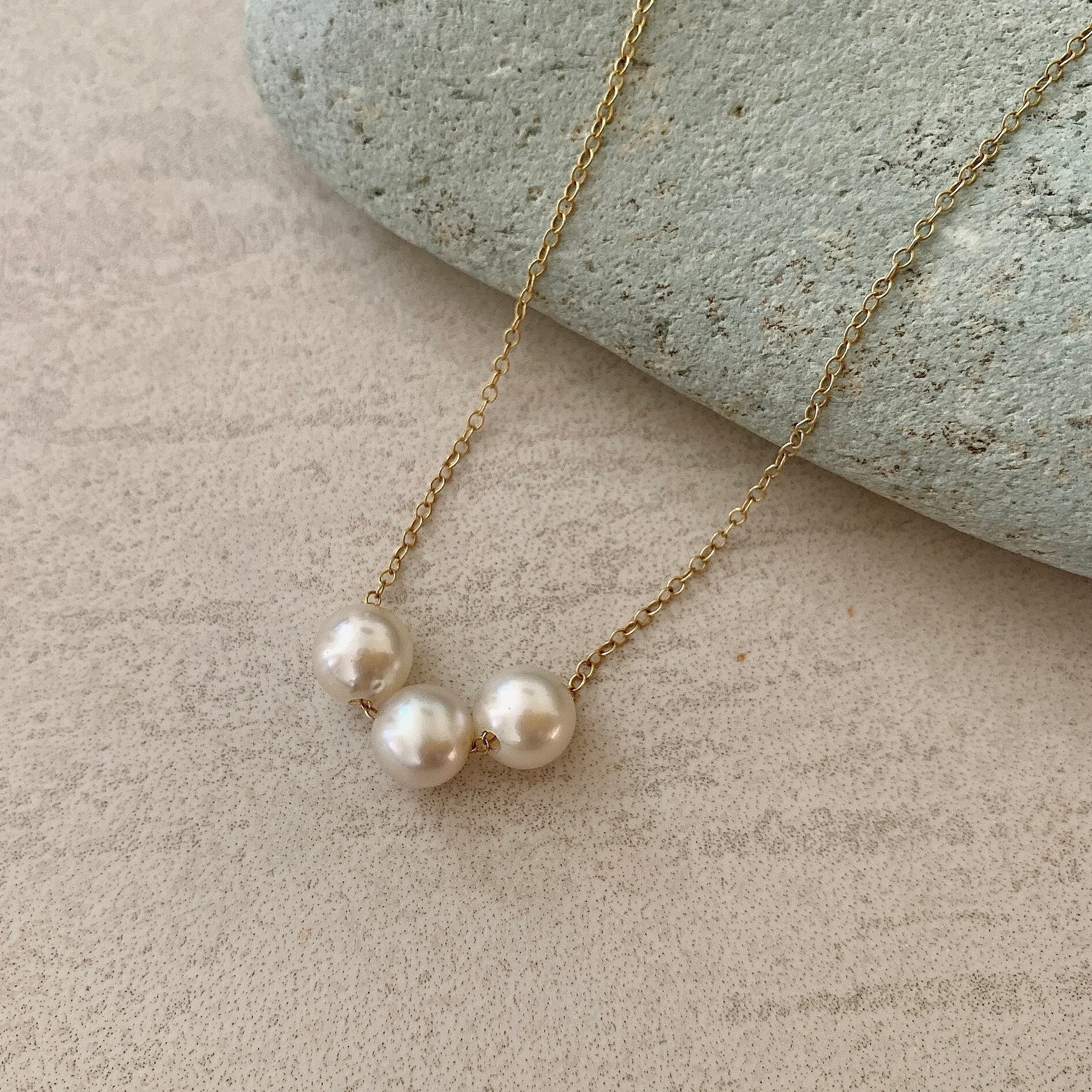 南洋白蝶真珠が3つ♡シルバー925スルーネックレス【PSC-032】
