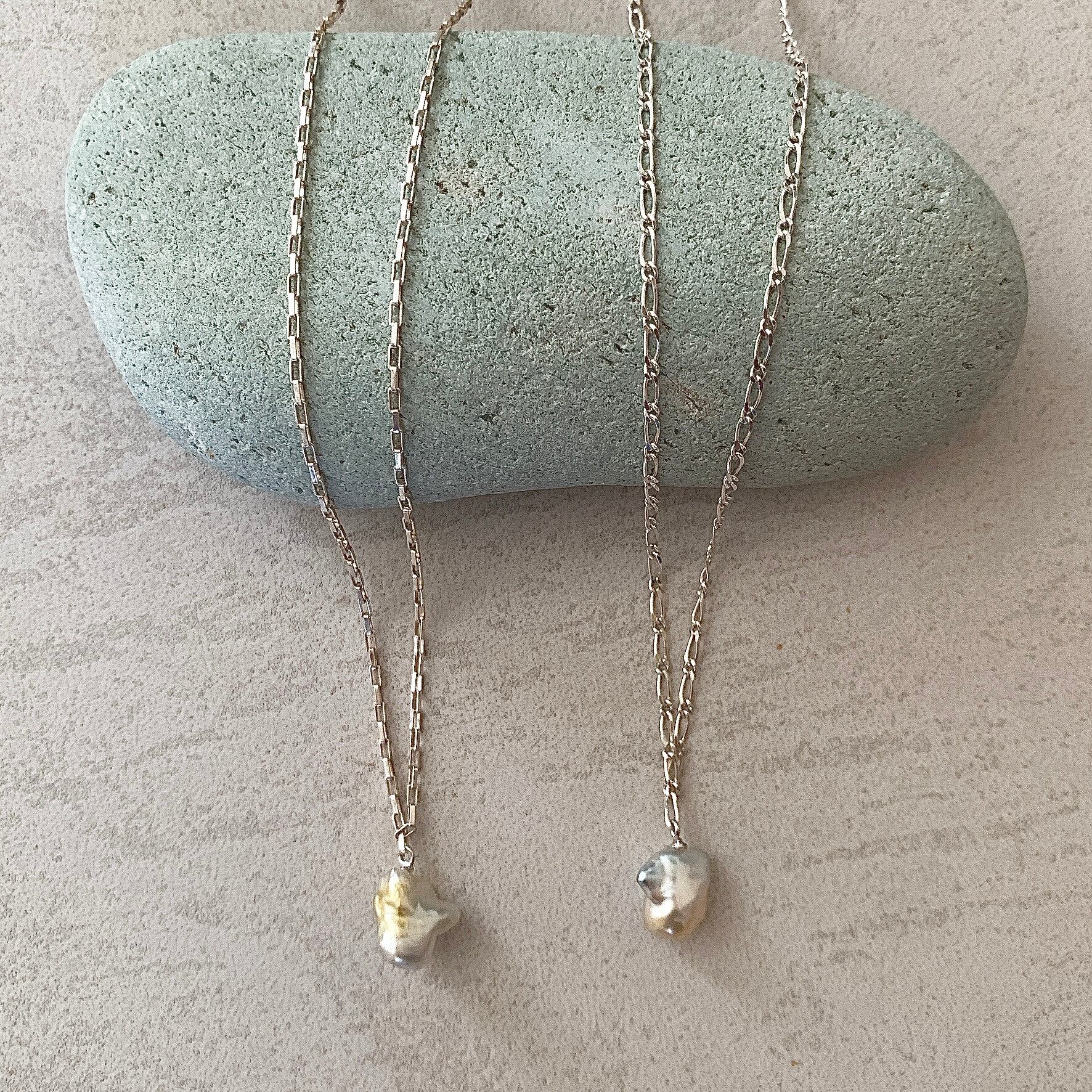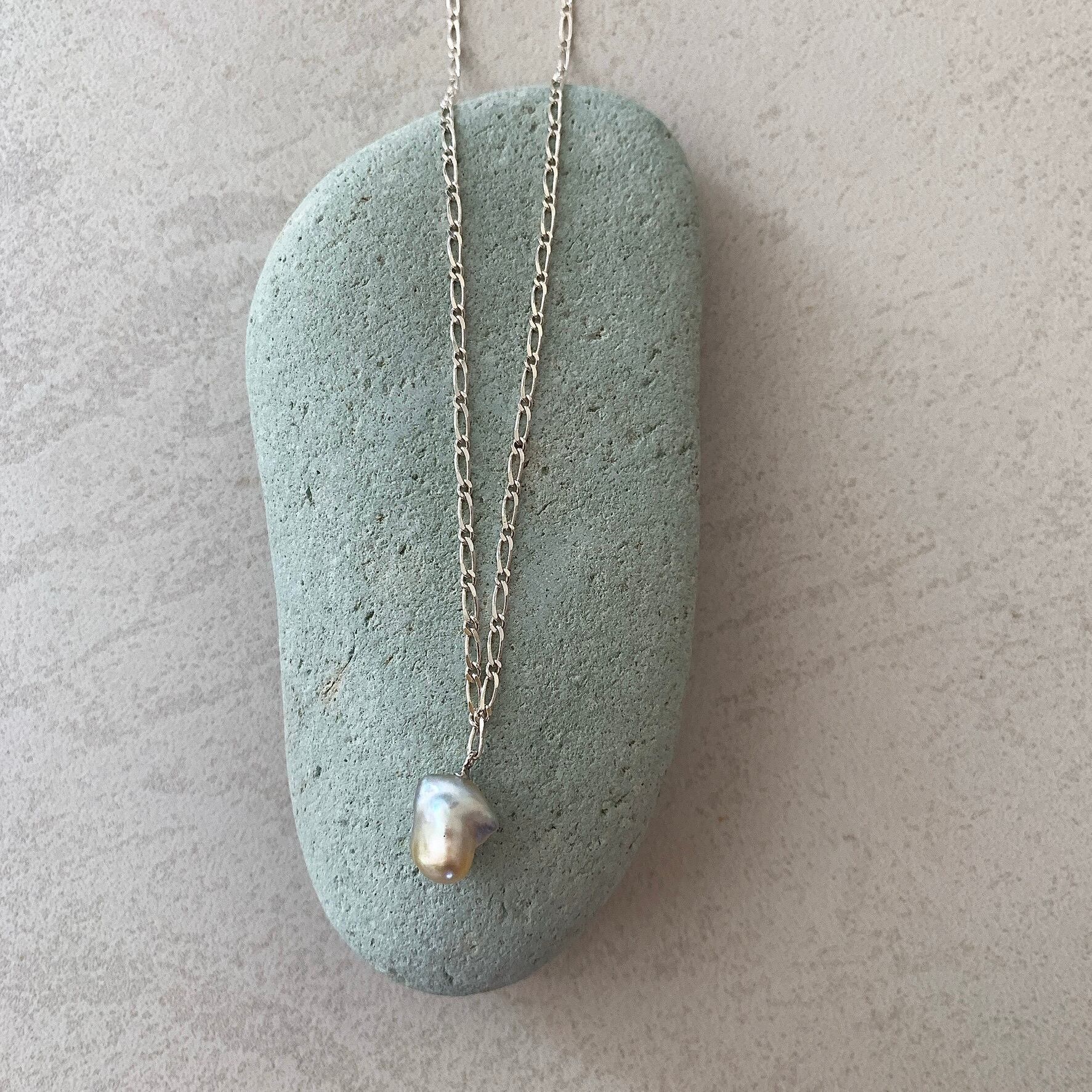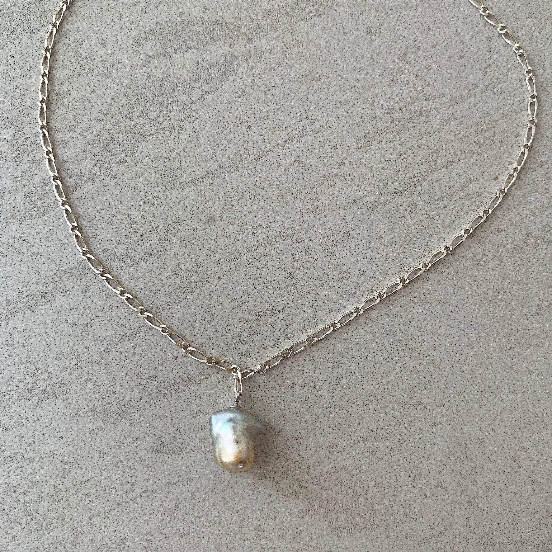 美しい大粒ケシパール♡シルバーペンダントネックレス42cm【PSN-006】