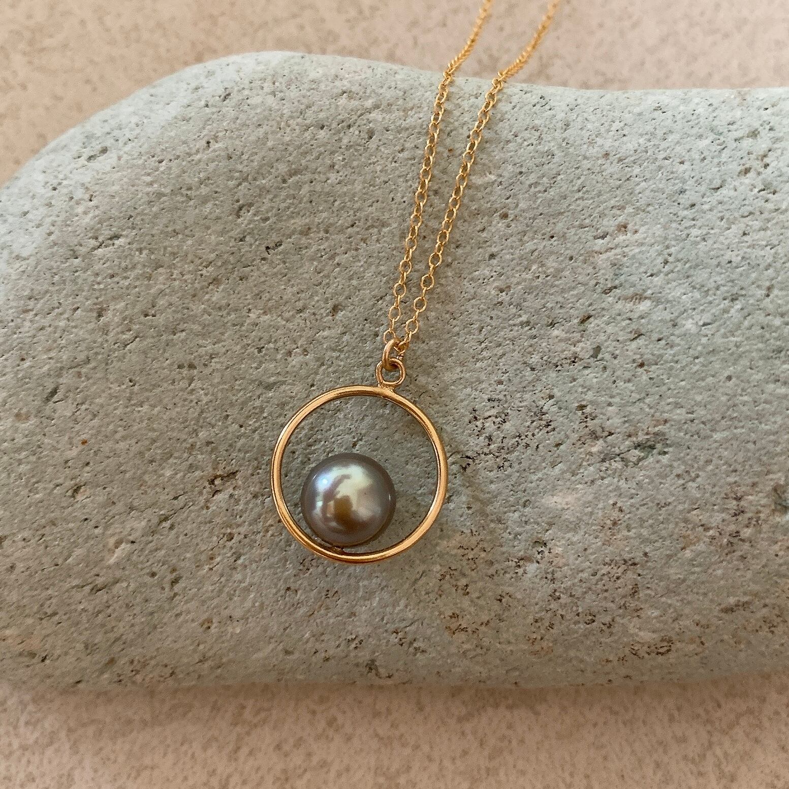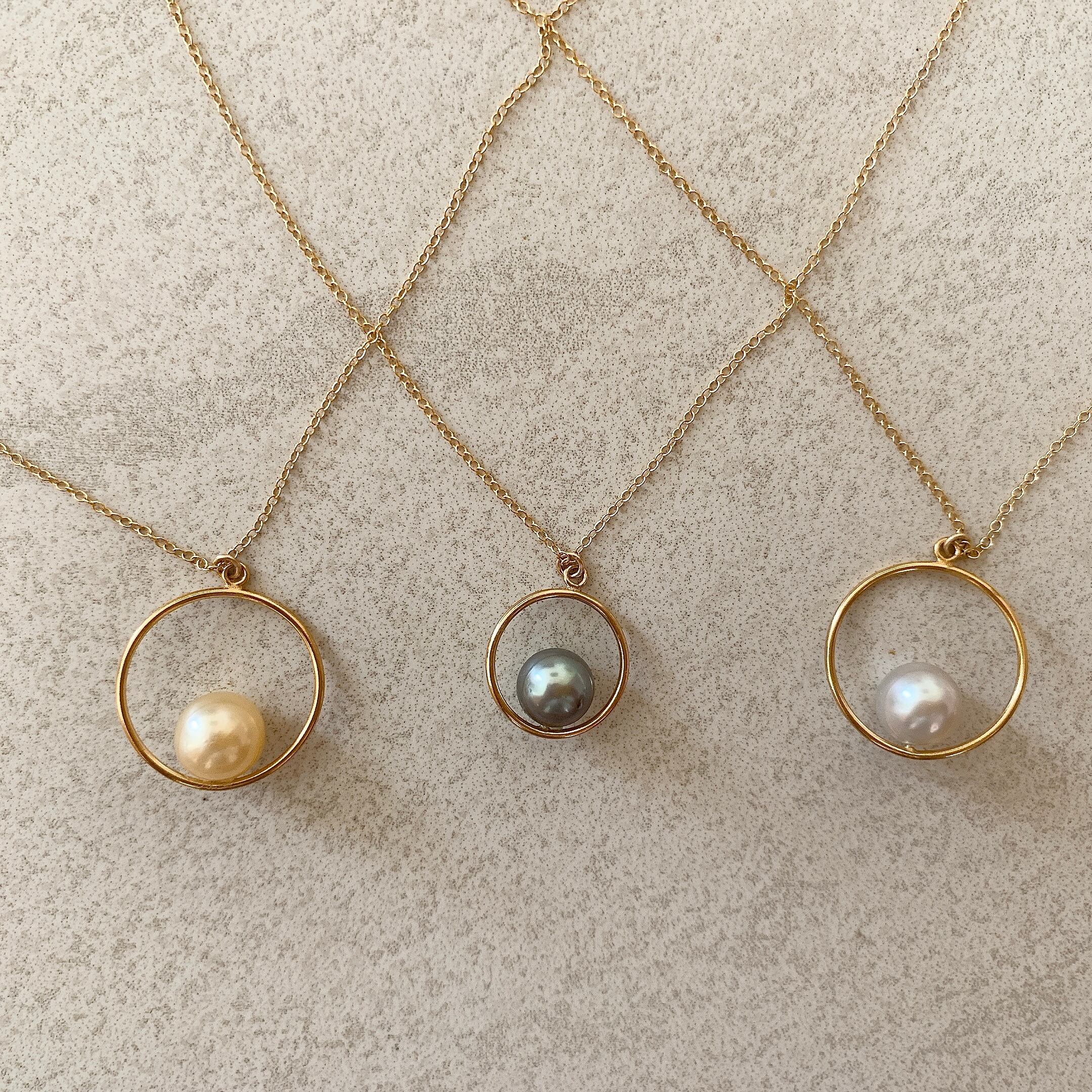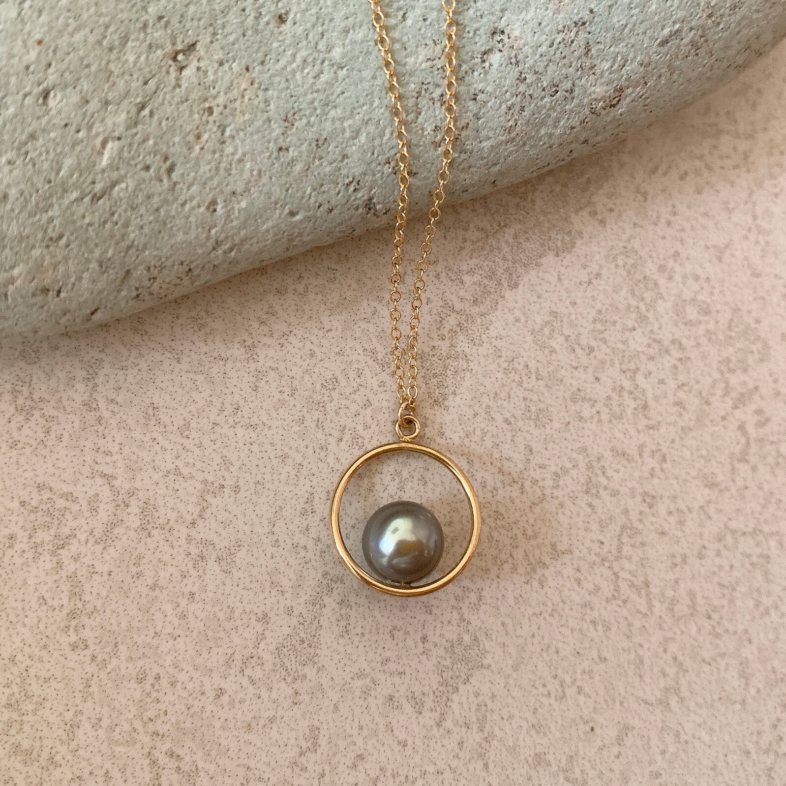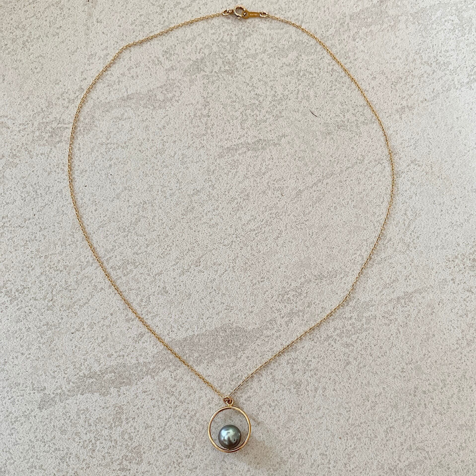 タヒチ黒蝶真珠まんまるペンダント♡14kgf(40cmチェーン付)【TGP-002】