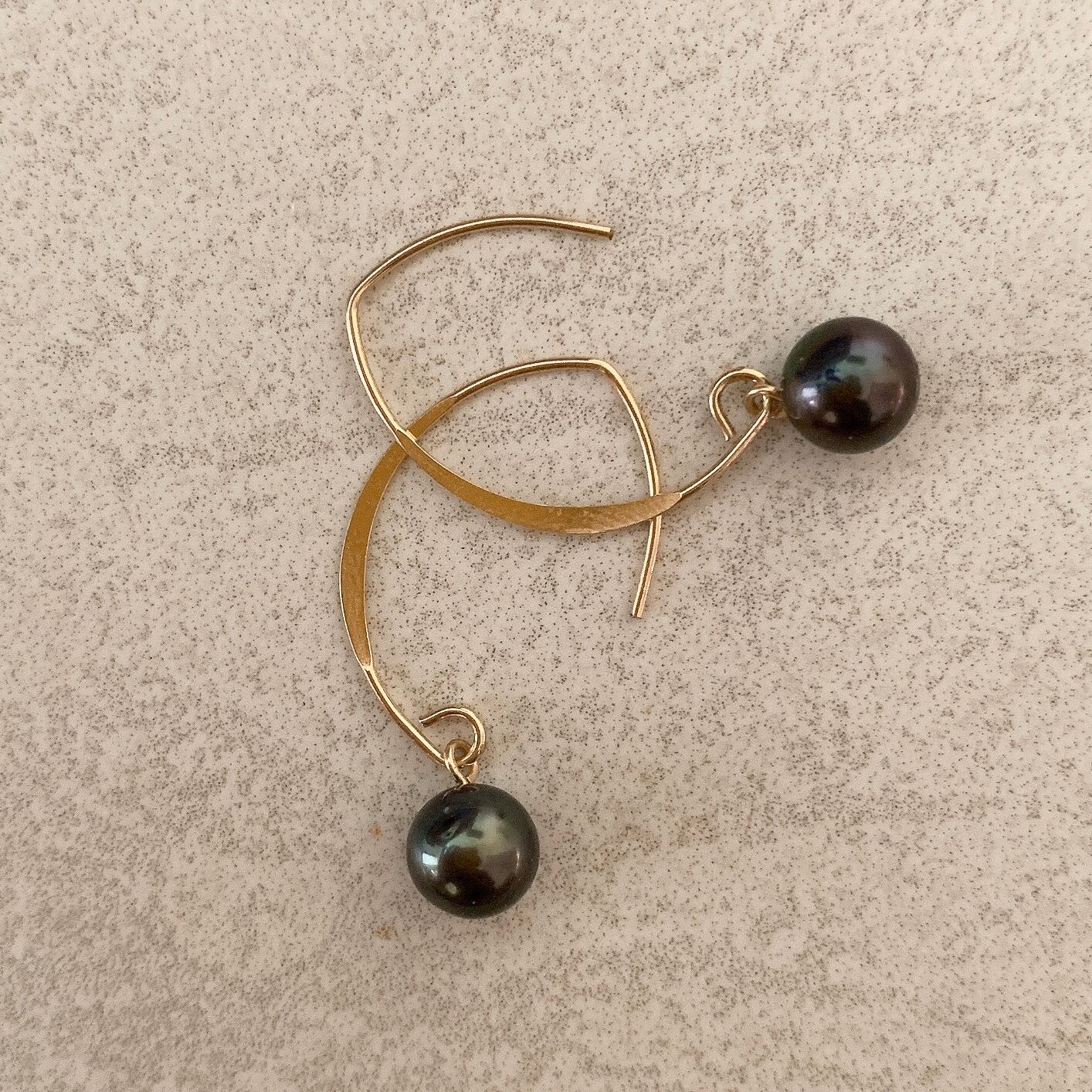 南洋白蝶真珠&タヒチ黒蝶真珠♡Vシェイプピアス【GFE-002】