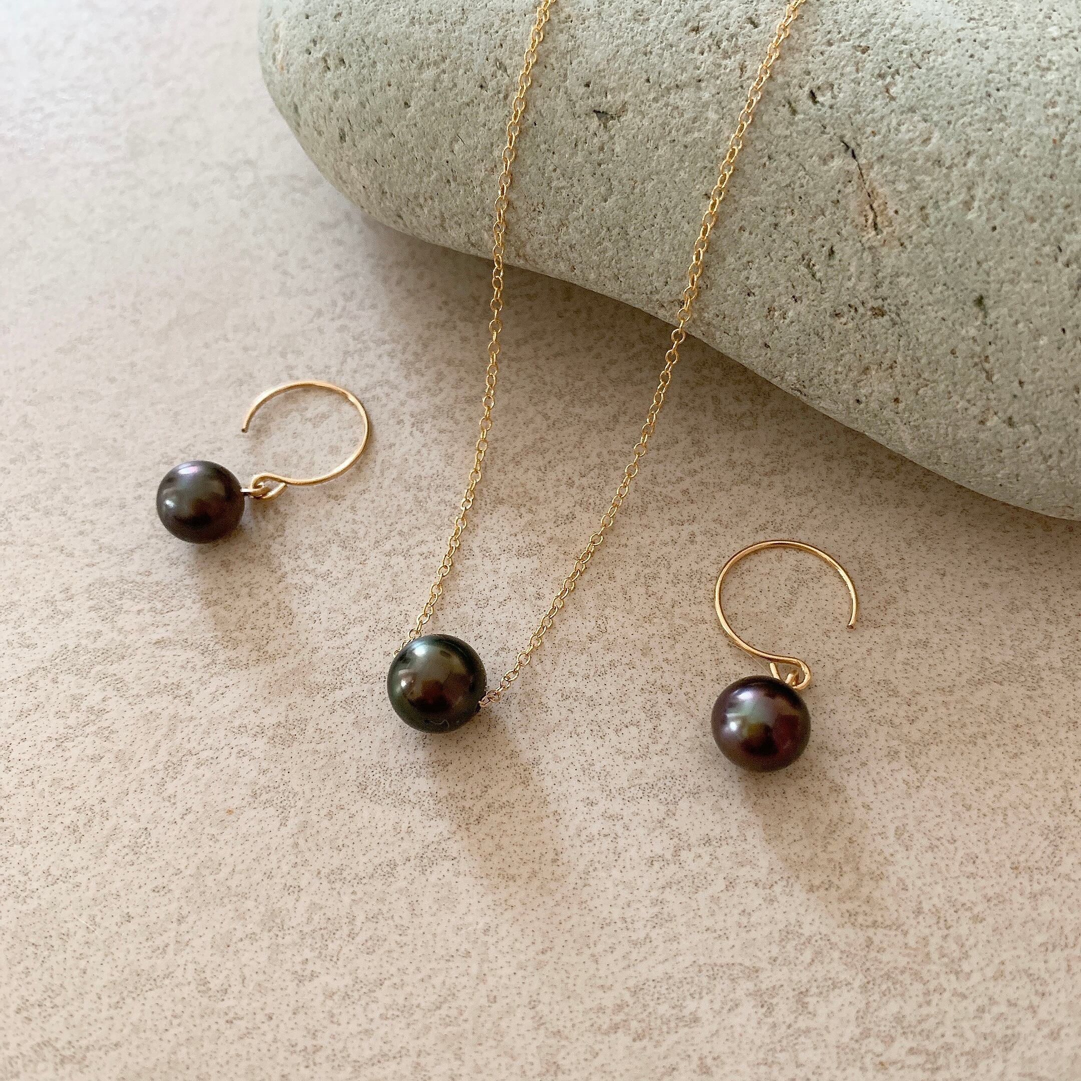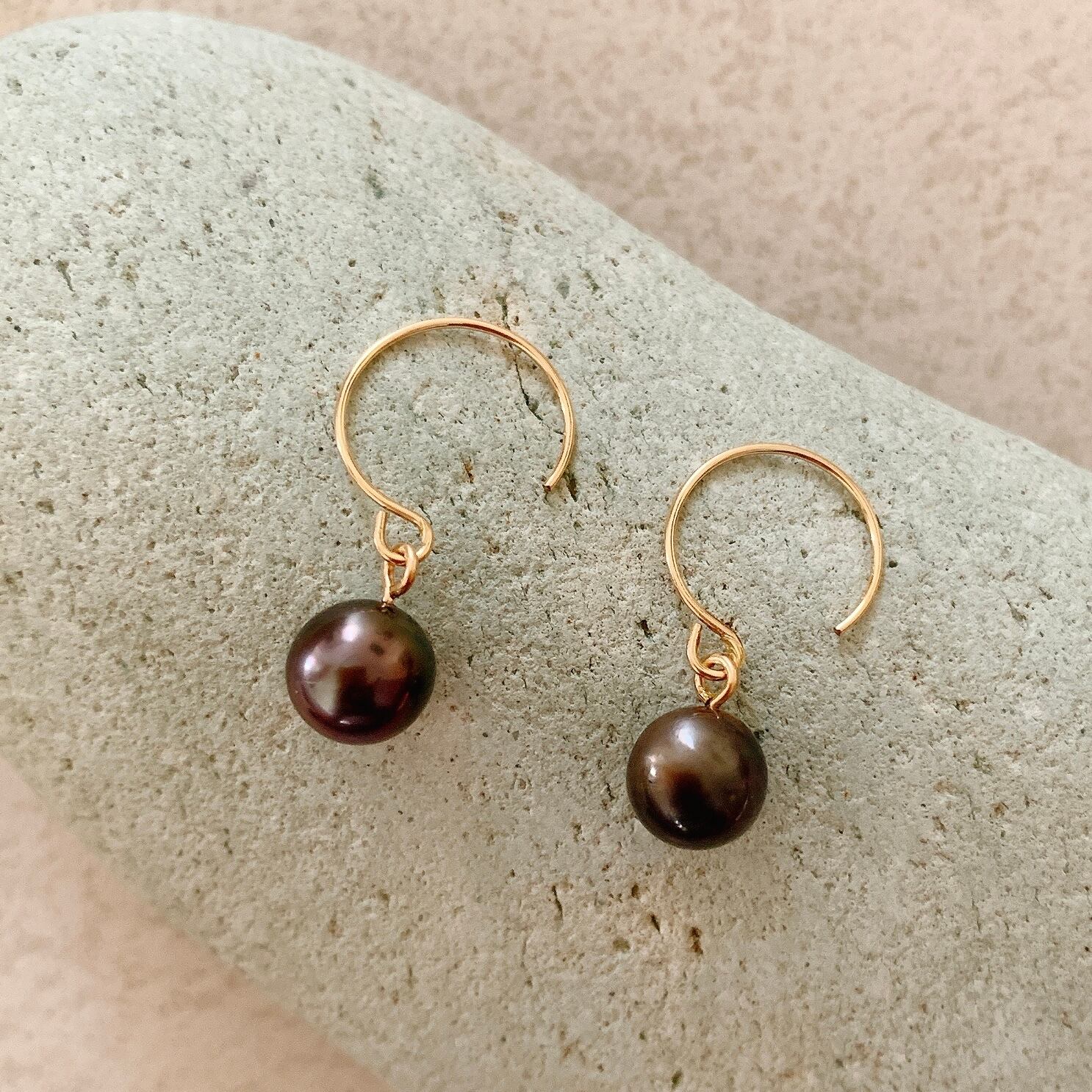 7.5mm漆黒タヒチパール♡14kgfフックピアス 【TGE-003】