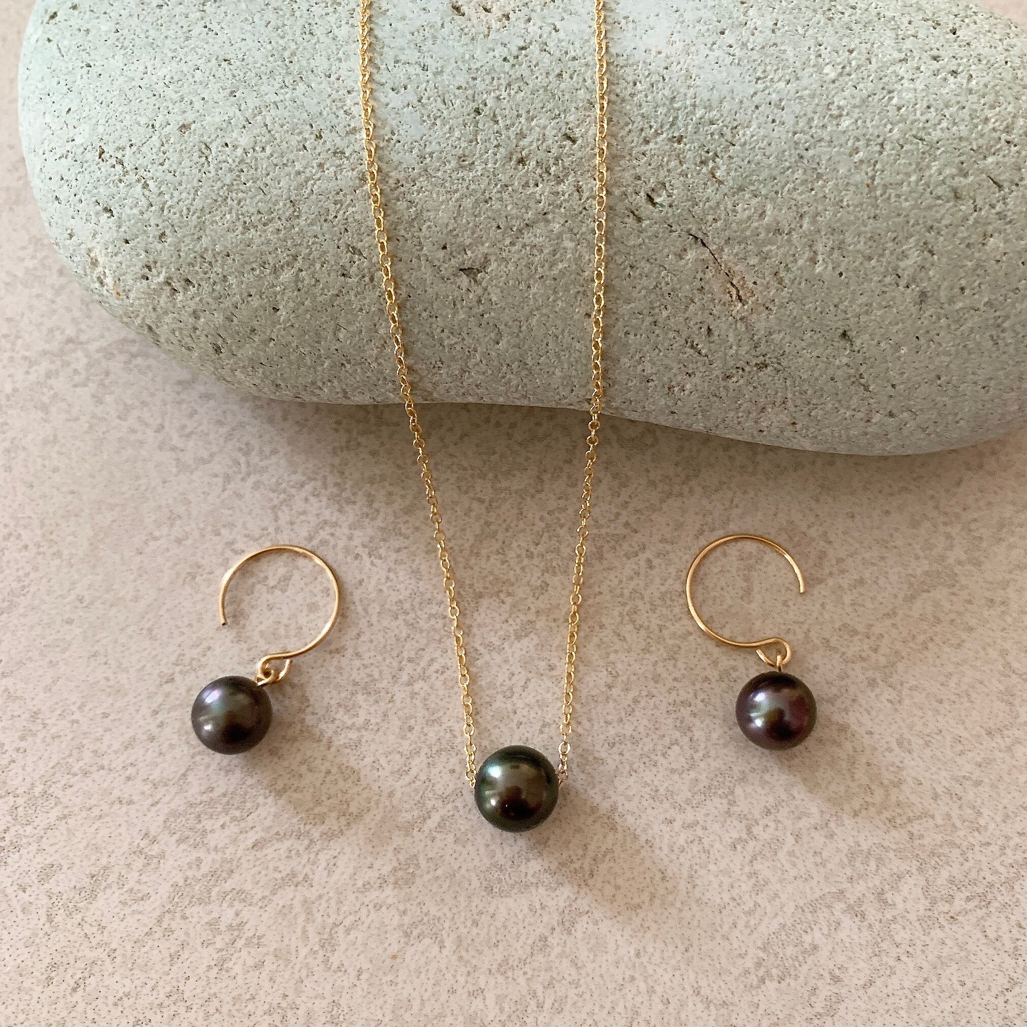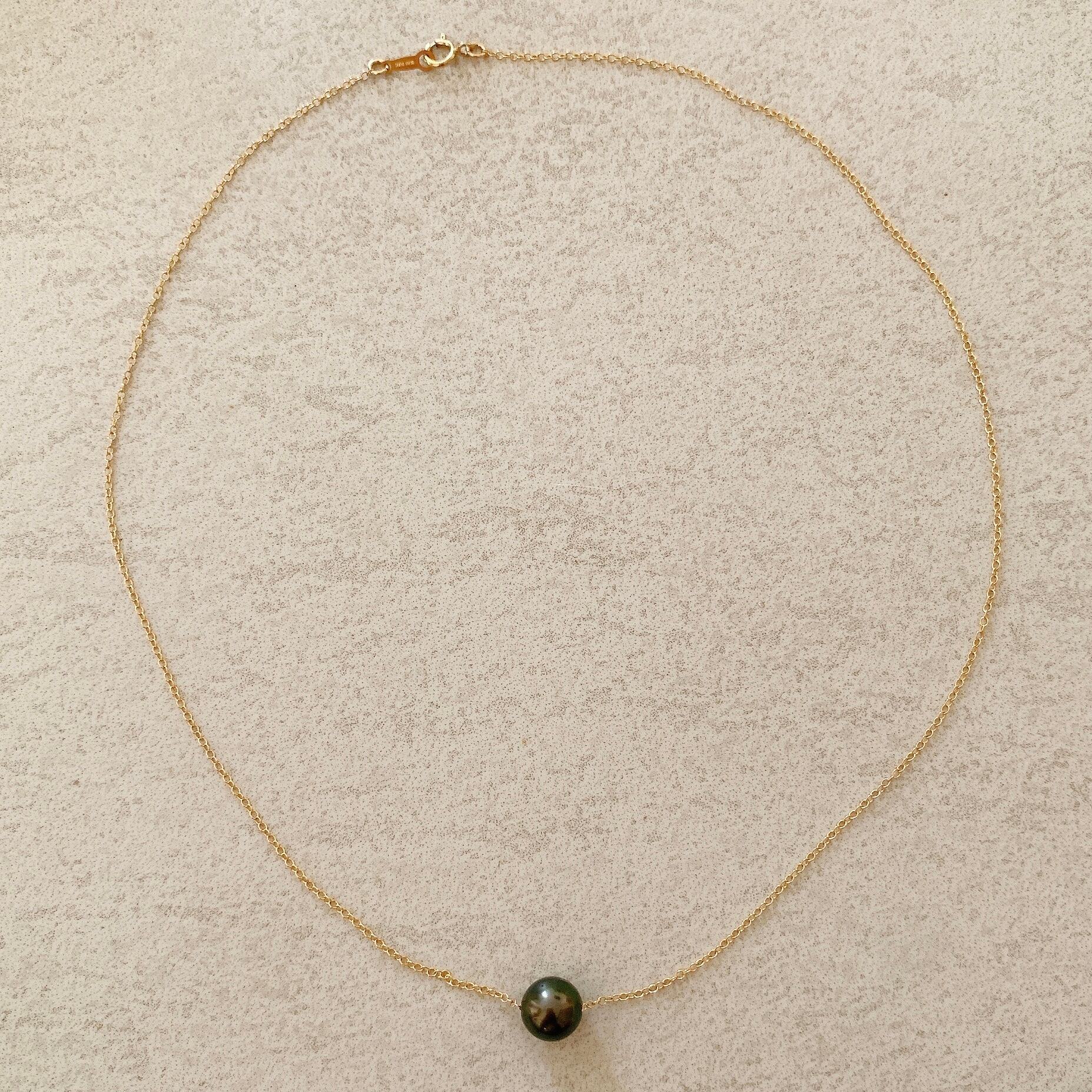 7.9mm漆黒タヒチパール♡14kgfスルーネックレス 【TGP-001】
