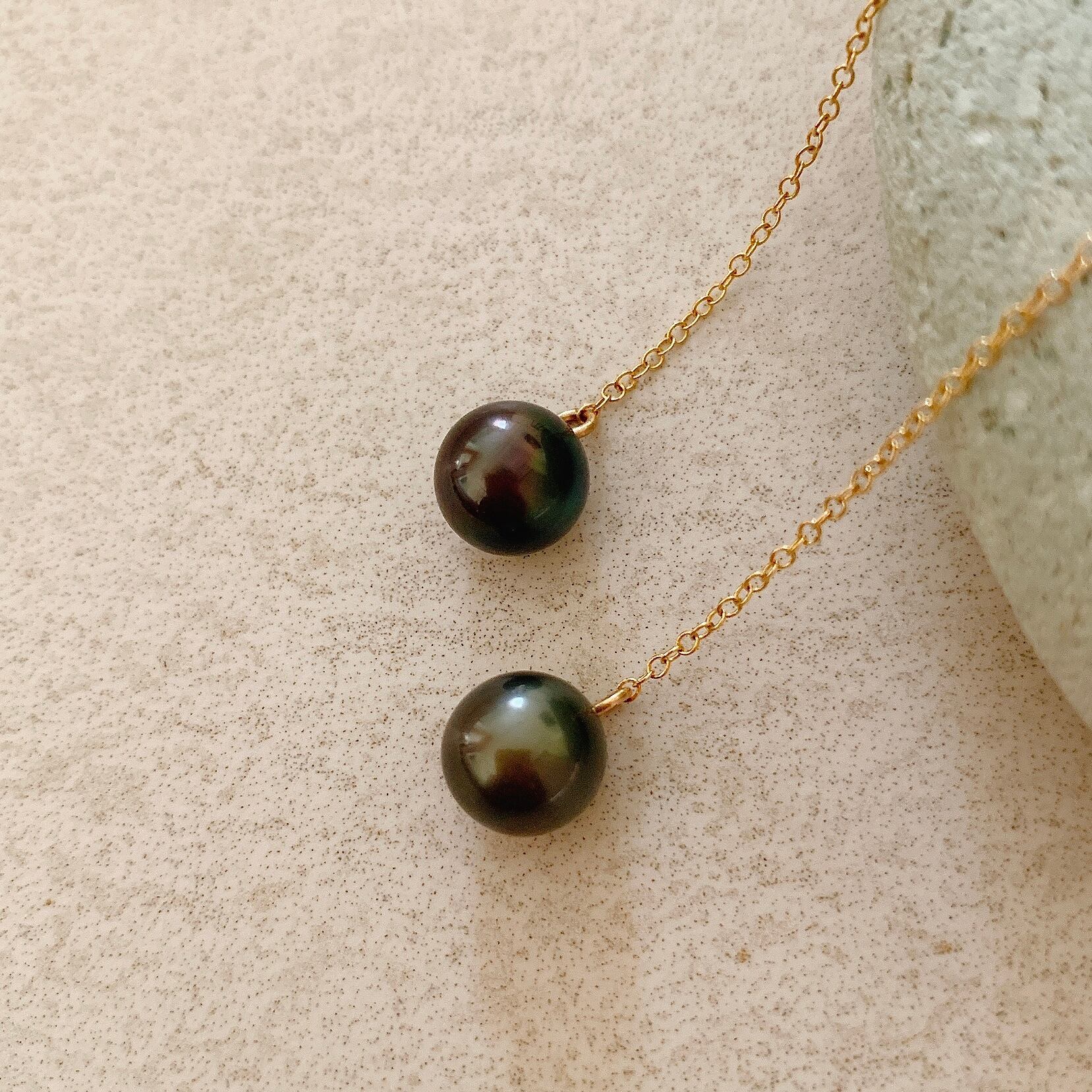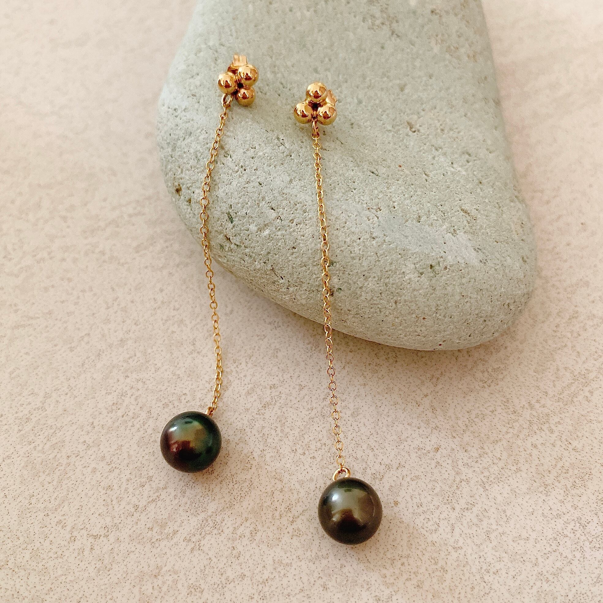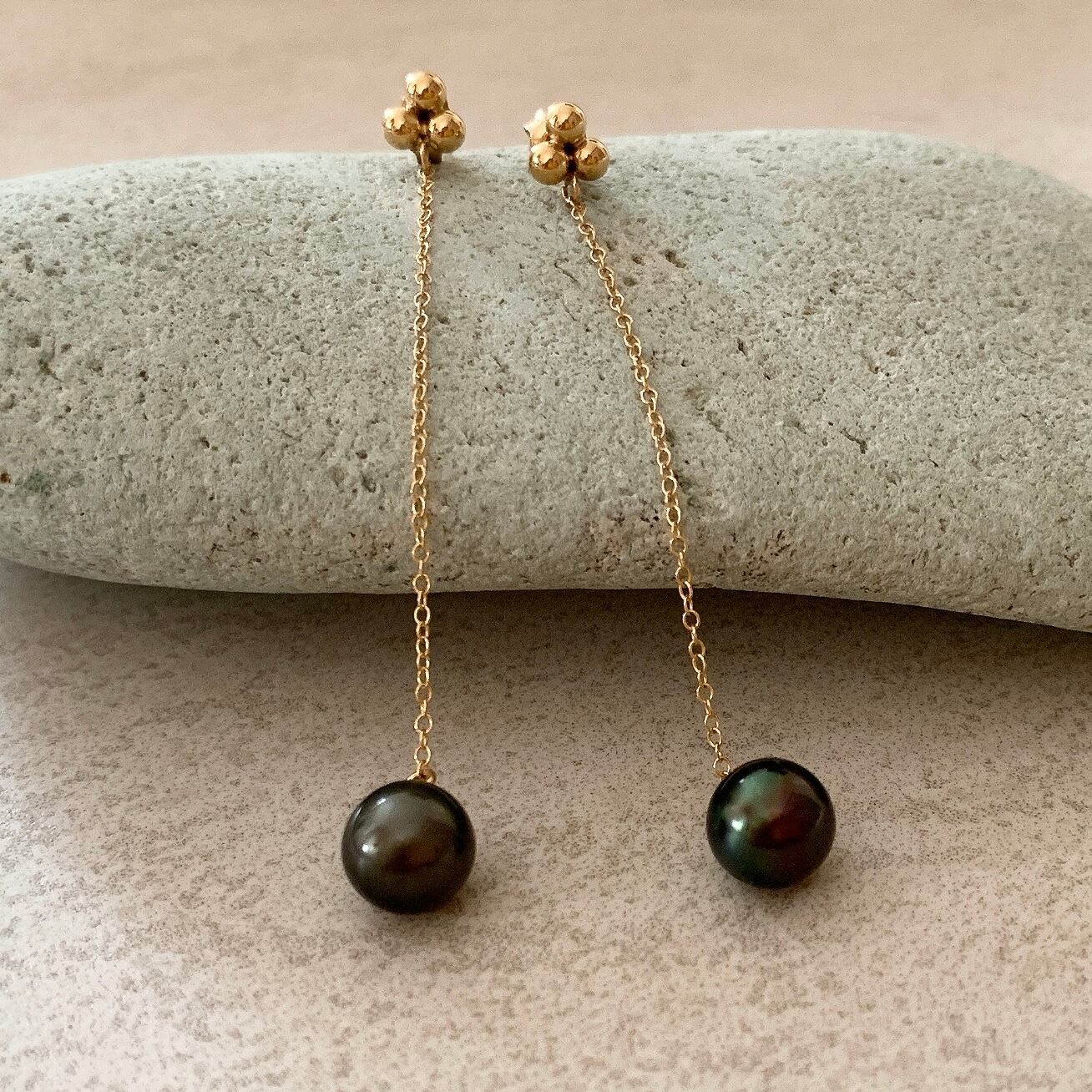 タヒチ黒蝶真珠ロングチェーンピアスです✨