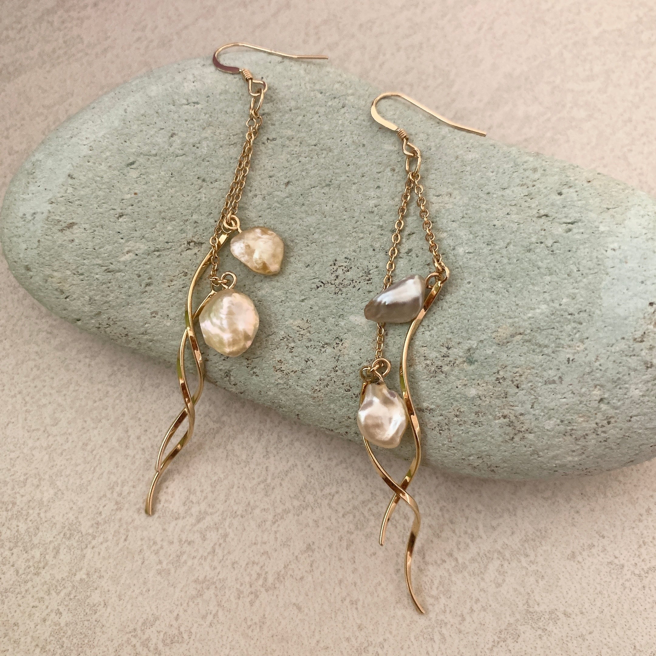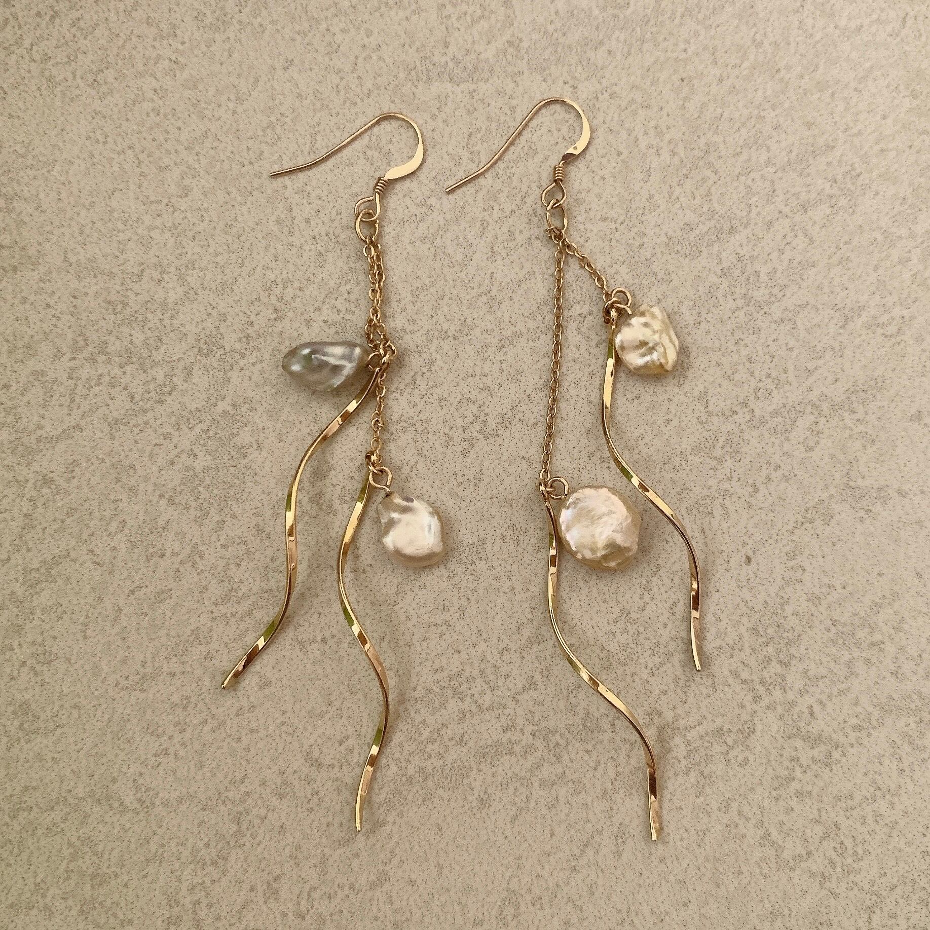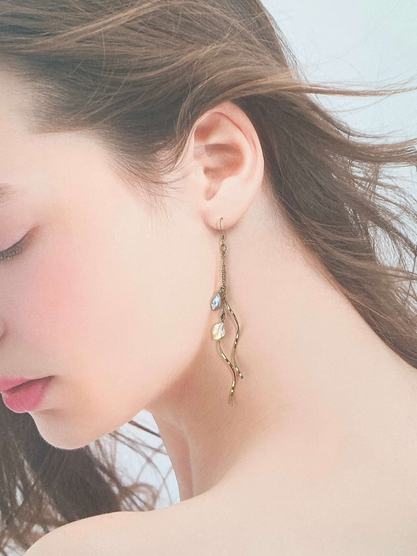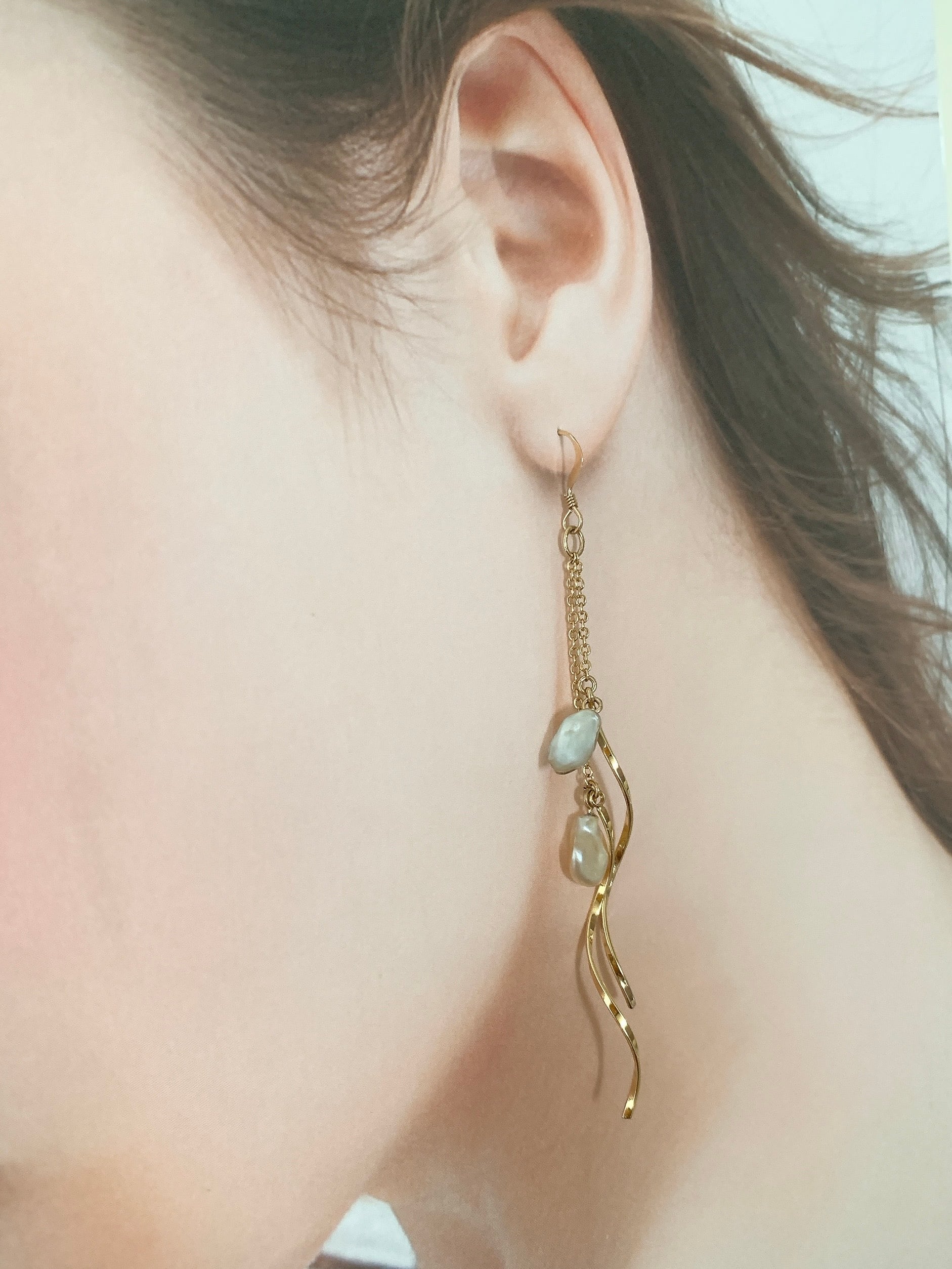 耳元ゆらゆらケシパールのロングピアス♡