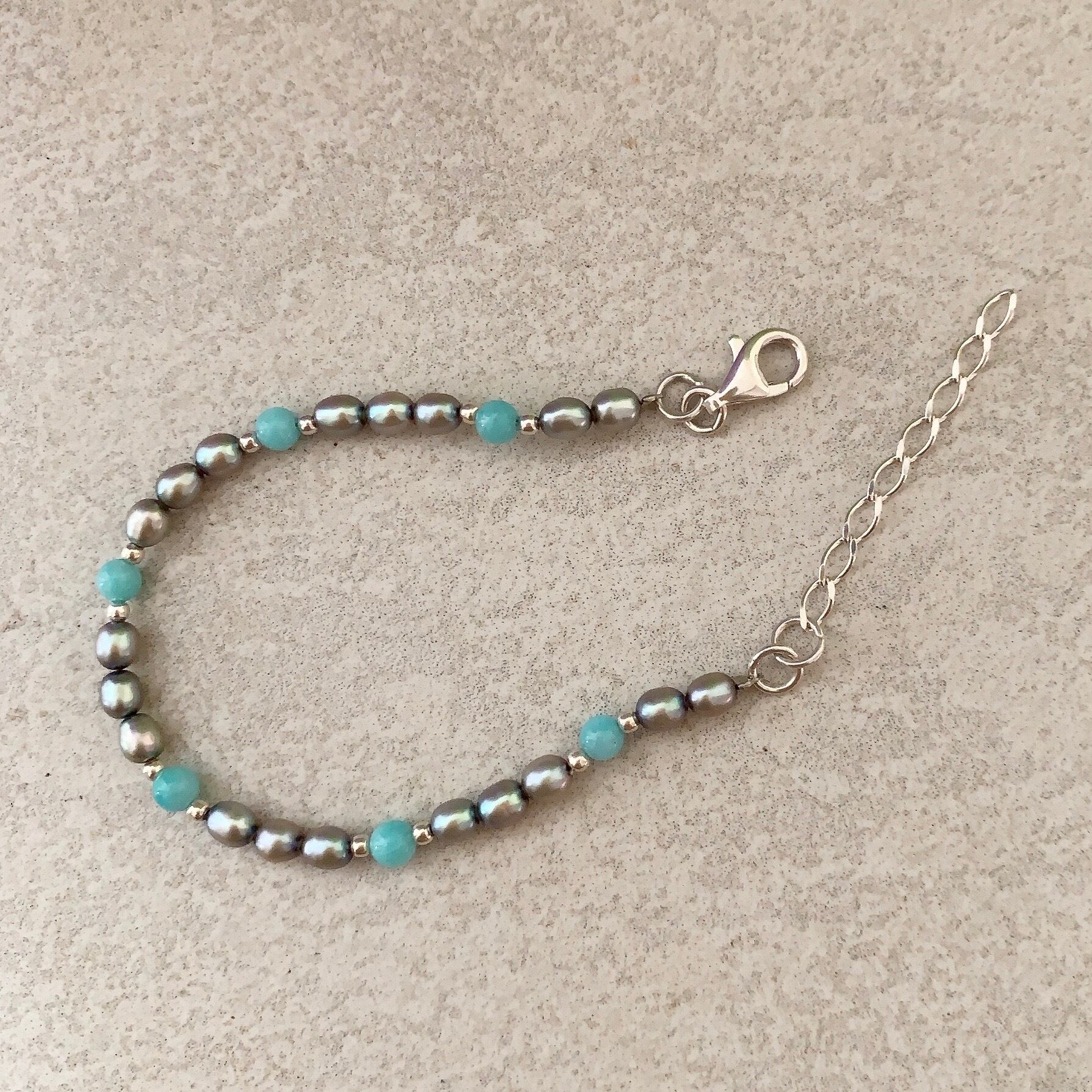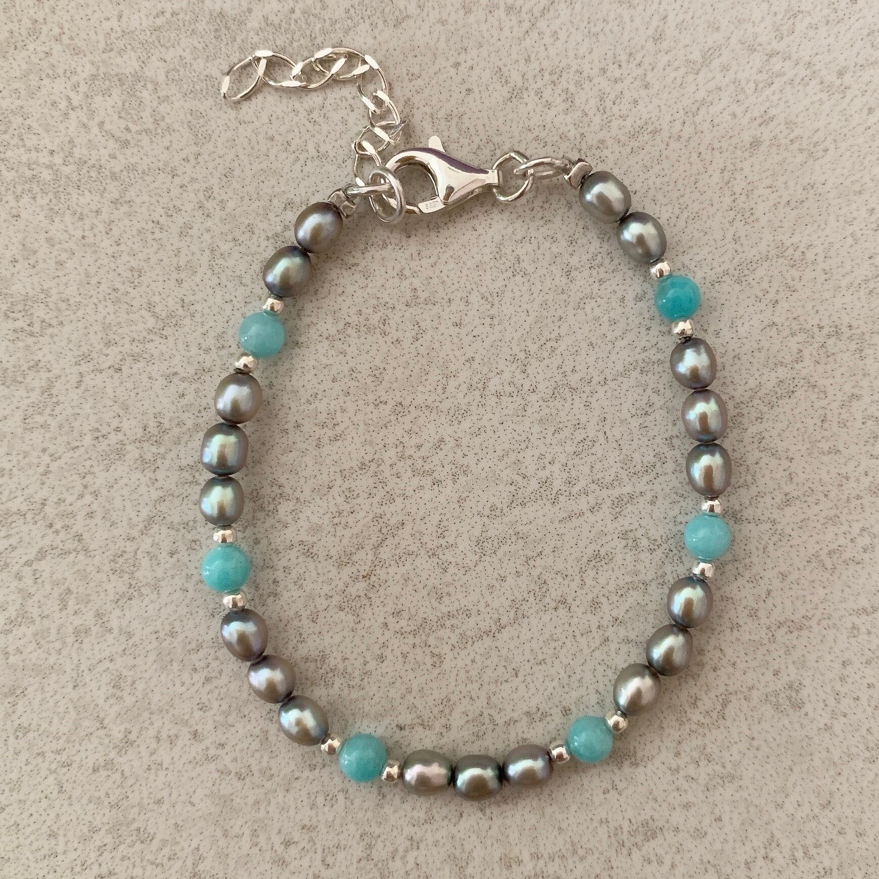 アマゾナイト+シルバーブラックパールのブレスレット【TPB-002⠀】