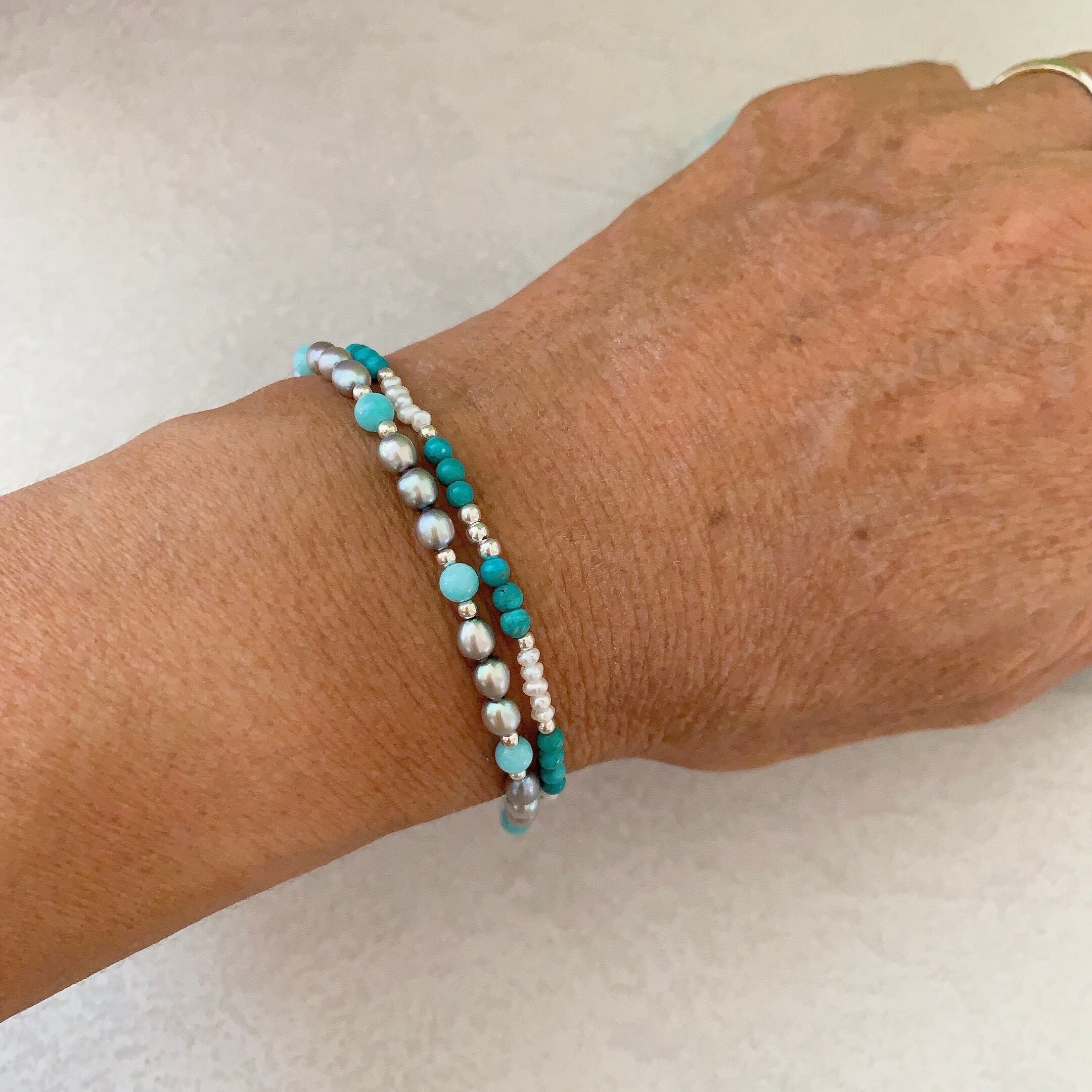 ターコイズ+ベビーパールのブレスレット【TPB-004】と