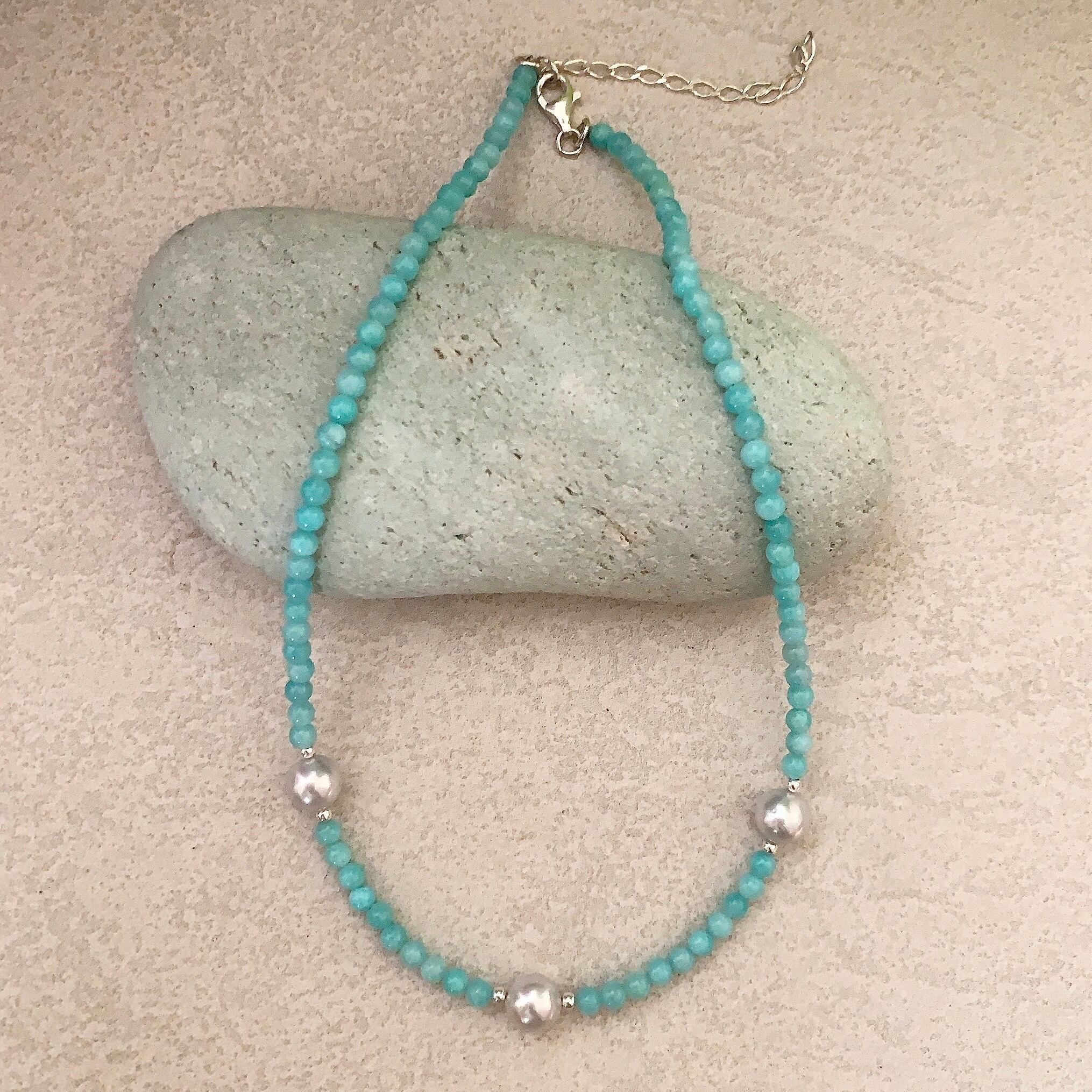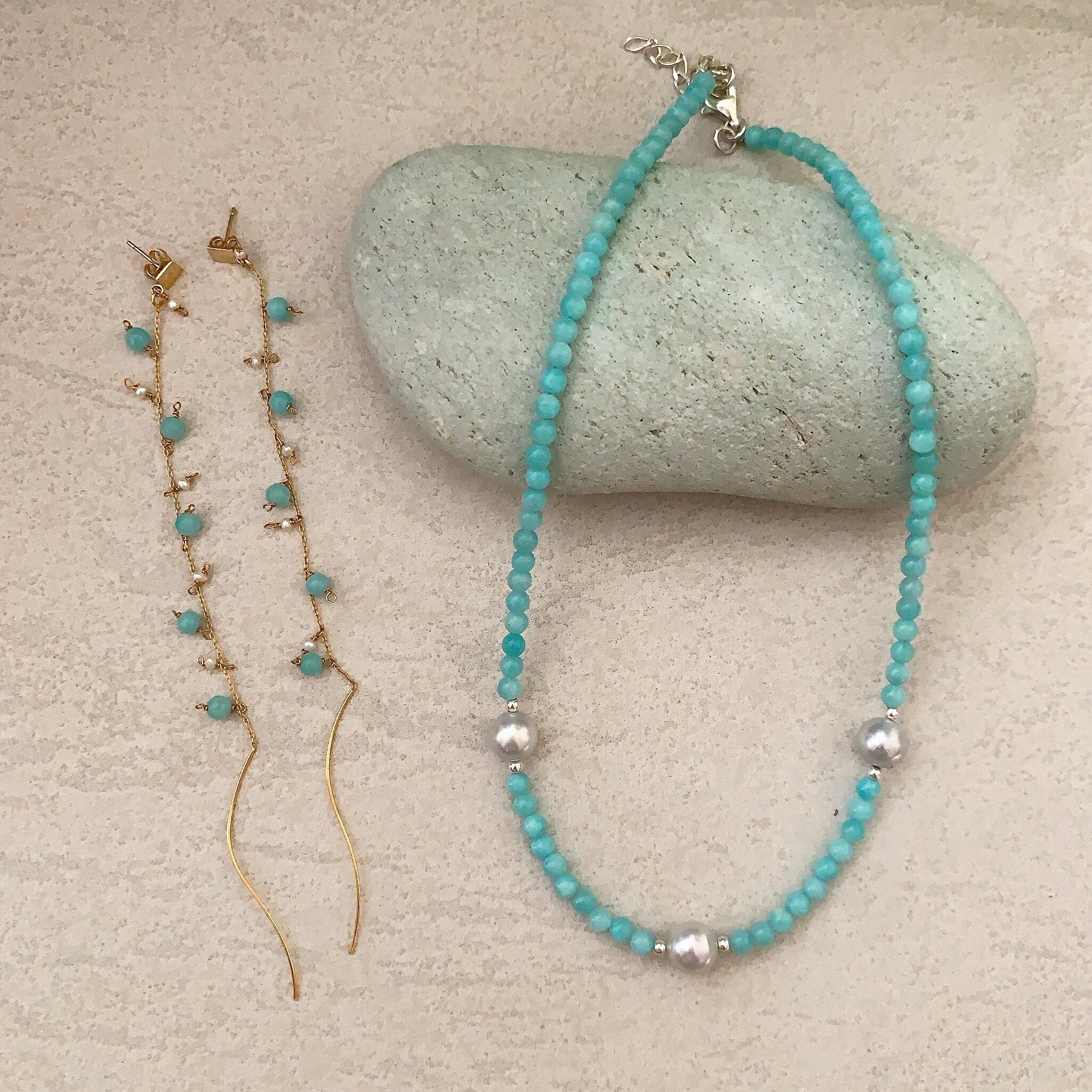 アマゾナイトと南洋白蝶真珠が織りなす
