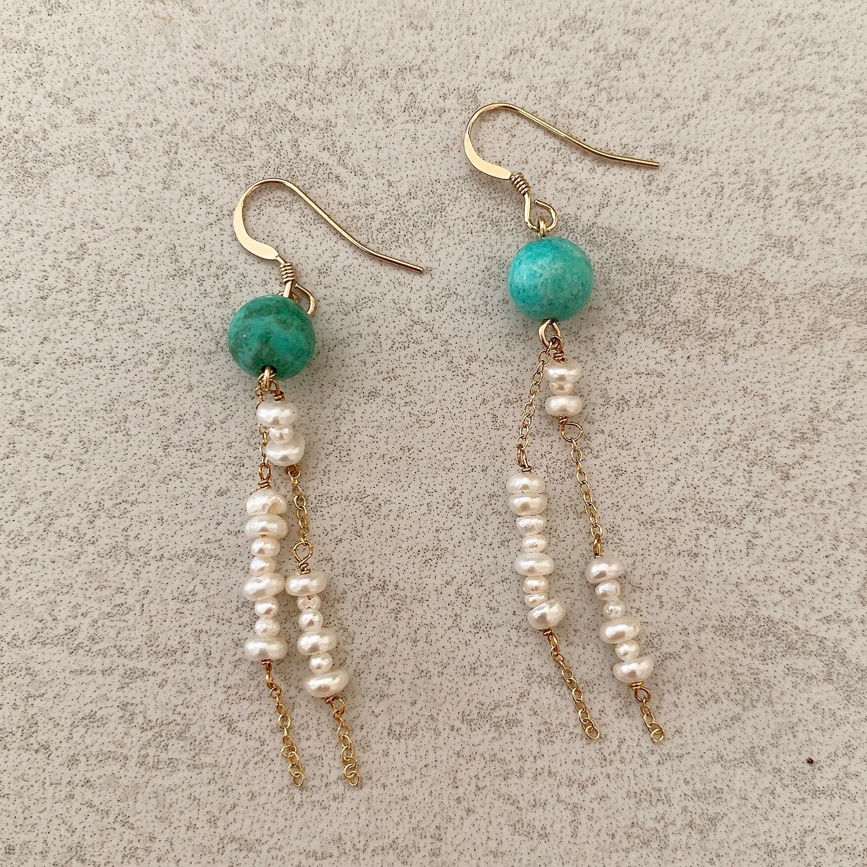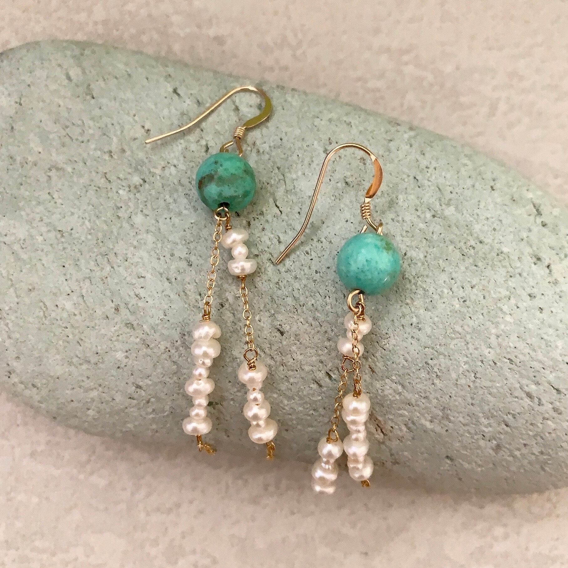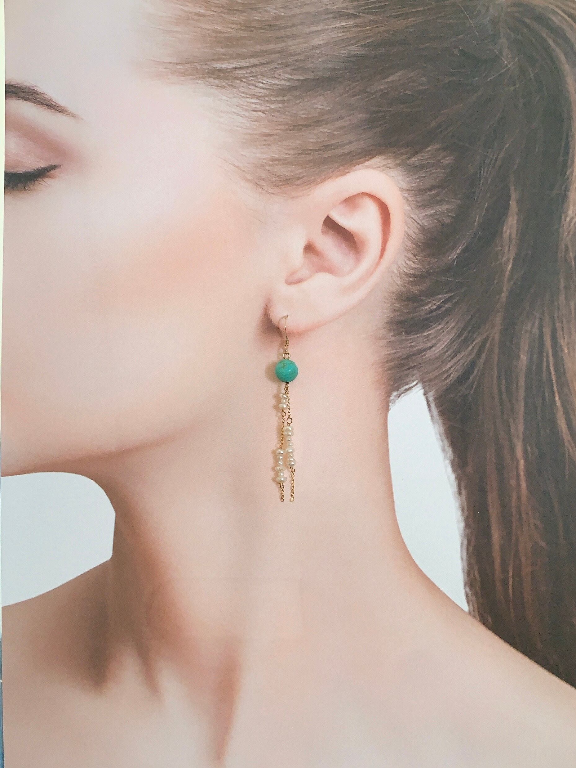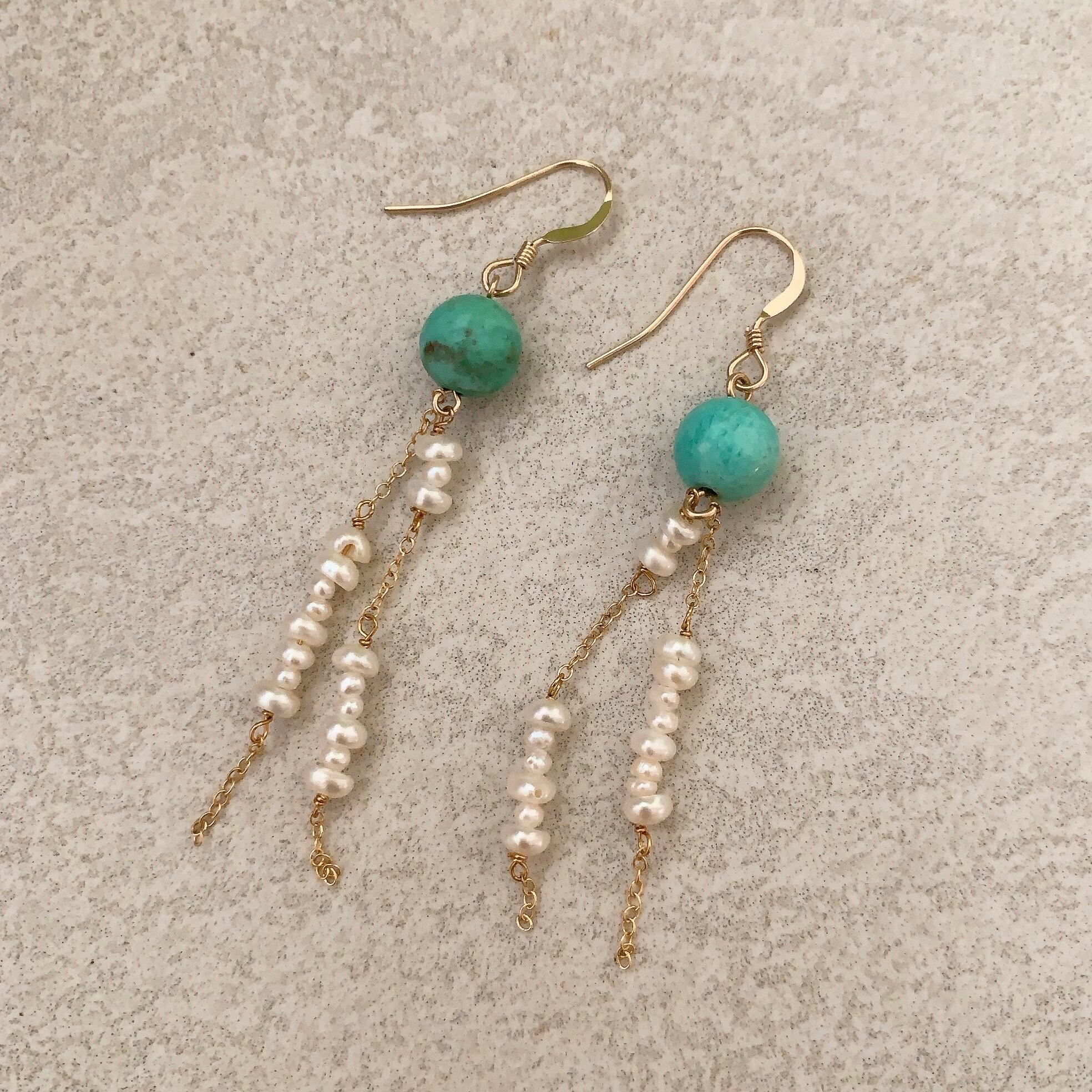 ターコイズ+ベビーパールのゴールドフィルドフックピアス【TPE-004】
