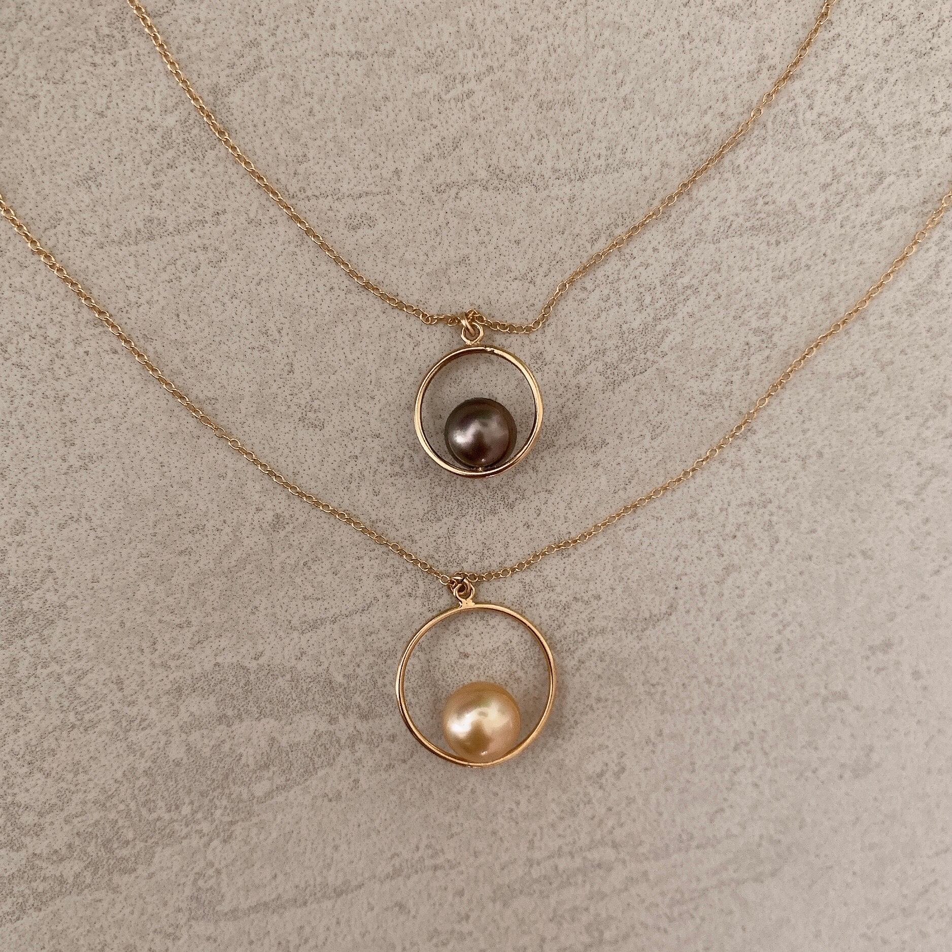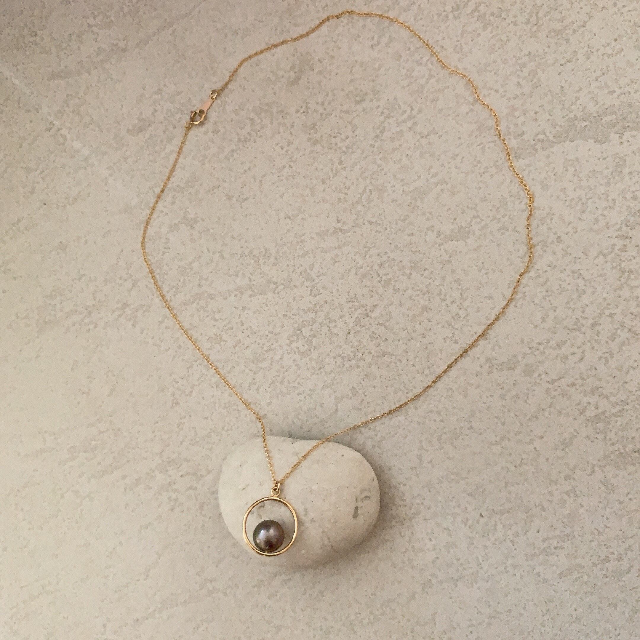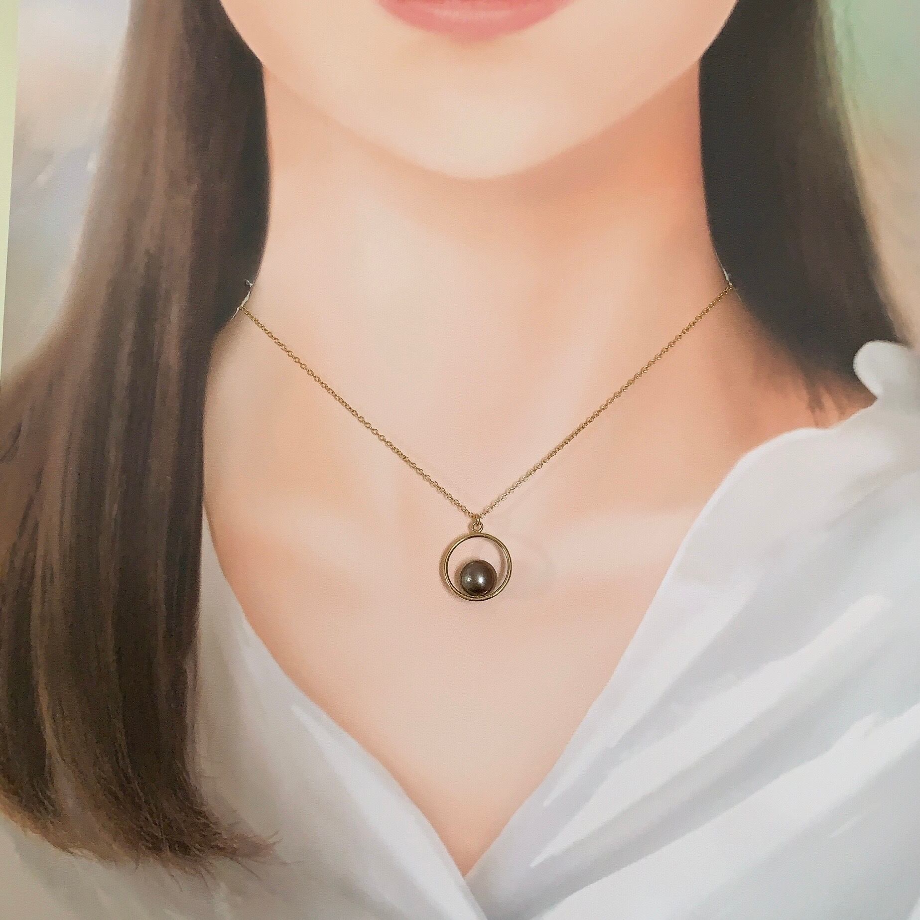 タヒチ黒蝶真珠まんまるペンダント♡14kgf(42cmチェーン付)【TGP-002】