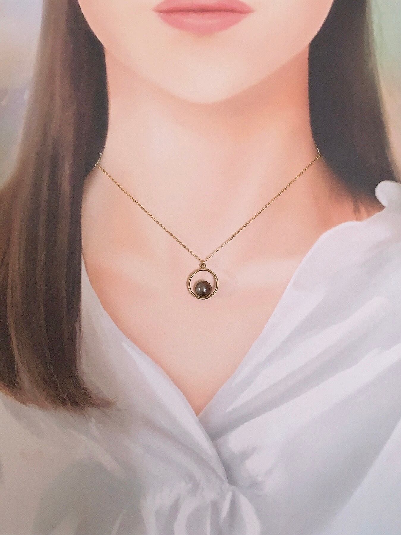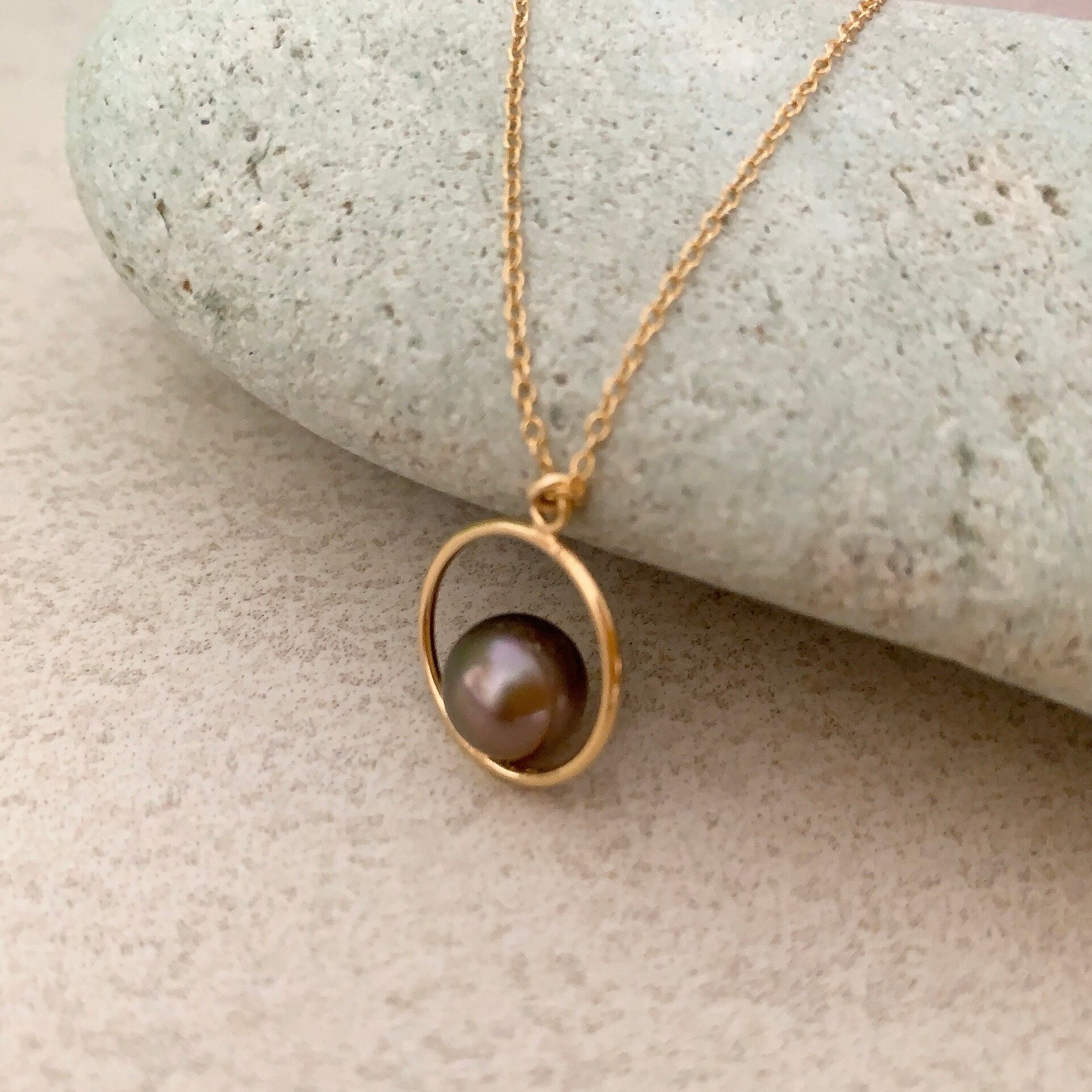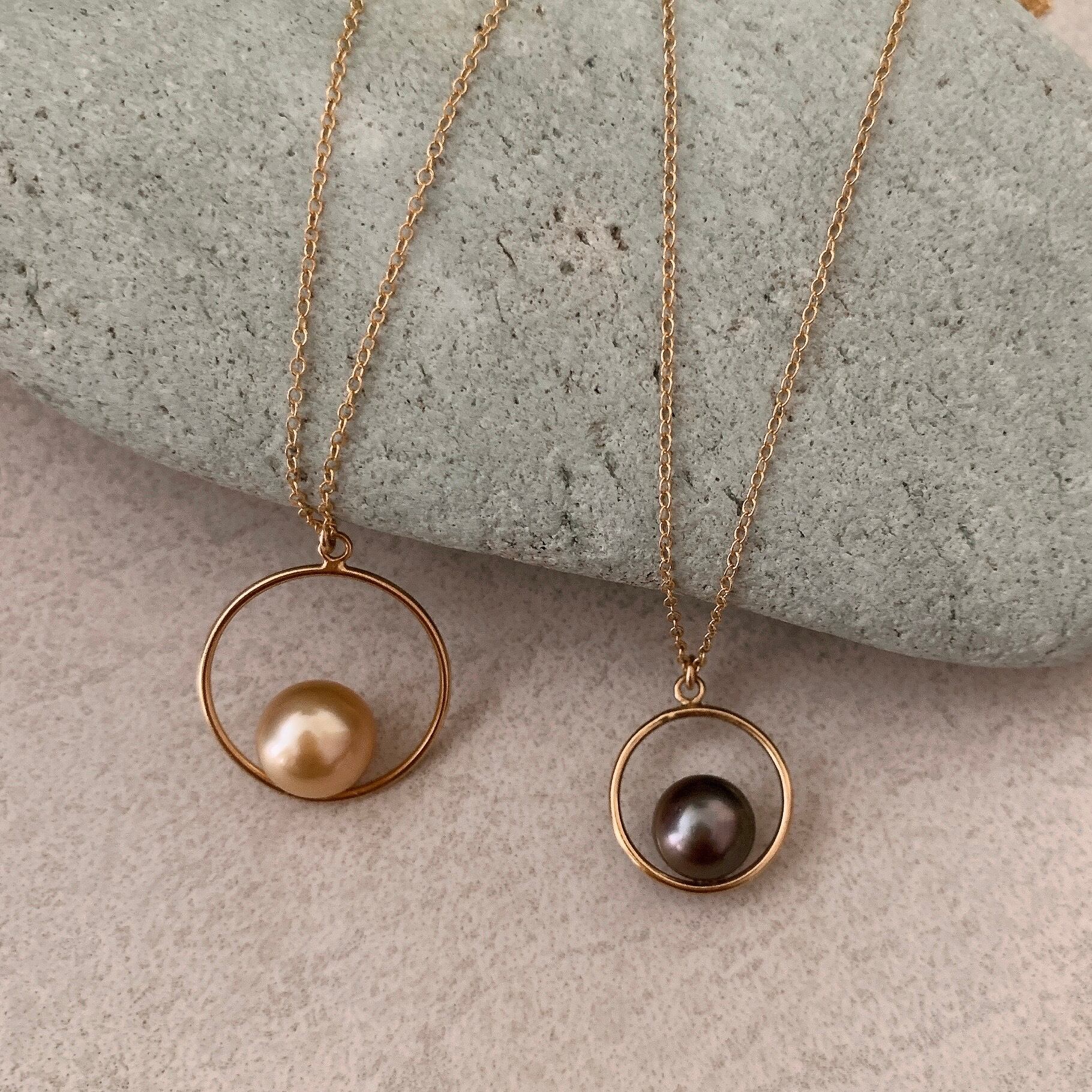 タヒチ黒蝶真珠まんまるペンダント♡14kgf(42cmチェーン付)【TGP-002】