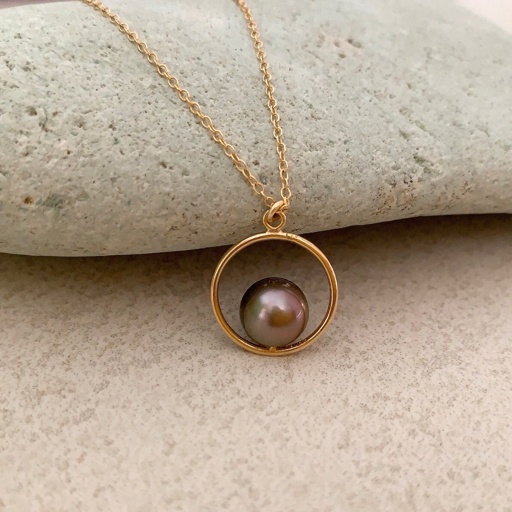 ブラウンが少し入った照り良く綺麗な真珠です。