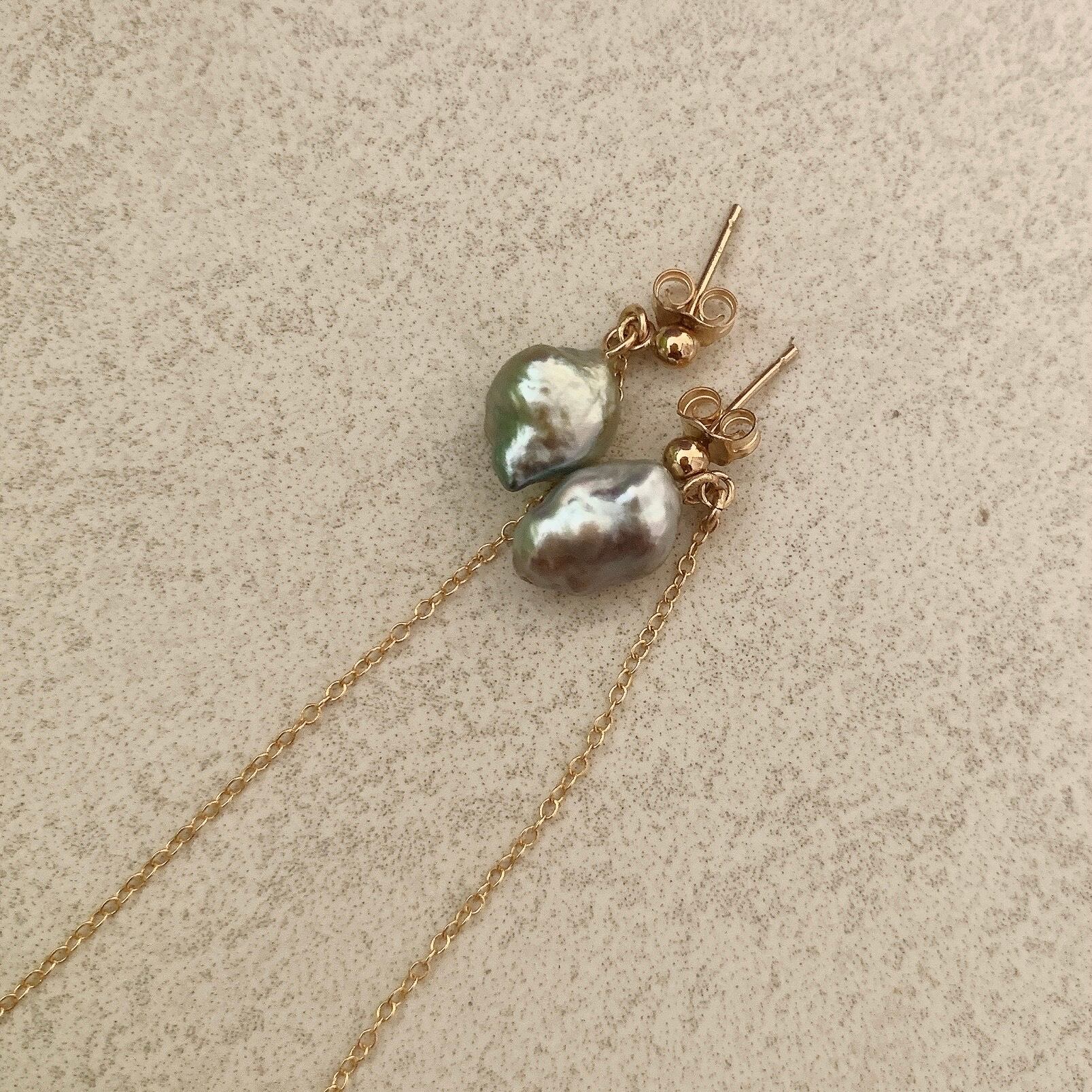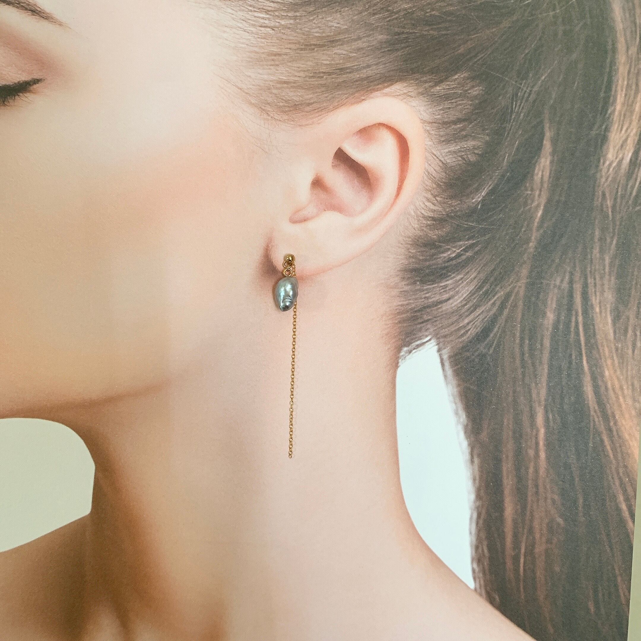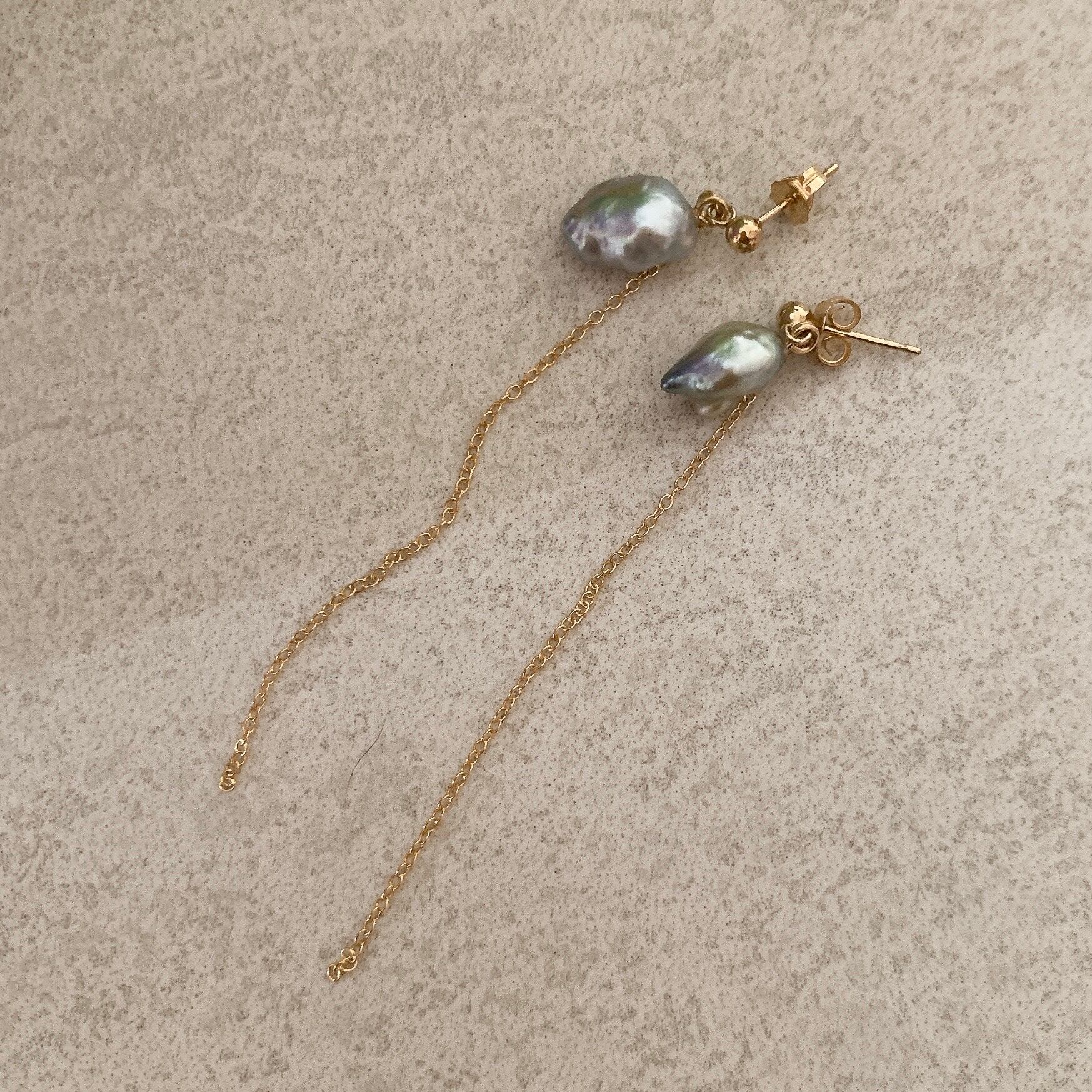 メタリックシルバーケシパール+ロングチェーン♡ピアス 【GFE-051】