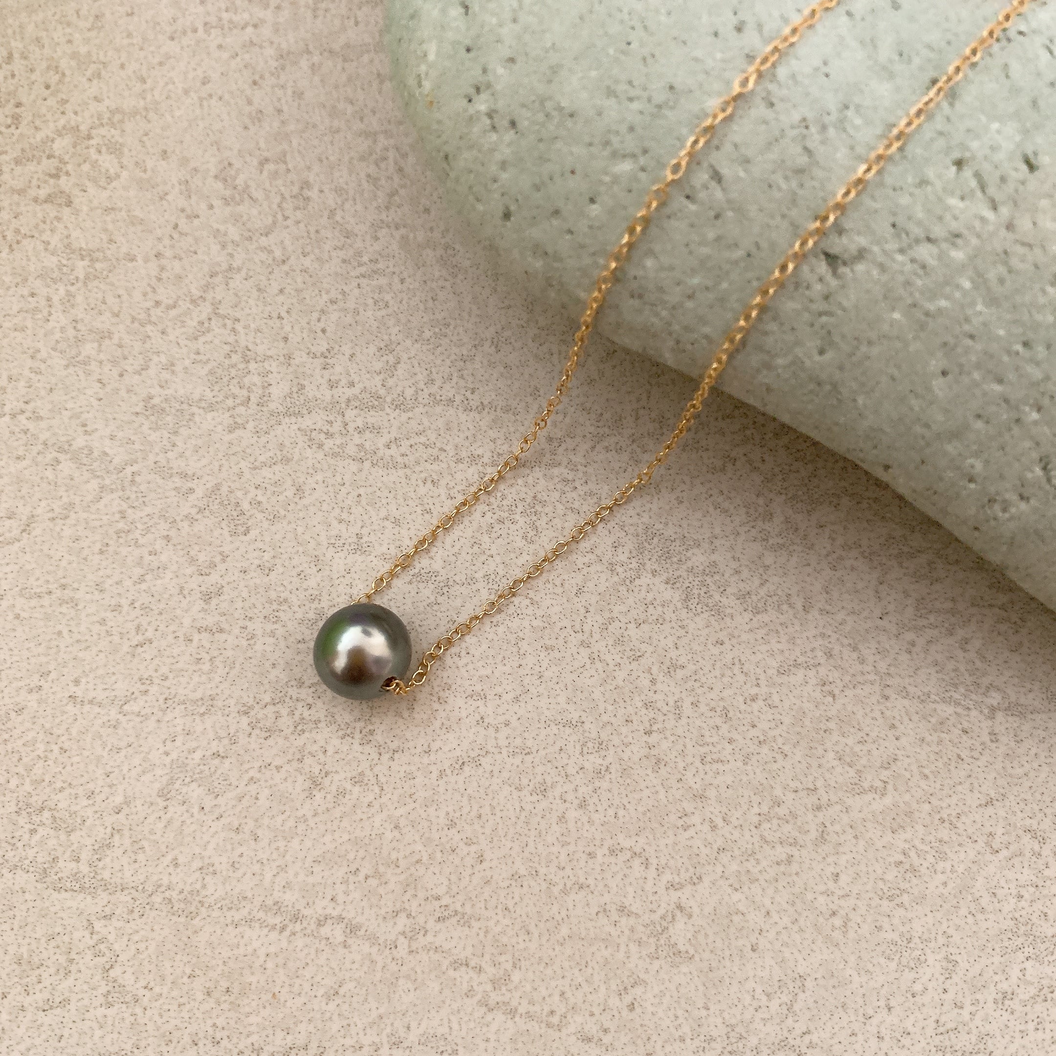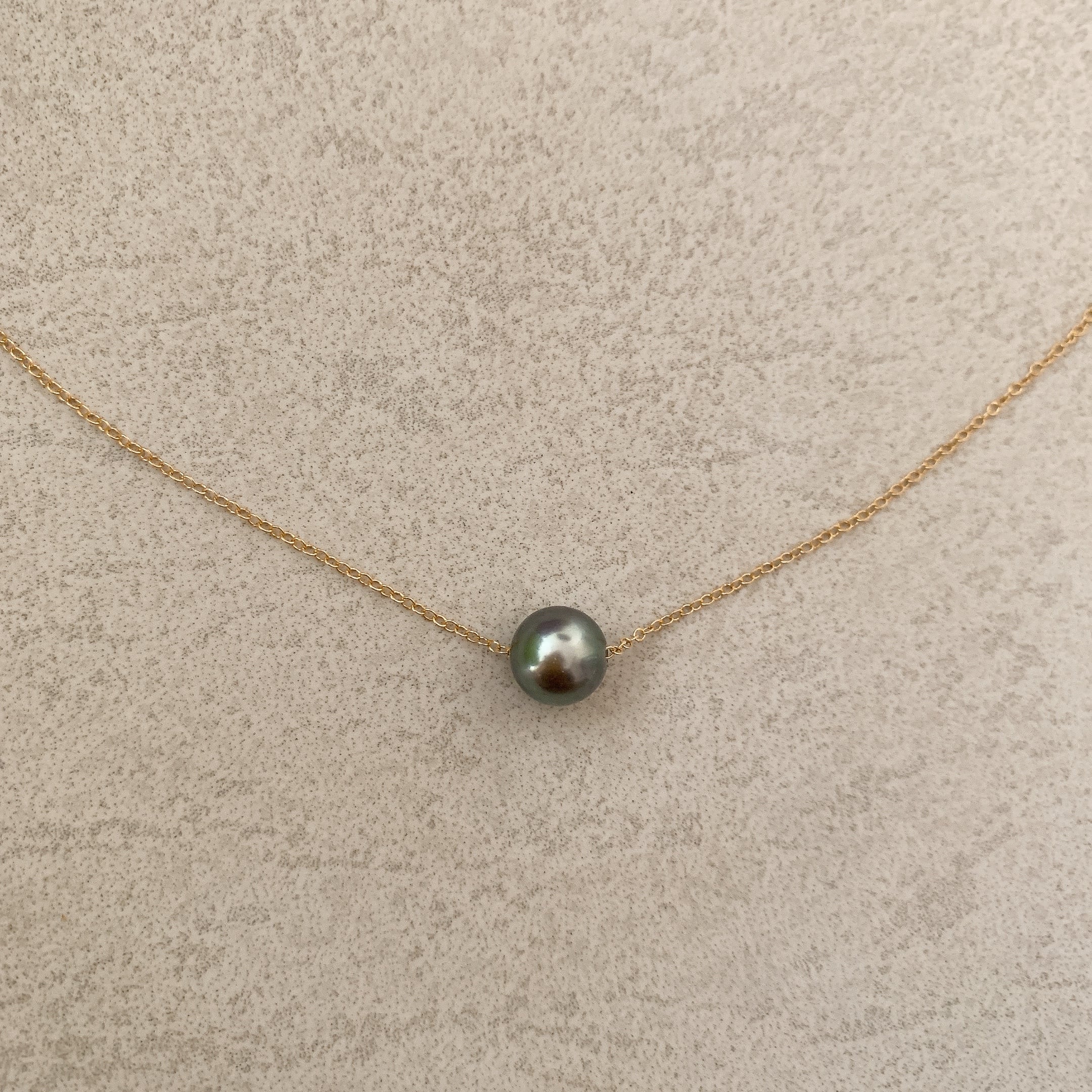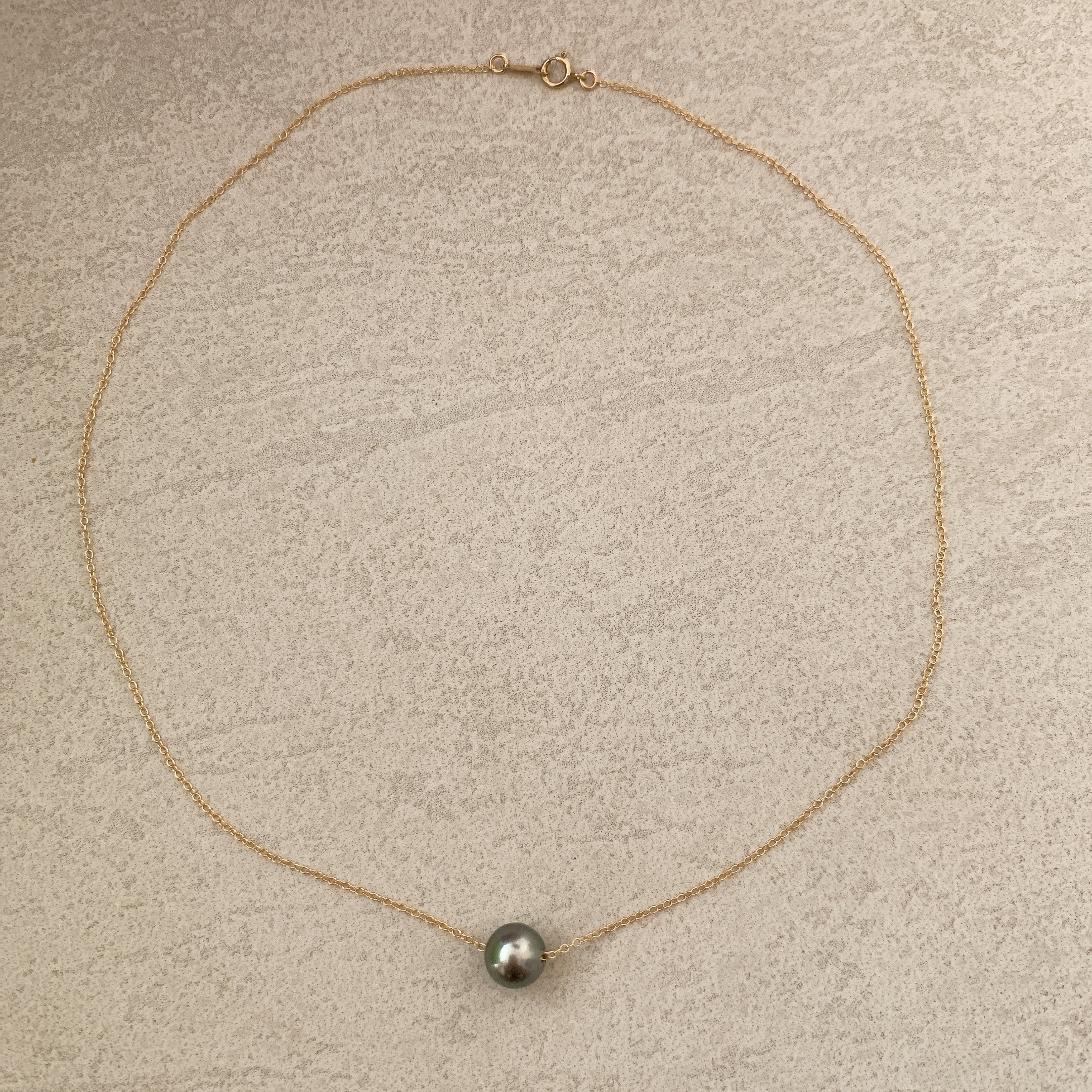 8.6mmタヒチブラックパール♡14kgfスルーネックレス 【 TGP-004】