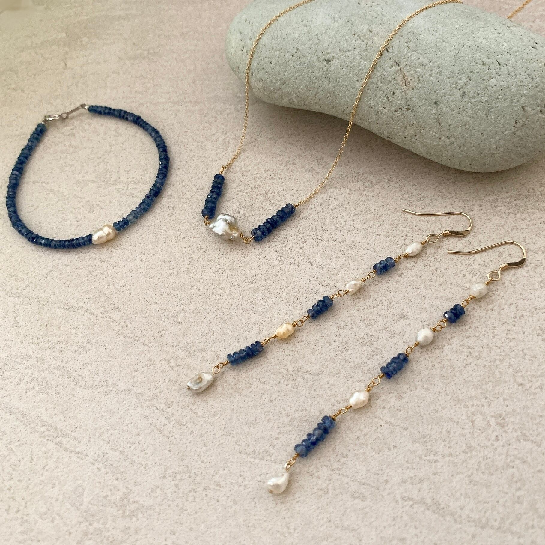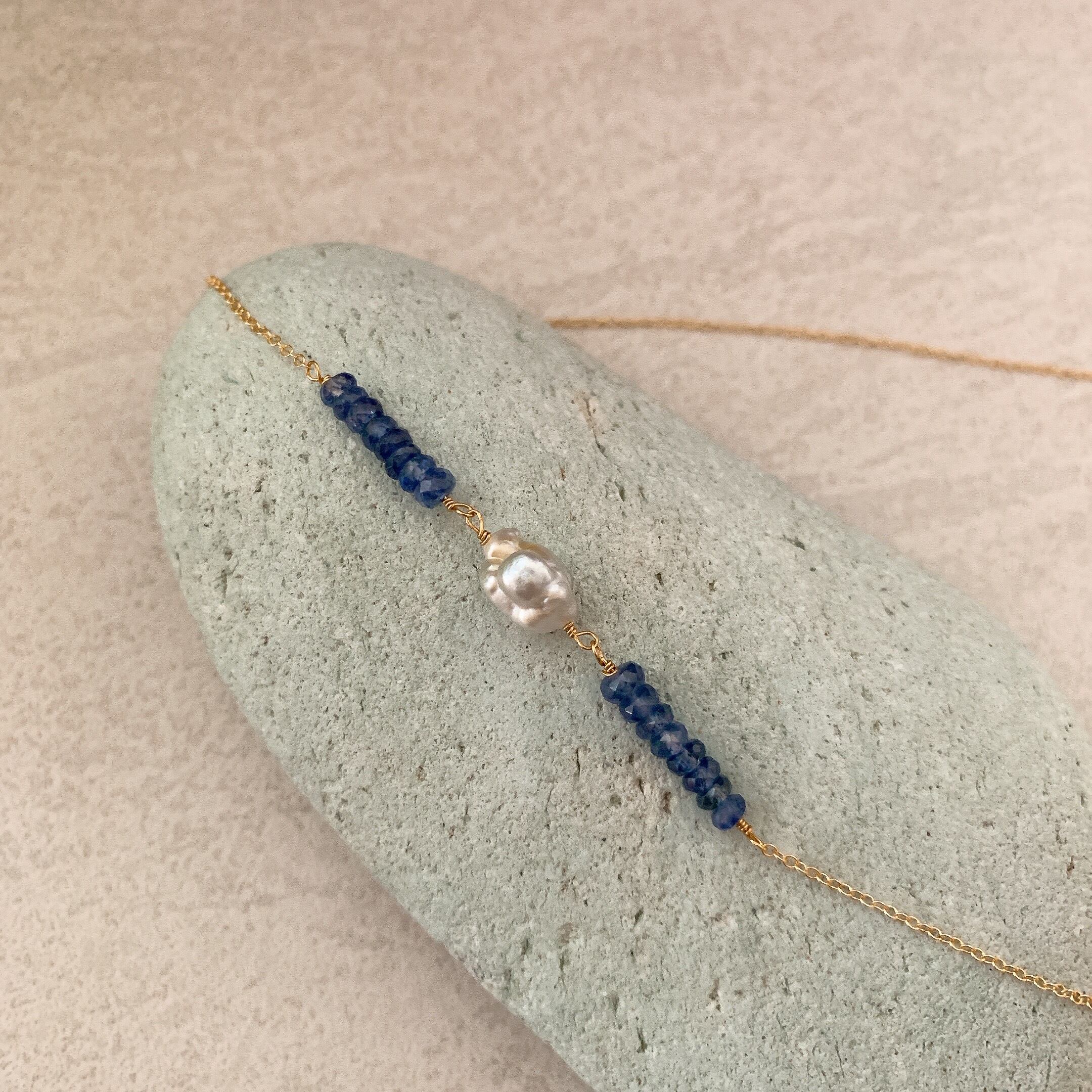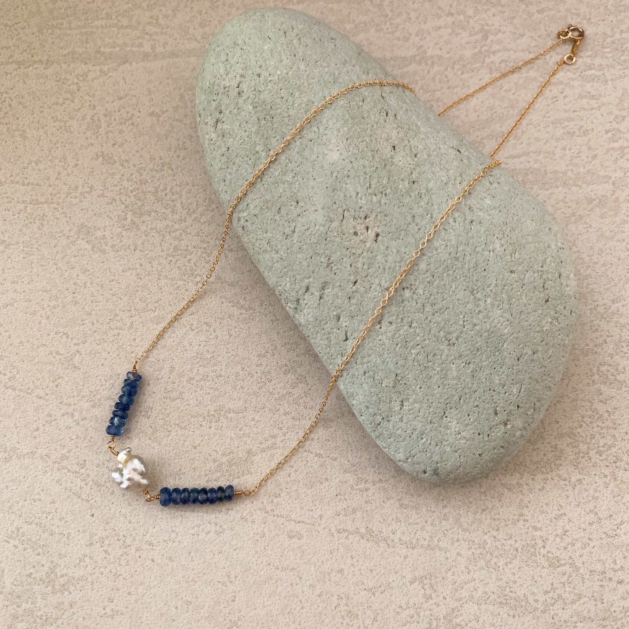 ケシパールとサファイアビーズのネックレスです。