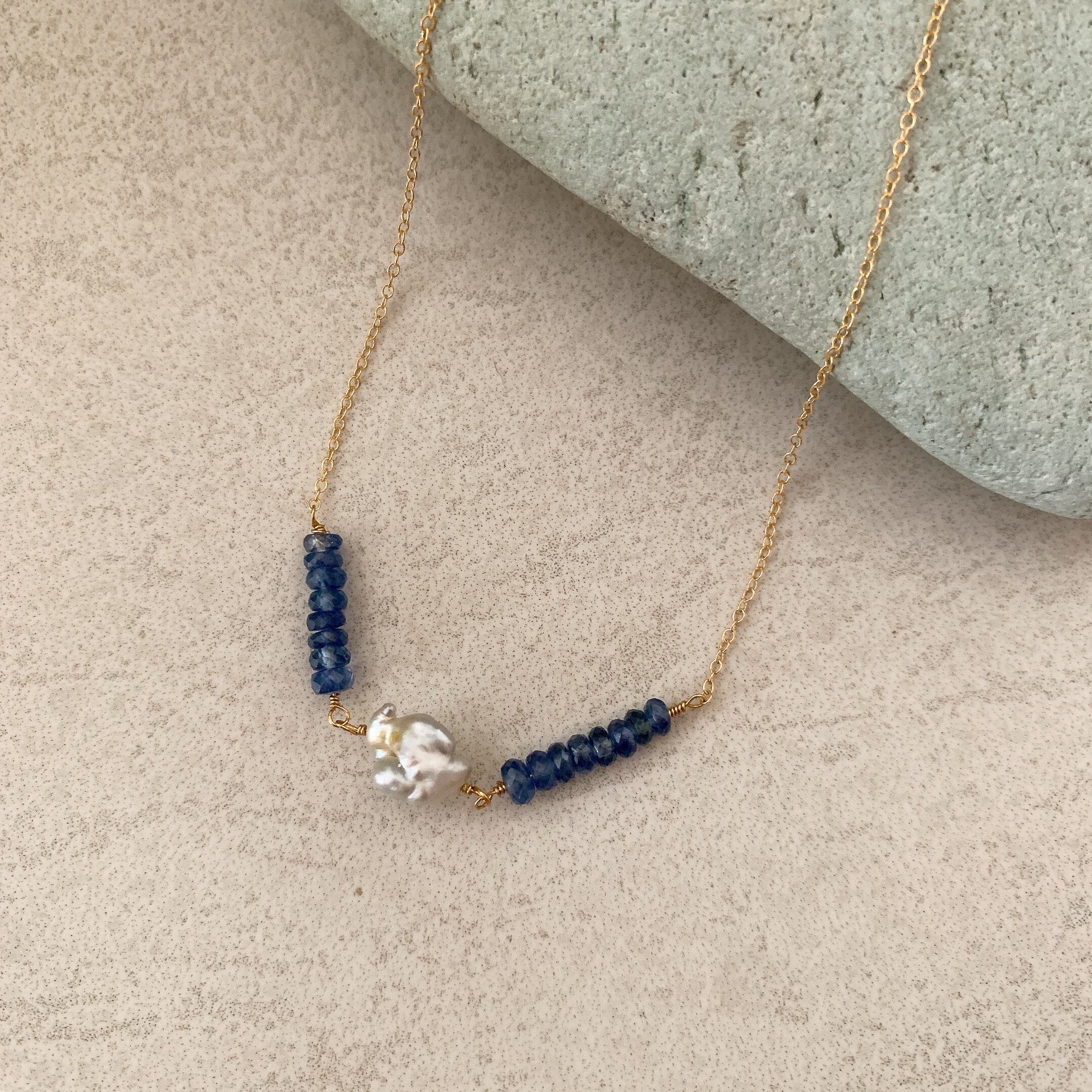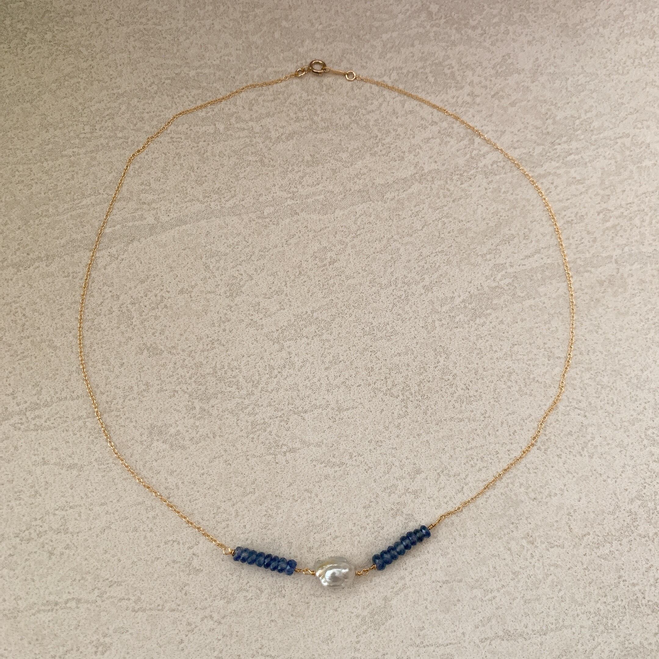 美しいケシパールとサファイアビーズのキュートなネックレス 【GFP-002】