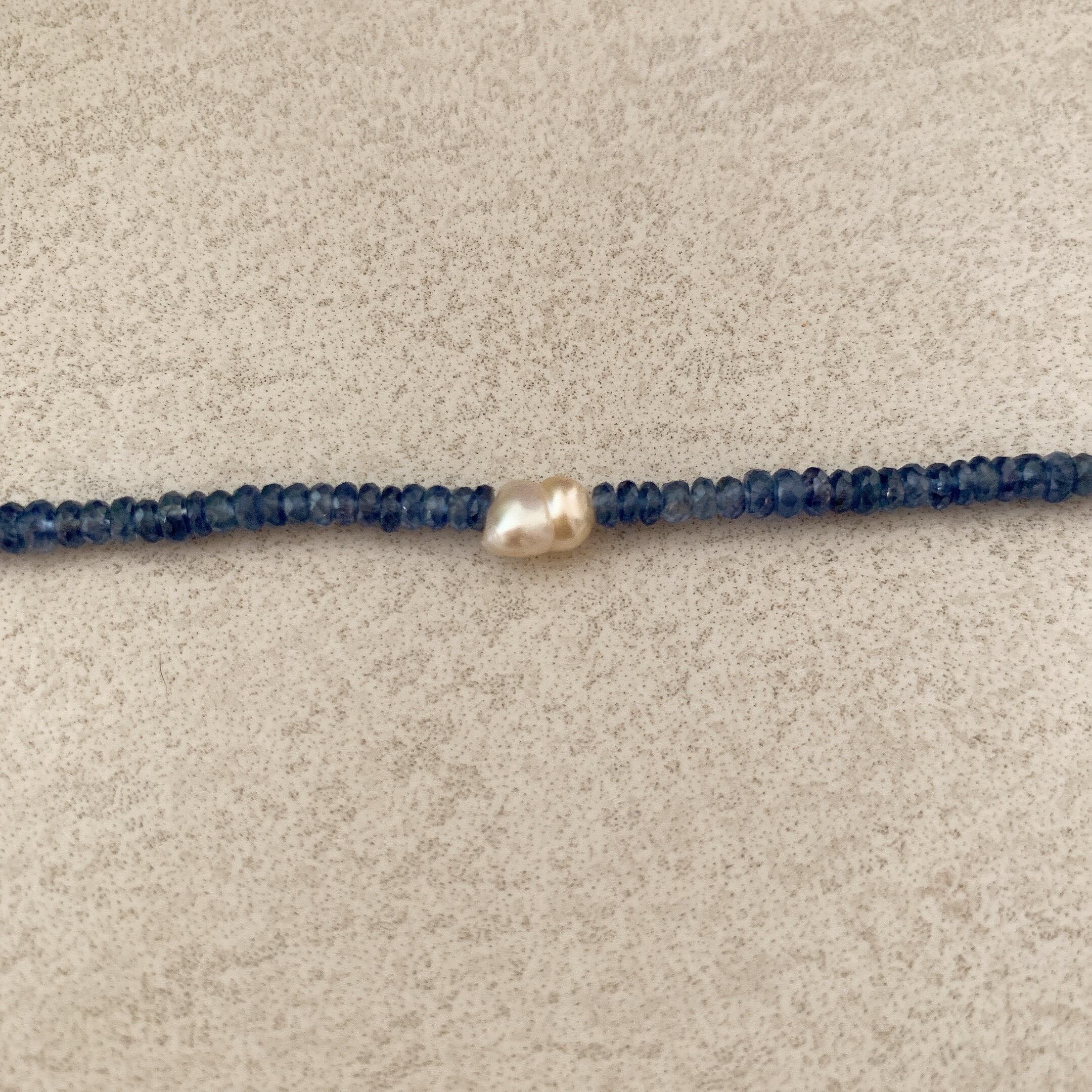 美しいケシパールとサファイアビーズのゴージャスブレスレット 【GFB-001】