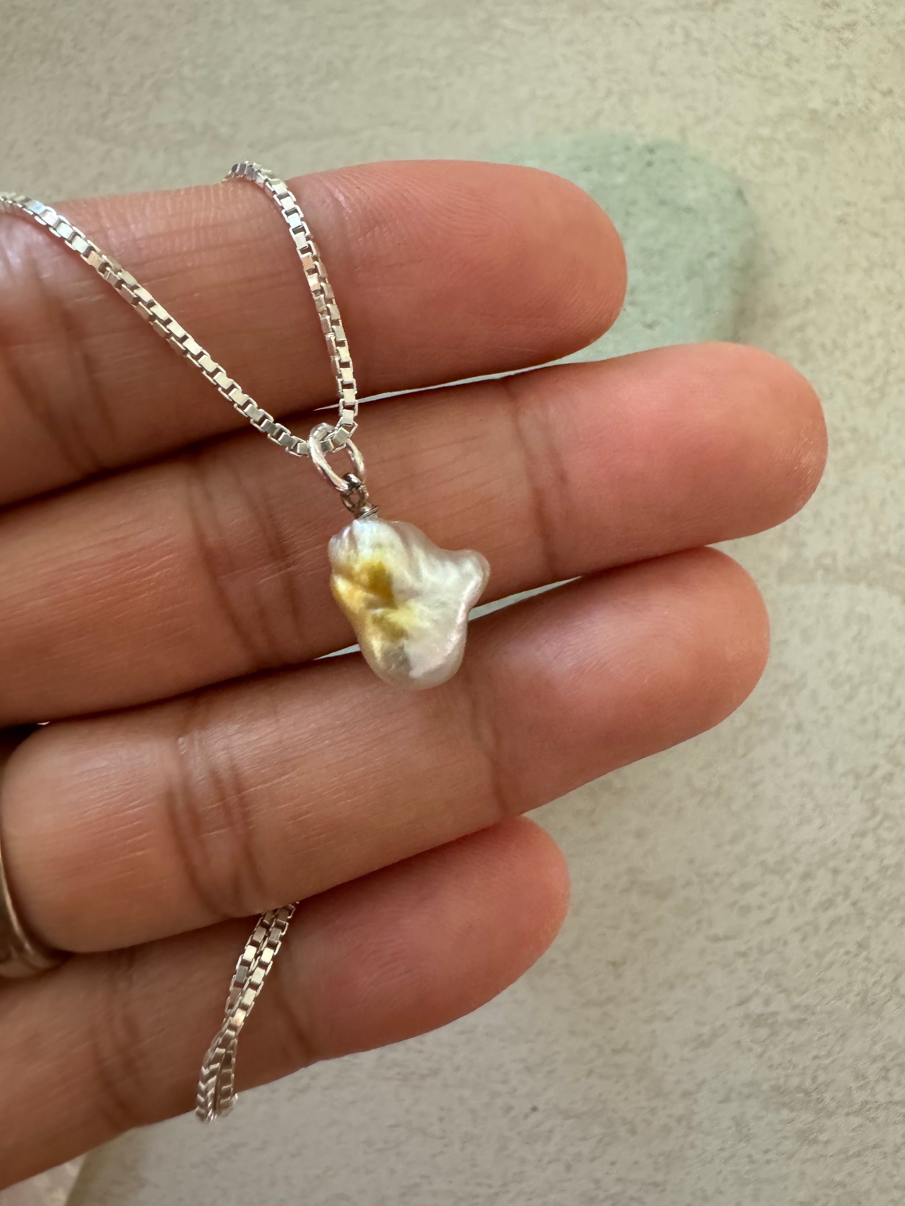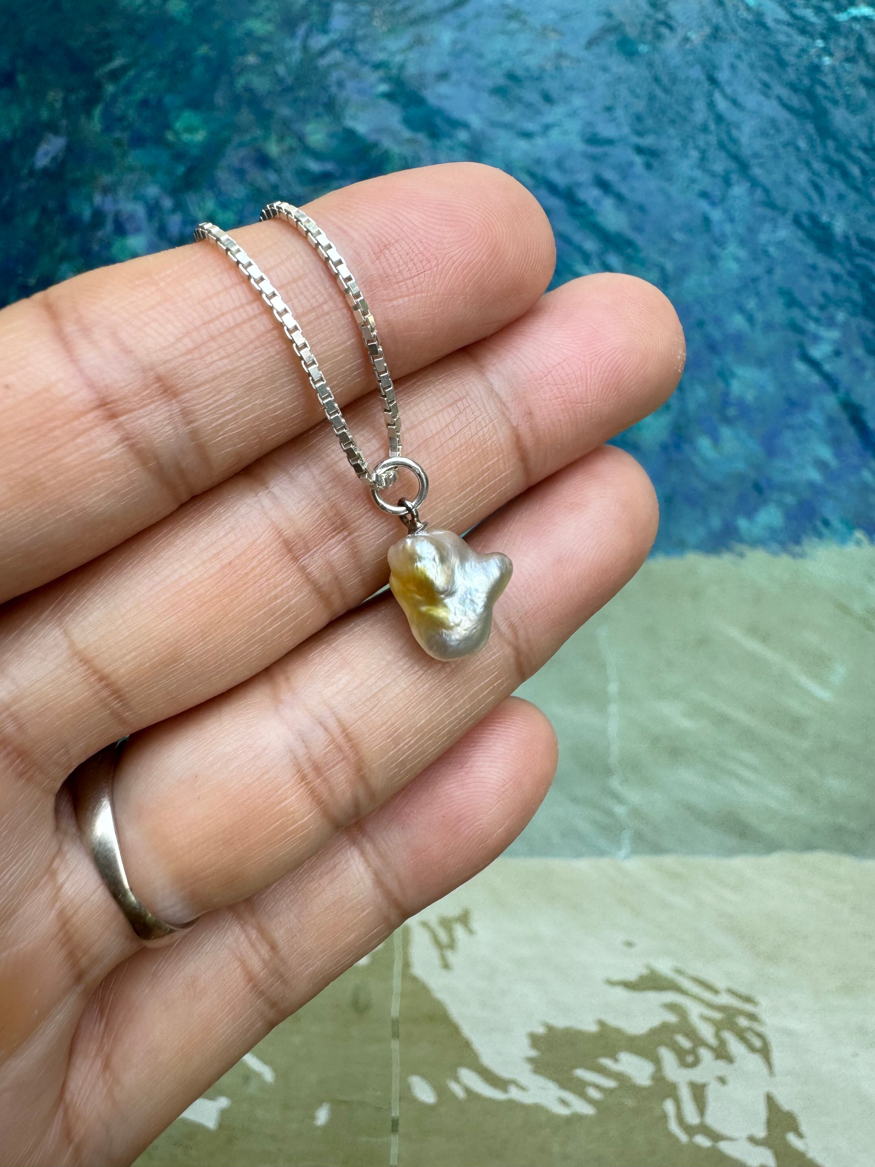 13mm美しいケシパール♡シルバーペンダントネックレス【PSC-001】