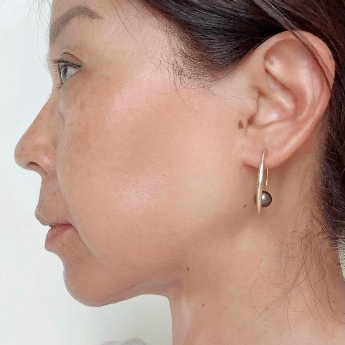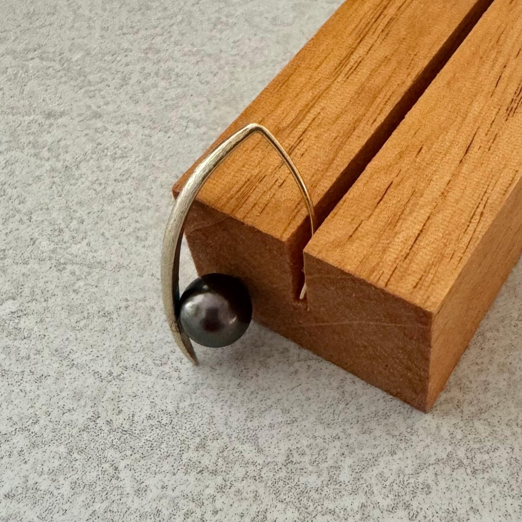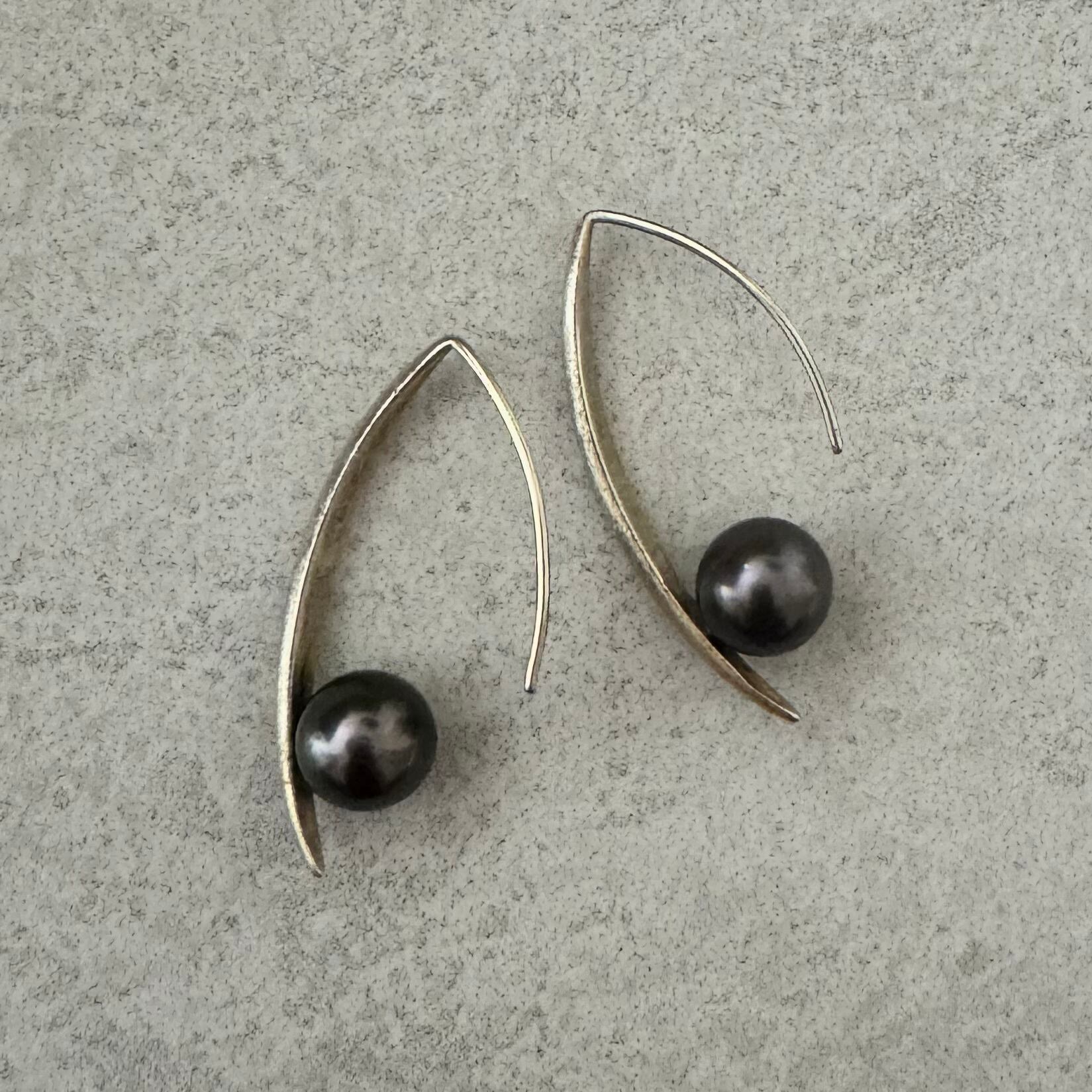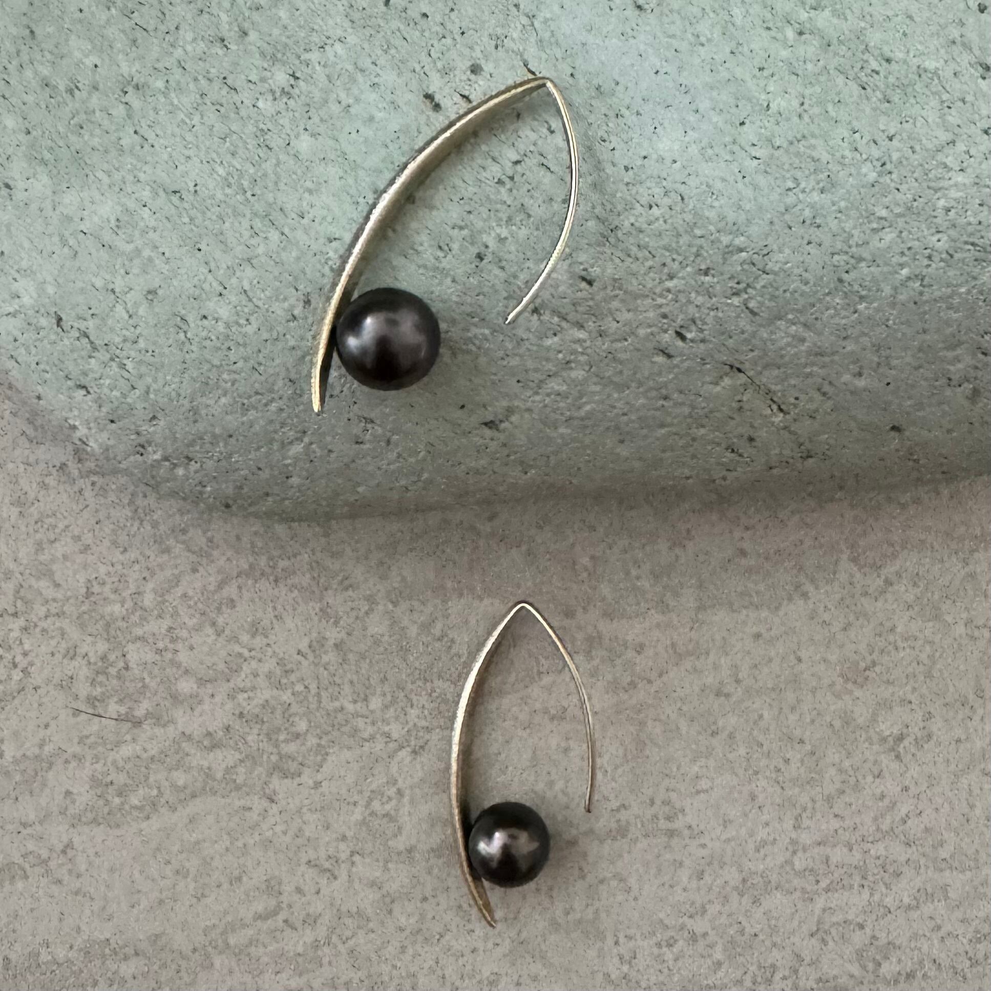 タヒチ黒蝶真珠のユニークデザインフックピアス✨